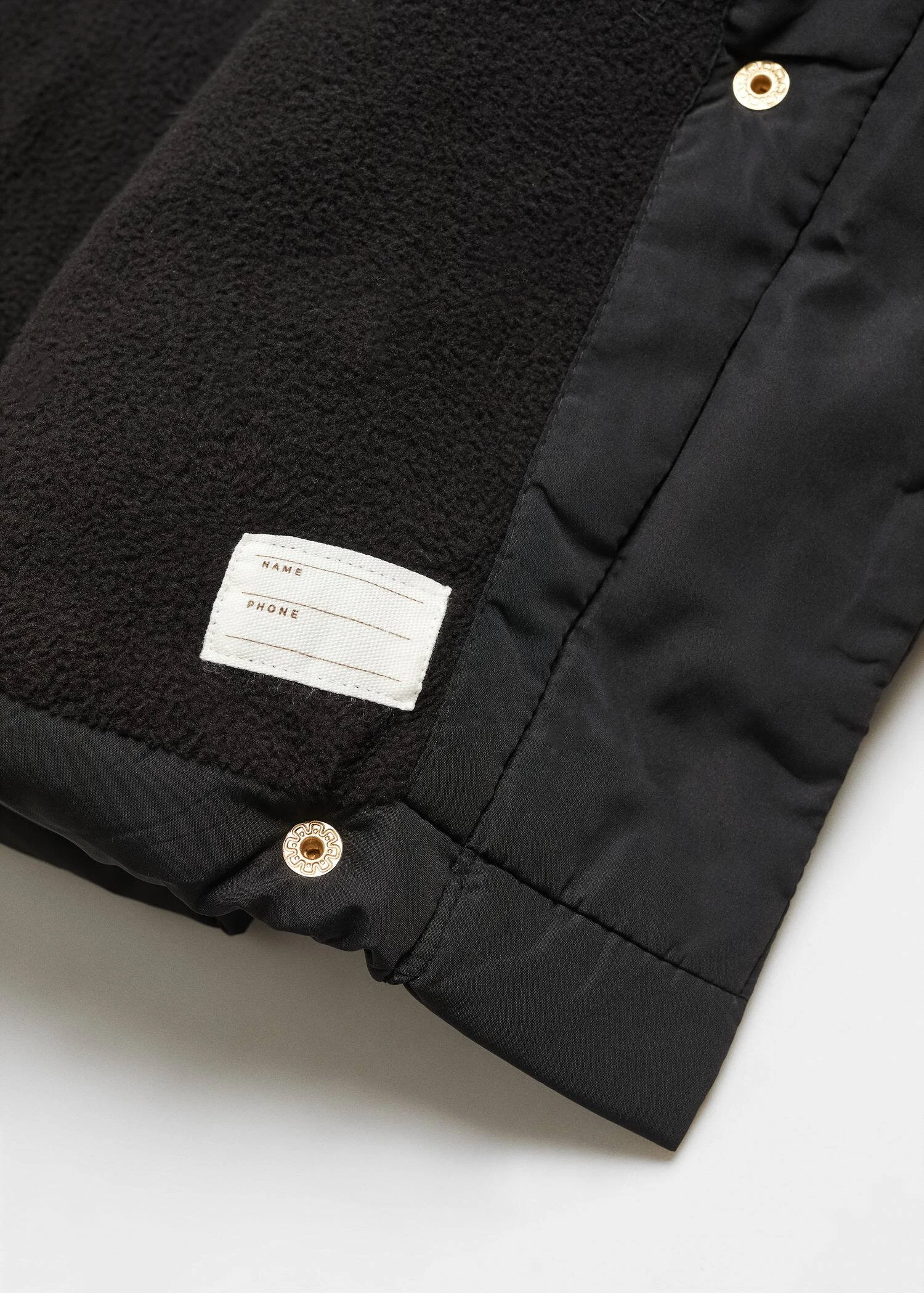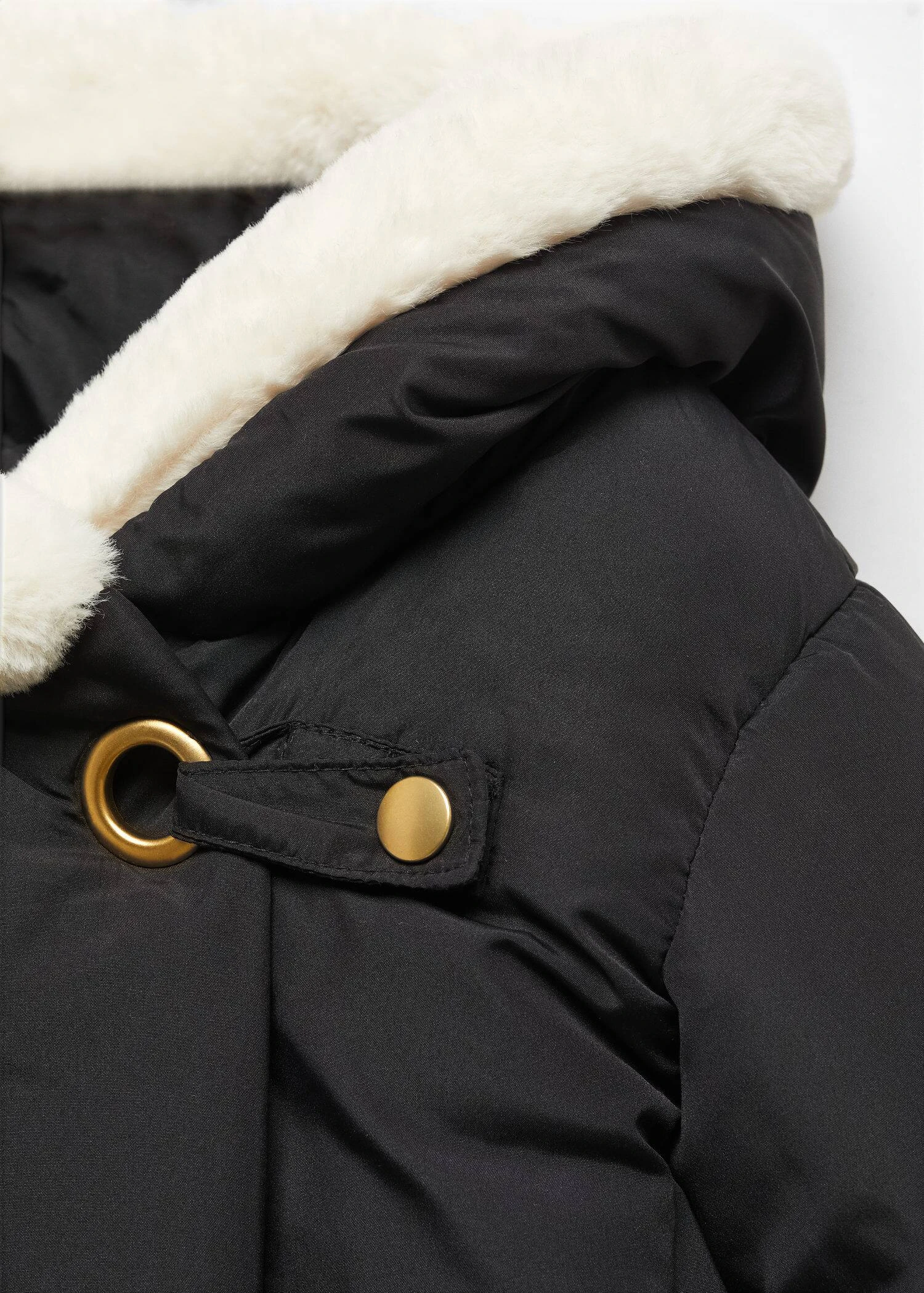 matelasse, droit, capuche avec detail de fausse fourrure, manches longues, deux poches a rabat, capuche, fermeture frontale, fermeture a boutonComposition: 100% polyester. Doublure: 100% polyester. Doublure manches: 100% polyester. Rembourrage: 100% polyester. Doublure capuche: 100% polyester. Fourrure capuche: 100% polyester