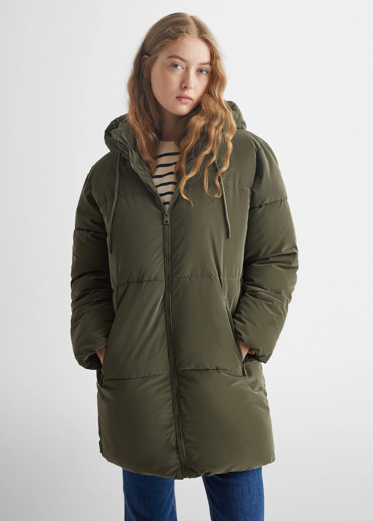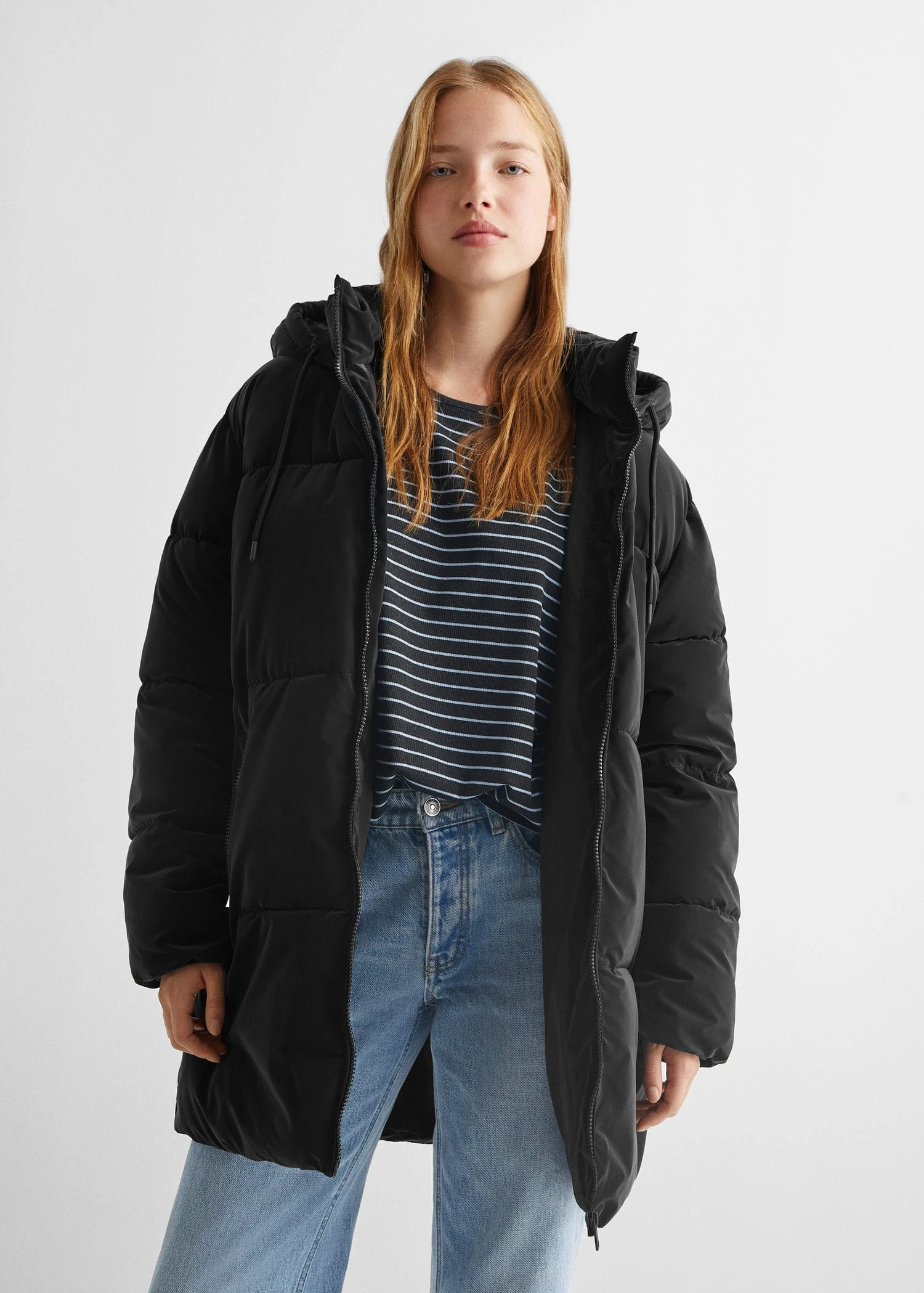 tissu polyester, tissu effet brillant, matelasse, coupe longue, a capuche, fermeture eclairComposition: 100% polyester. Doublure: 100% polyester. Rembourrage: 100% polyester. Revêtement: 100% polyurethane