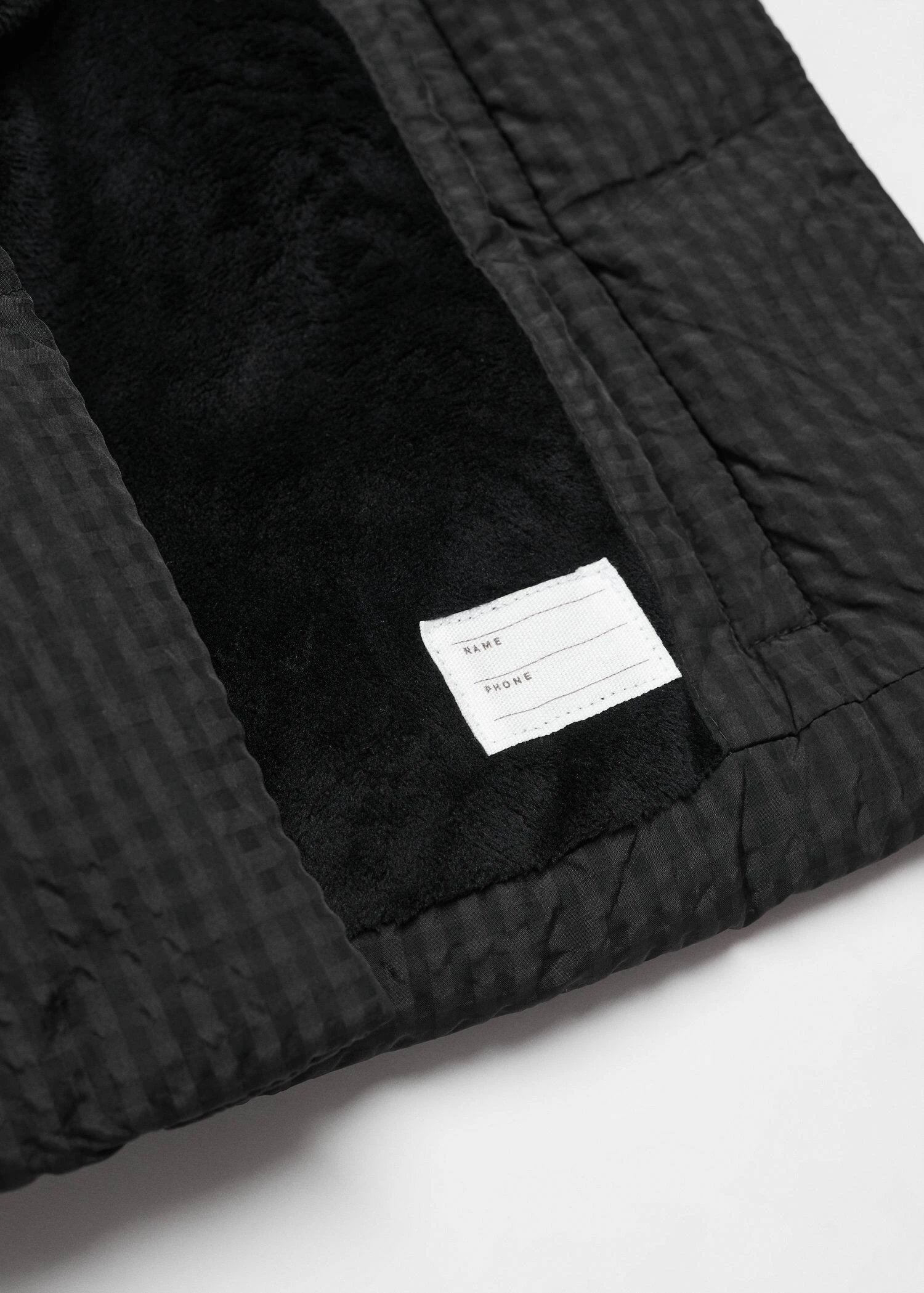 imprime carreaux, matelasse, coupe droite, manches longues, fermeture frontale, deux poches a rabat, fermeture eclair avec bouton, etiquette d’identite a l’interieur Composition: 53% polyester,47% polyamide. Doublure: 100% polyester. Doublure manches: 100% polyester. Rembourrage: 100% polyester