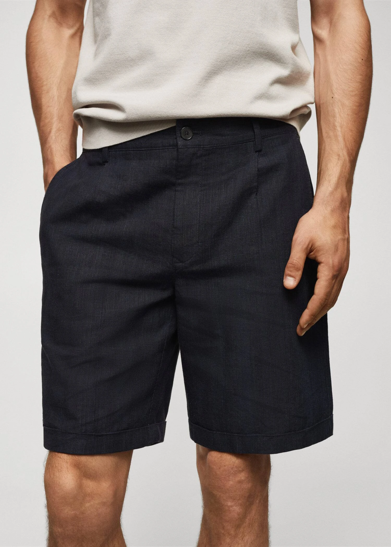 Bermuda Coton-lin Imprimé Prince-de-galles