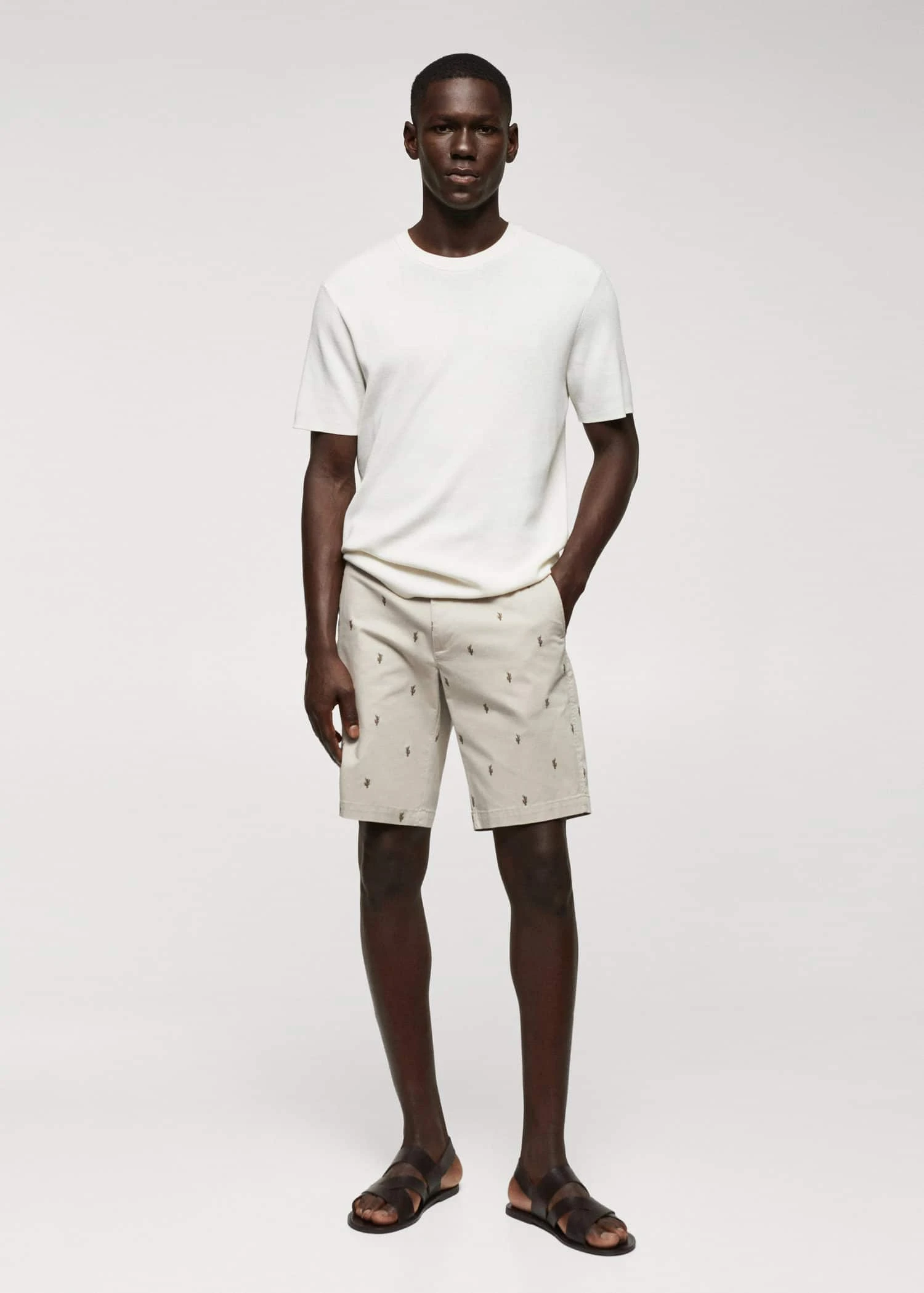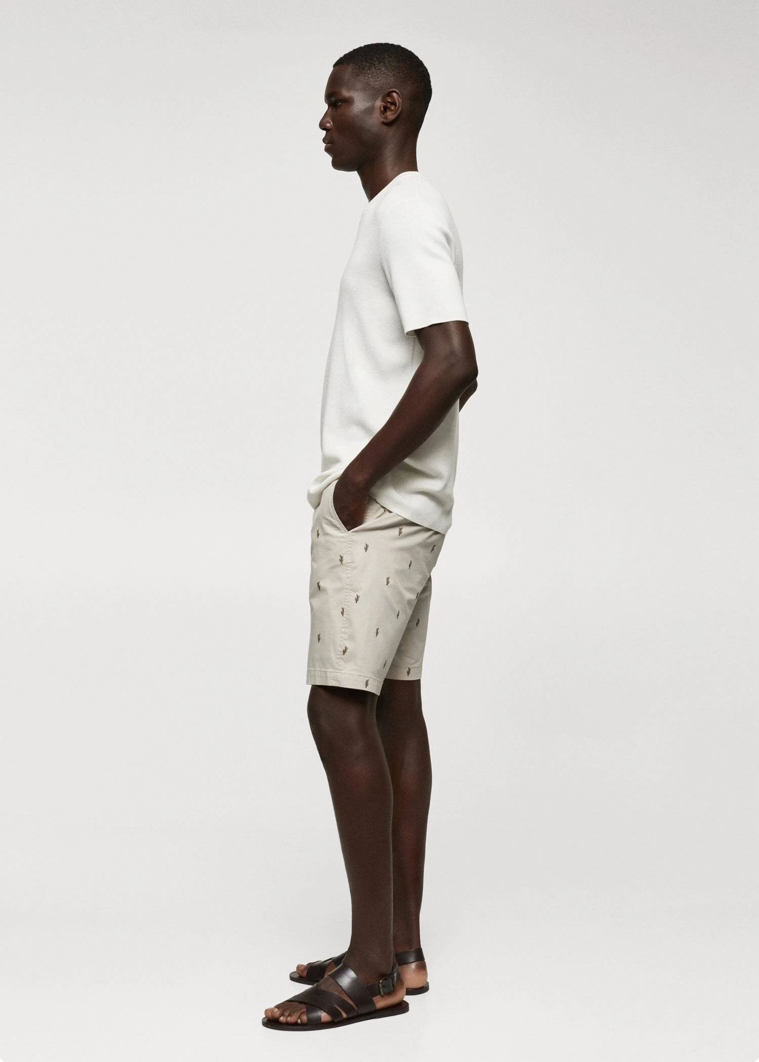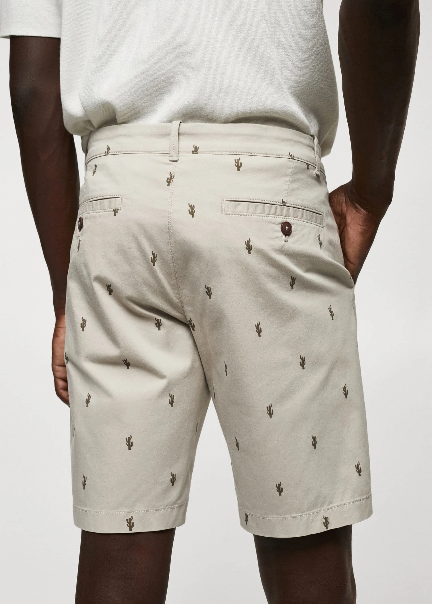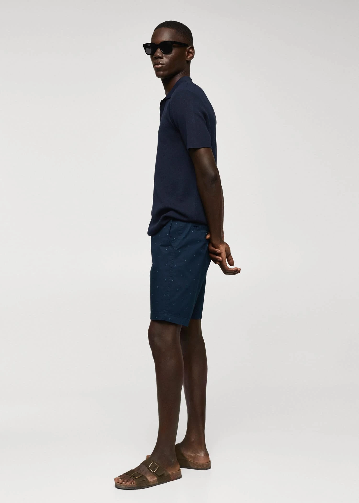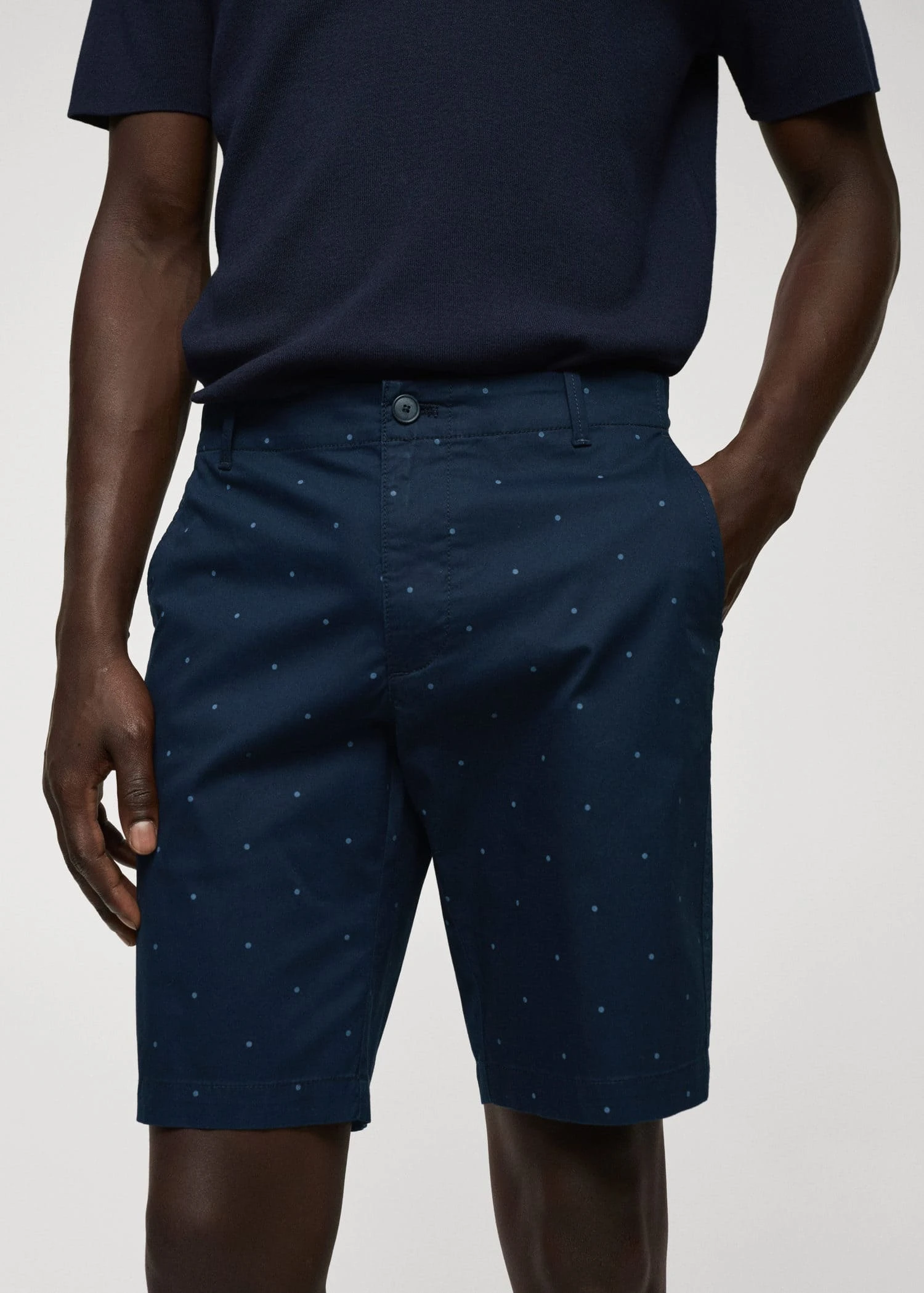slim-fit, tissu de coton legerement extensible, imprime mini, fermeture eclair avec bouton, passants de ceinture , deux poches avant, deux poches passepoilees boutonnees a l’arriere, le mannequin mesure 190 cm et porte une taille 42Composition: 98% coton,2% elasthanne. Doublure poches: 65% polyester,35% coton