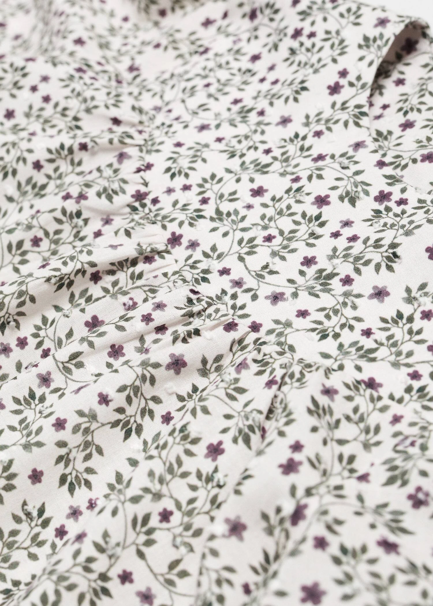 100 % coton, coupe droite, imprime fleurs, col rond, manches longues, fermeture a boutonComposition: 100% coton