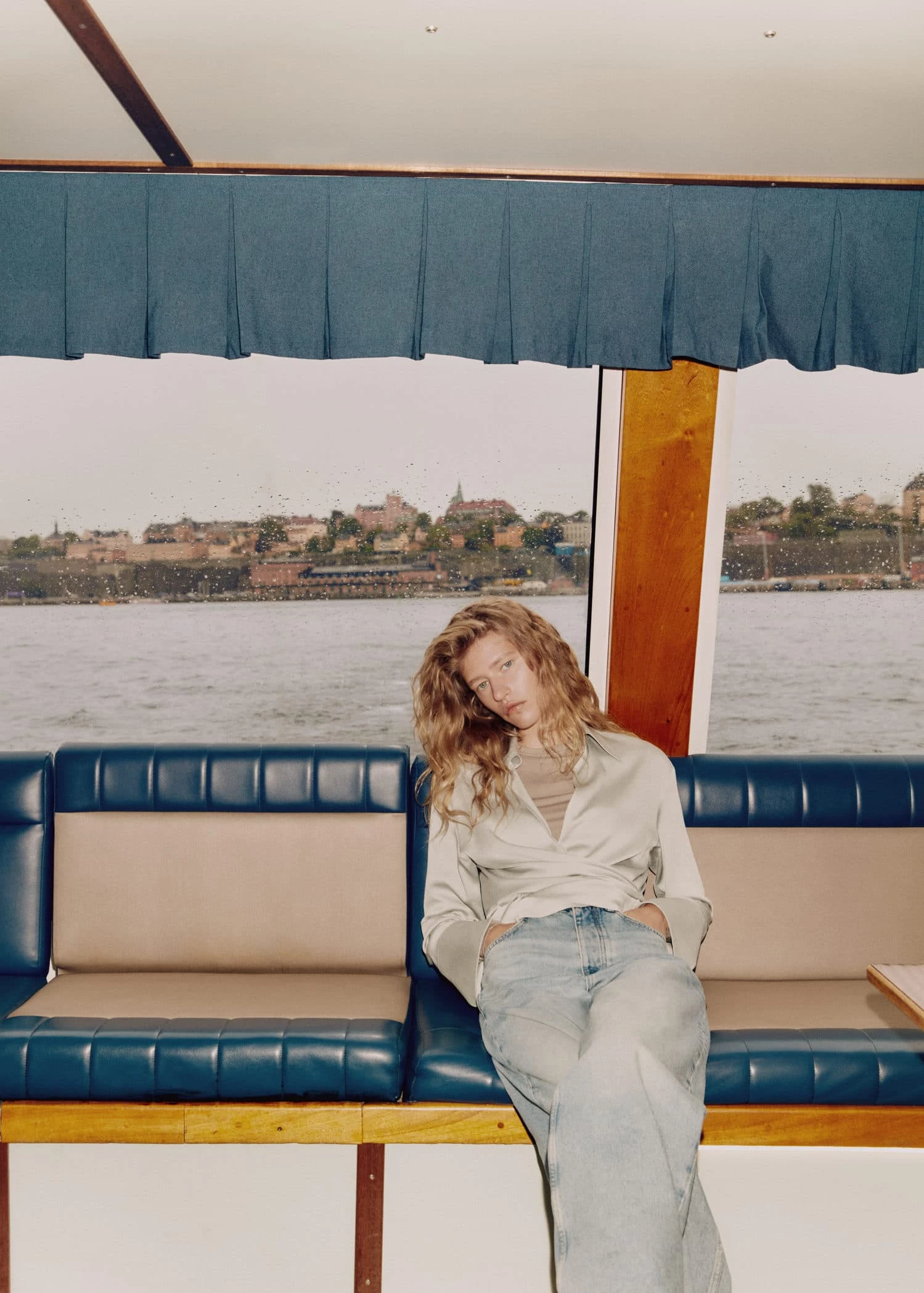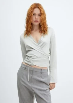 tissu fluide, croise, ajuste, effet satine, col chemise en v, manches longues avec poignets boutonnes, ruban a la taille avec fermeture a nœudComposition: 100% polyester