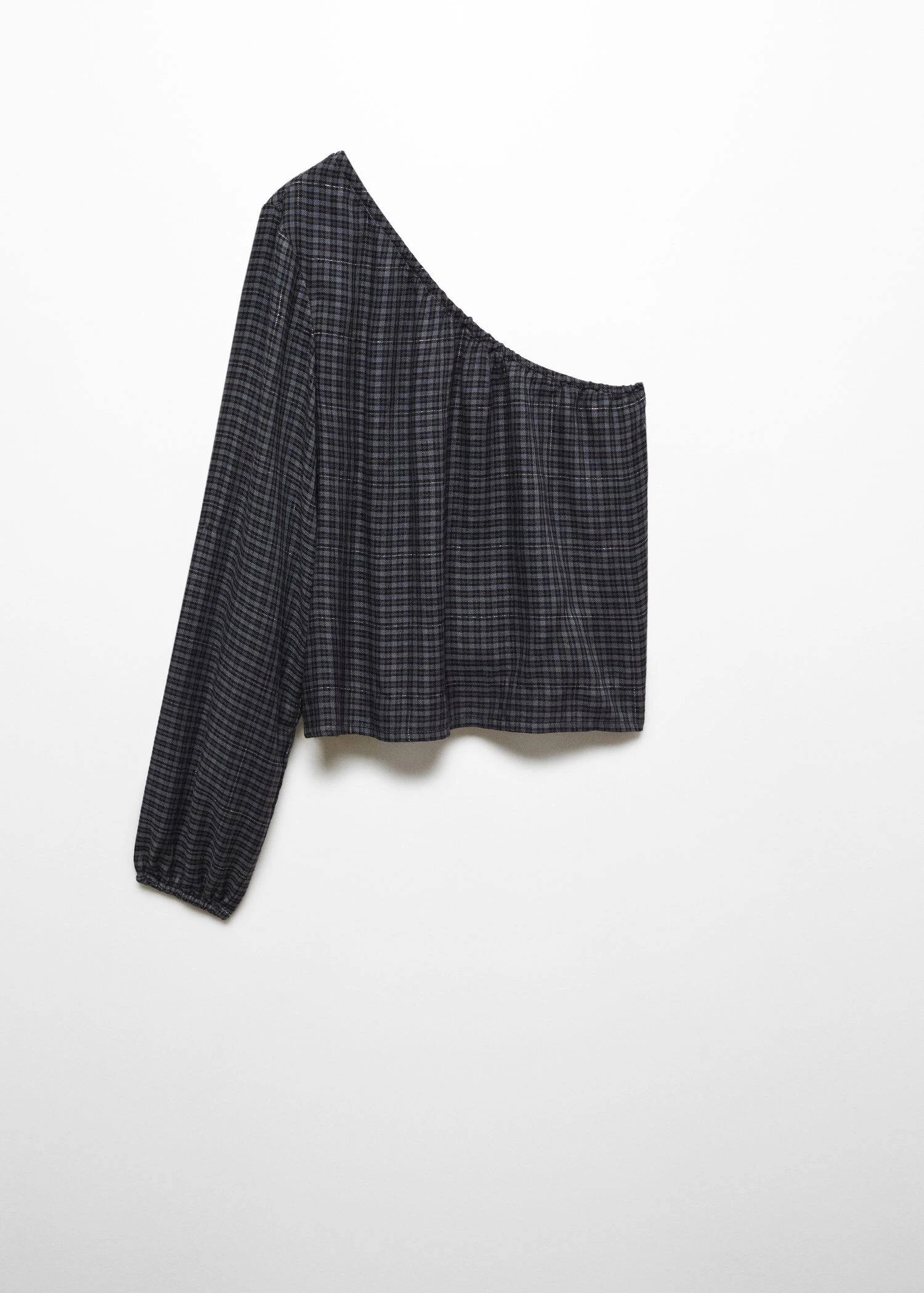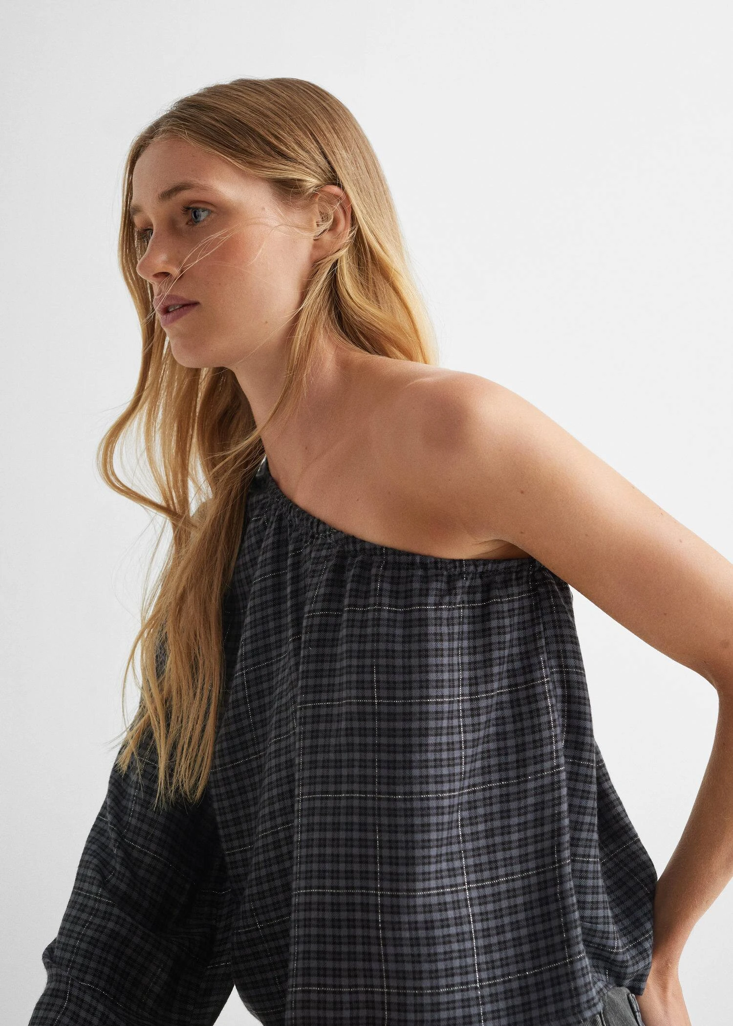 imprime carreaux, coupe asymetrique, col asymetrique, style crop, une manche, sans fermetureComposition: 99% viscose,1% metal