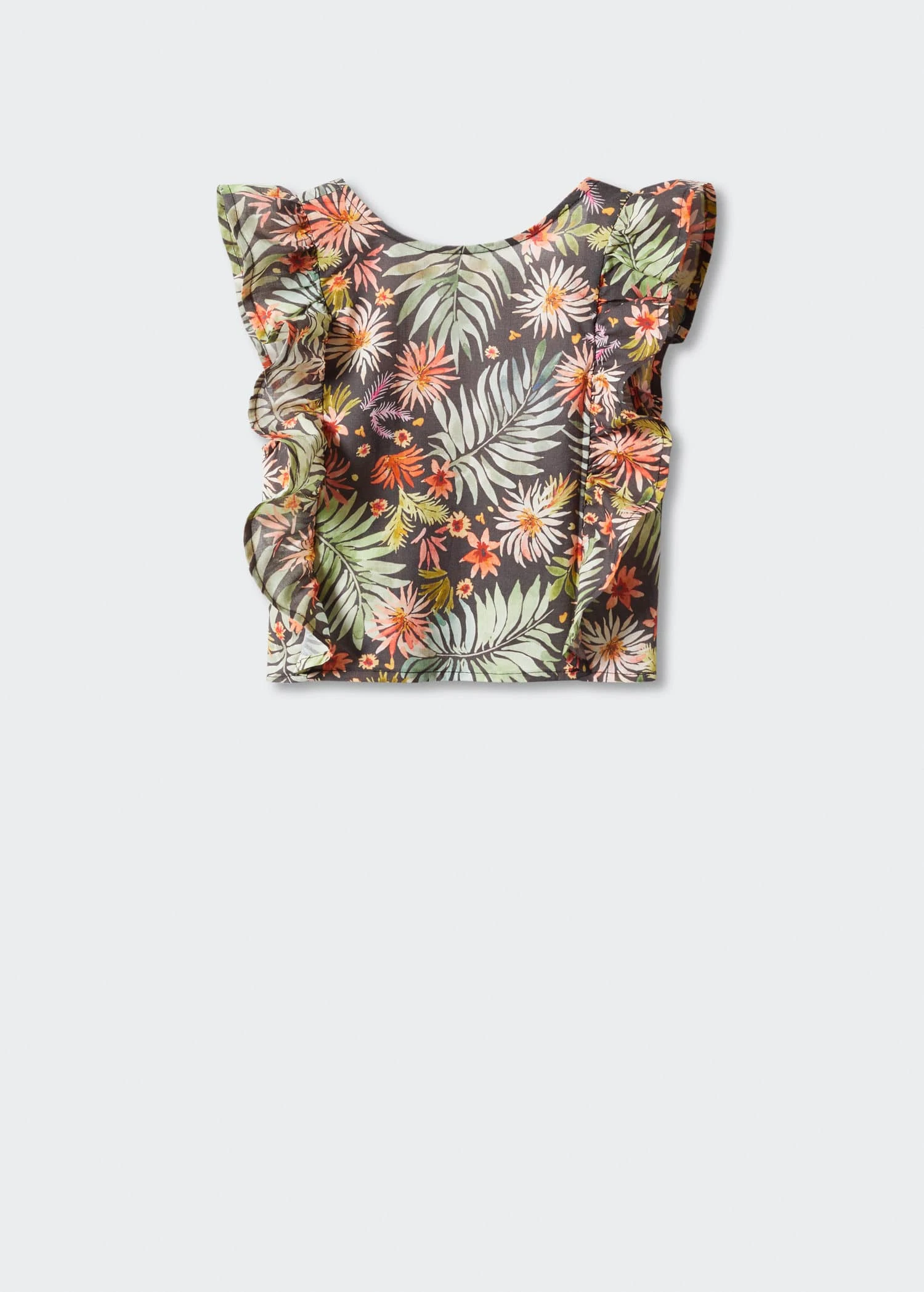 imprime feuilles, imprime fleurs, style crop, detail volante, detail fronce, ouverture au dos, col rond, sans fermeture, sans manchesComposition: 100% coton