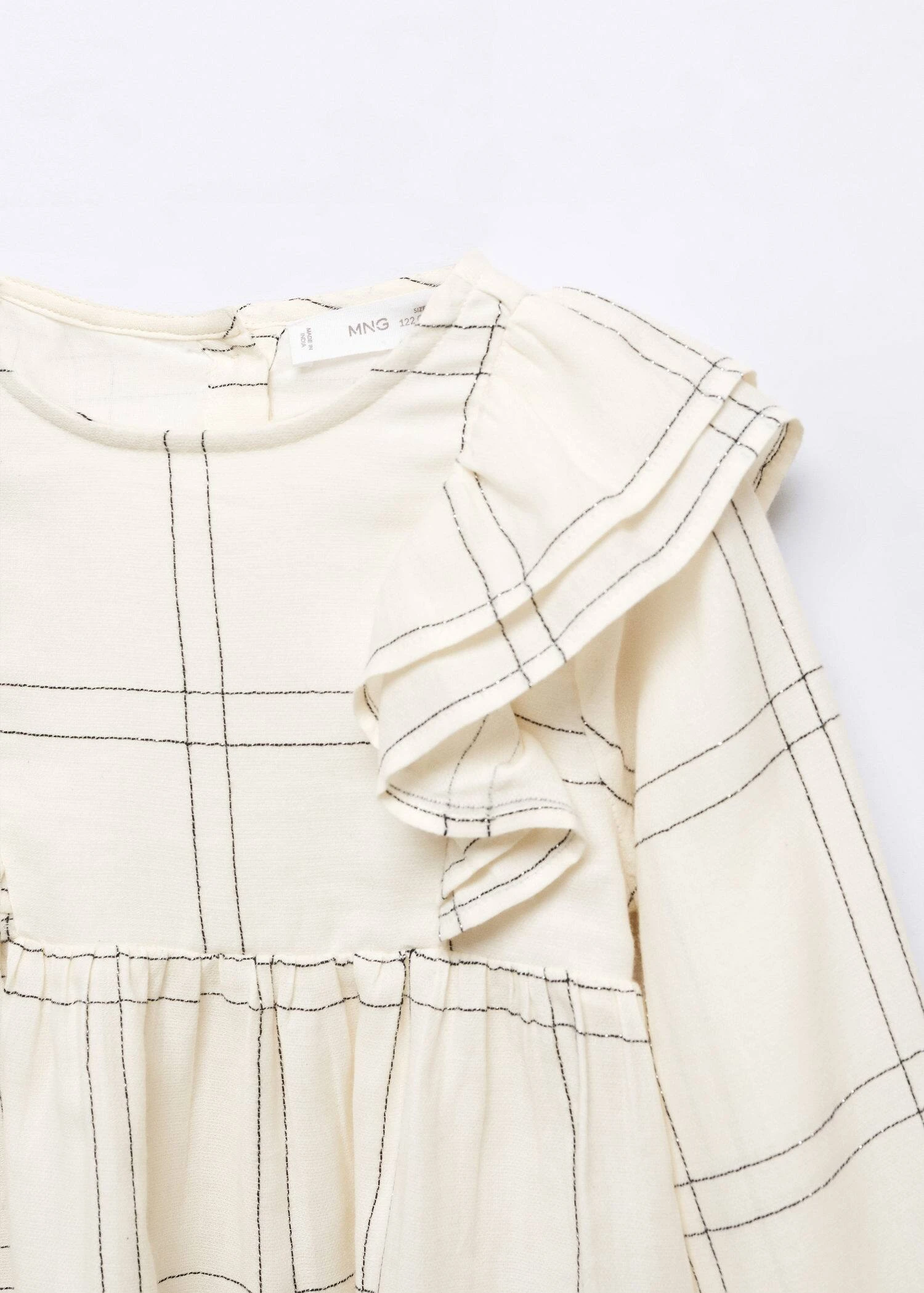 tissu en coton, imprime rayures, detail volante, col rond, manches longues, fermeture boutonnee a l’arriereComposition: 99% coton,1% metal. Doublure: 100% coton