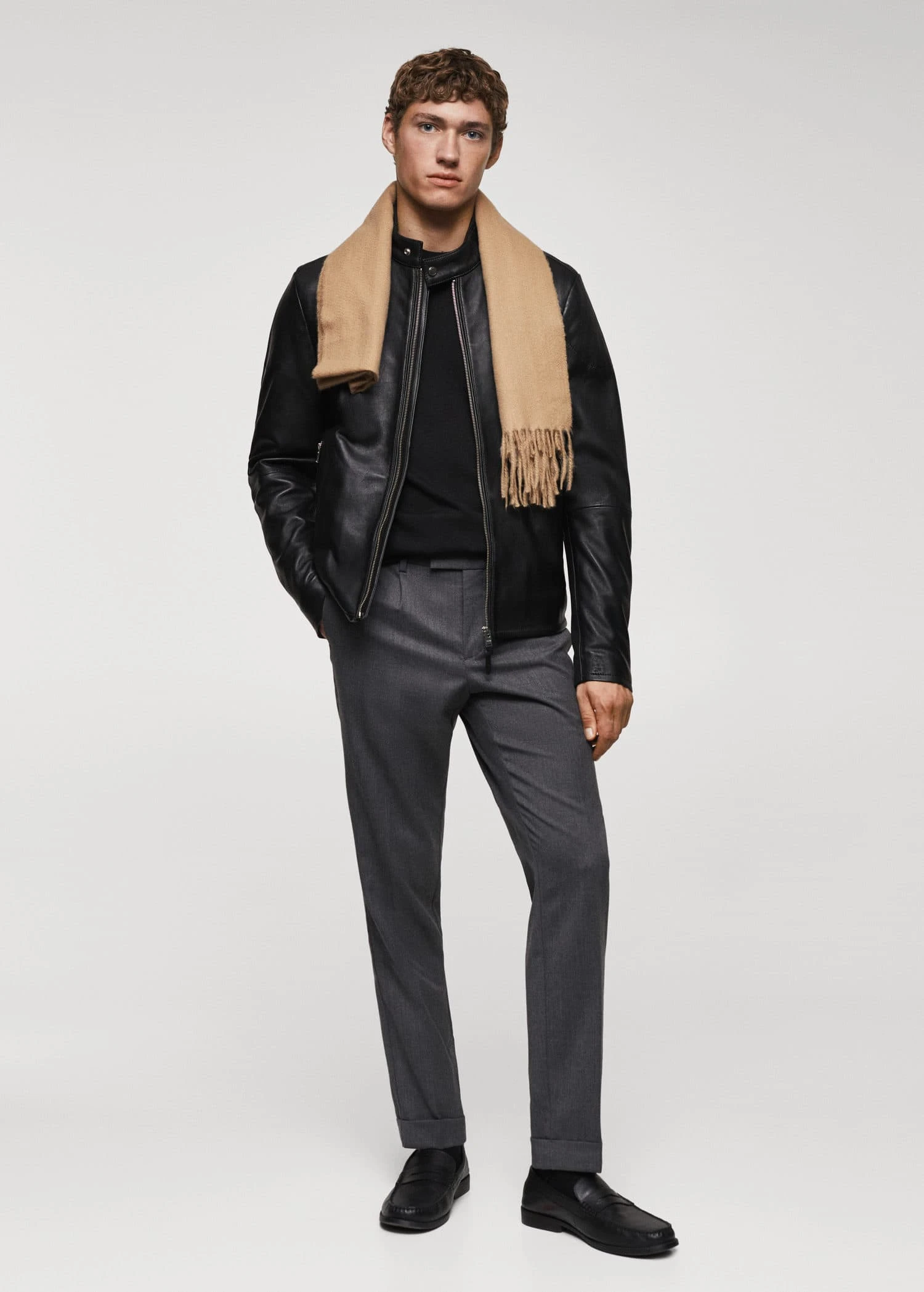 100 % cuir ovin, slim-fit, style biker, coupe courte, col cheminee a bouton, fermeture eclair a l’avant, manches longues, deux poches zippees sur les cotes, doublure, poche interieure, le mannequin mesure 185 cm et porte une taille m, le cuir est un materiau delicat qui developpe naturellement une patine dont il faut prendre soin. pour conserver vos produits en cuir en bon etat, nous vous conseillons de les tenir a l’ecart de la poussiere et de les nettoyer si necessaire avec un chiffon doux en effectuant des mouvements circulaires.Composition: 100% cuir ovin. Doublure: 55% polyester,45% viscose. Doublure manches: 55% polyester,45% viscose. Doublure poches: 100% coton