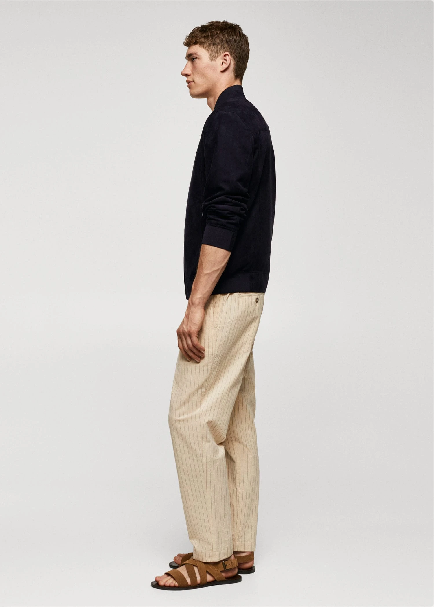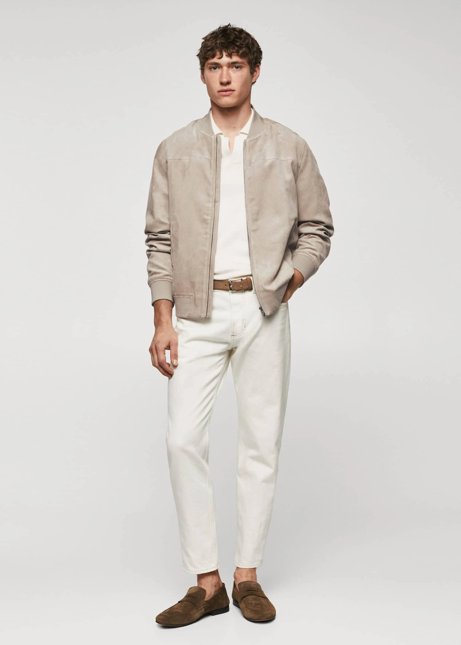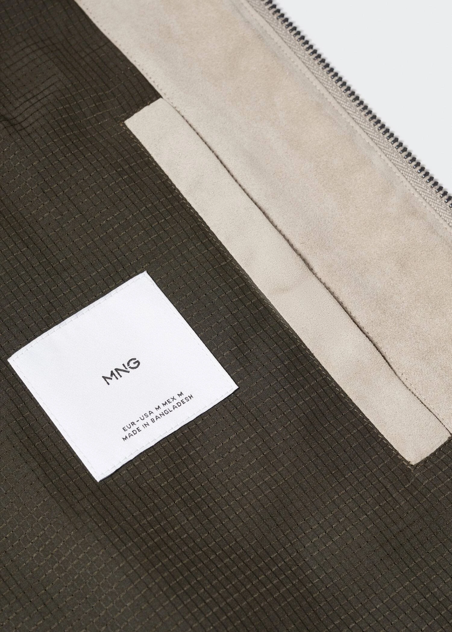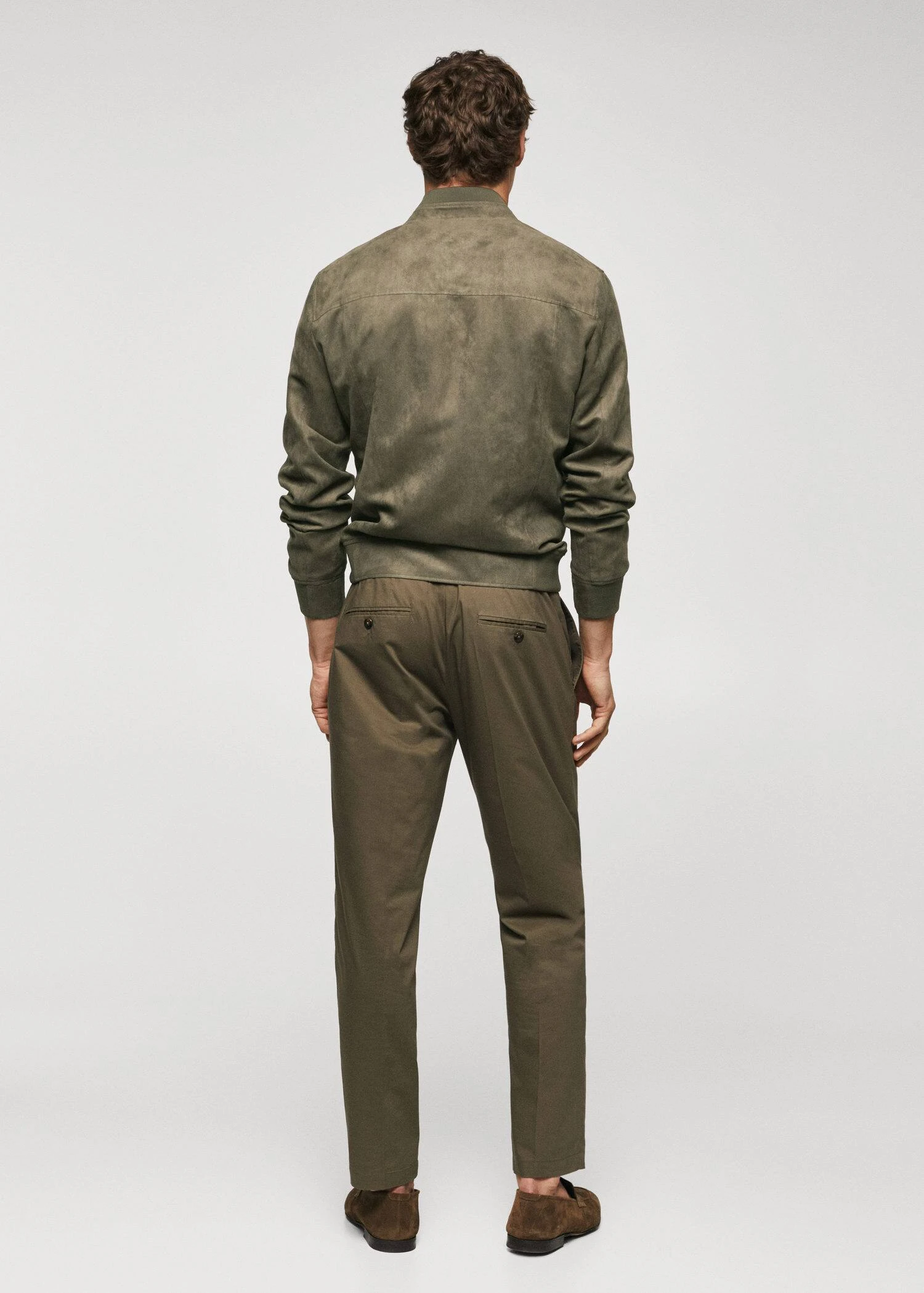 style bomber, imitation daim, fermeture eclair a l’avant, manches longues avec poignets elastiques, deux poches a rabat sur les cotes, bas elastique, poche interieure zippee, doublure, le mannequin mesure 183 cm et porte une taille mComposition: 60% polyester,40% polyester recyclé. Doublure: 100% polyester. Cannelé: 98% polyester,2% elasthanne