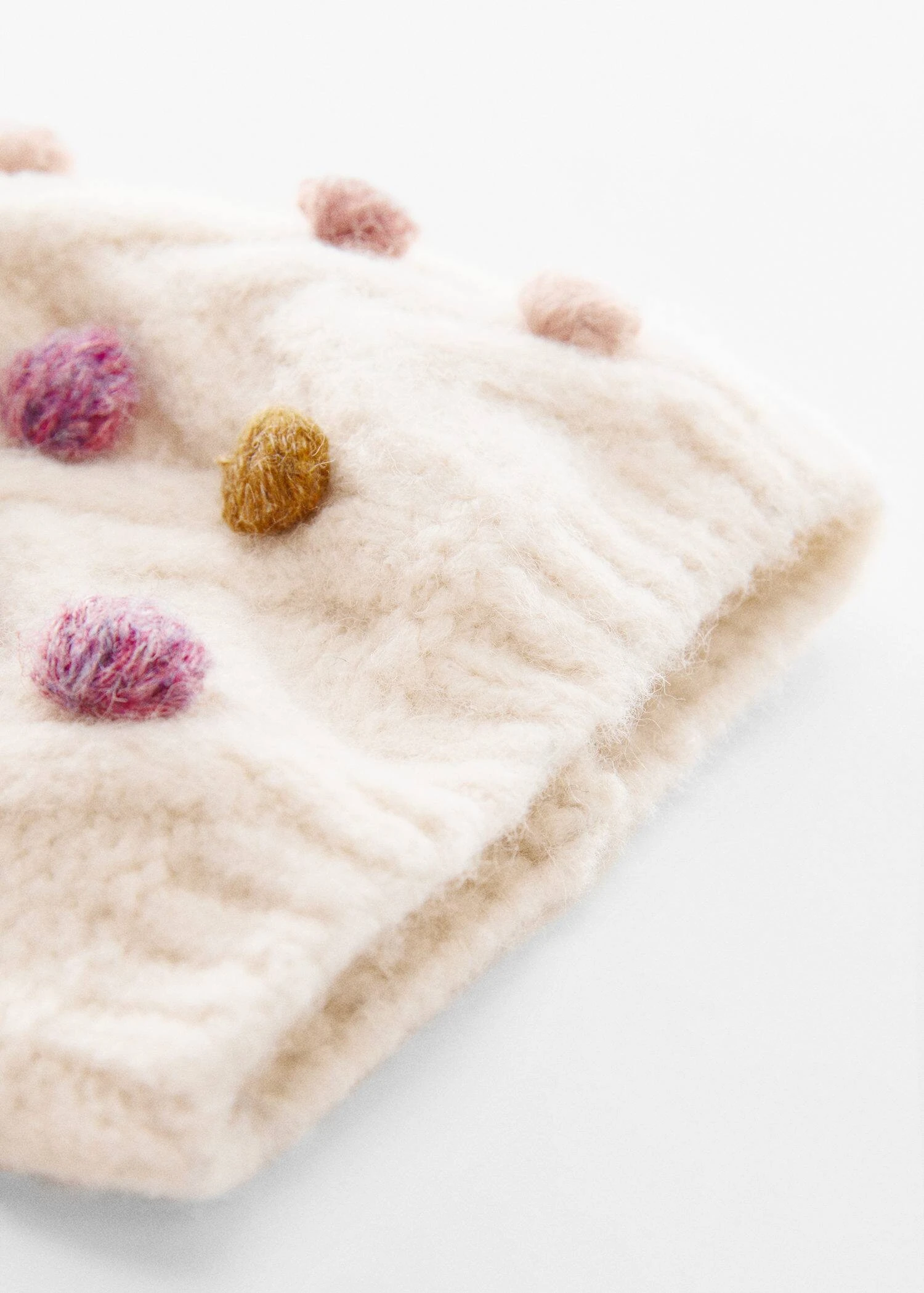 tissu en maille, pomponComposition: 65% polyester,13% acrylique,13% polyamide,6% laine,3% elasthanne
