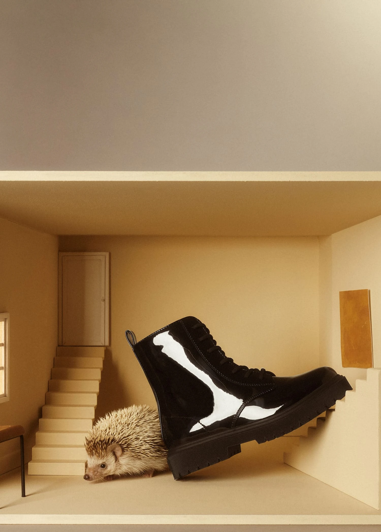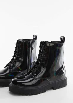 effet verni, effet holographique , semelle track, bout rond, lacetsCarre: 94% polyurethane,6% polyester. Doublure: 79% polyester,21% polyurethane. Semelle: 95% coton,5% polyester. Semelle: 100% caoutchouc thermoplastique. Fixation semelle: 100% collée