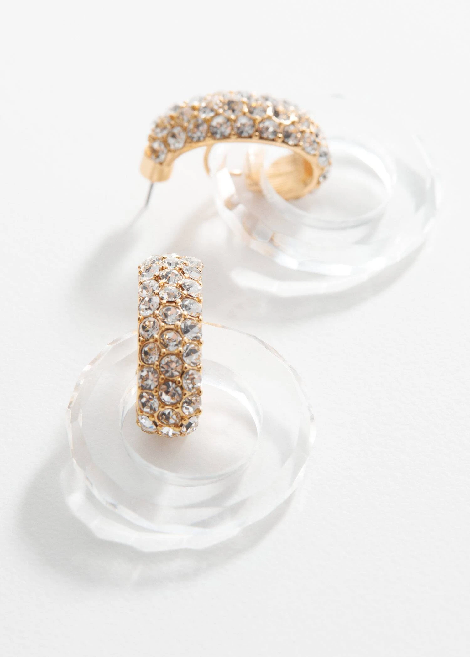 perle de verre, forme creole, design entrelace, detail en strass, fermoir metallique a pressionComposition: 60% verre,25% zinc,10% laiton,5% fer