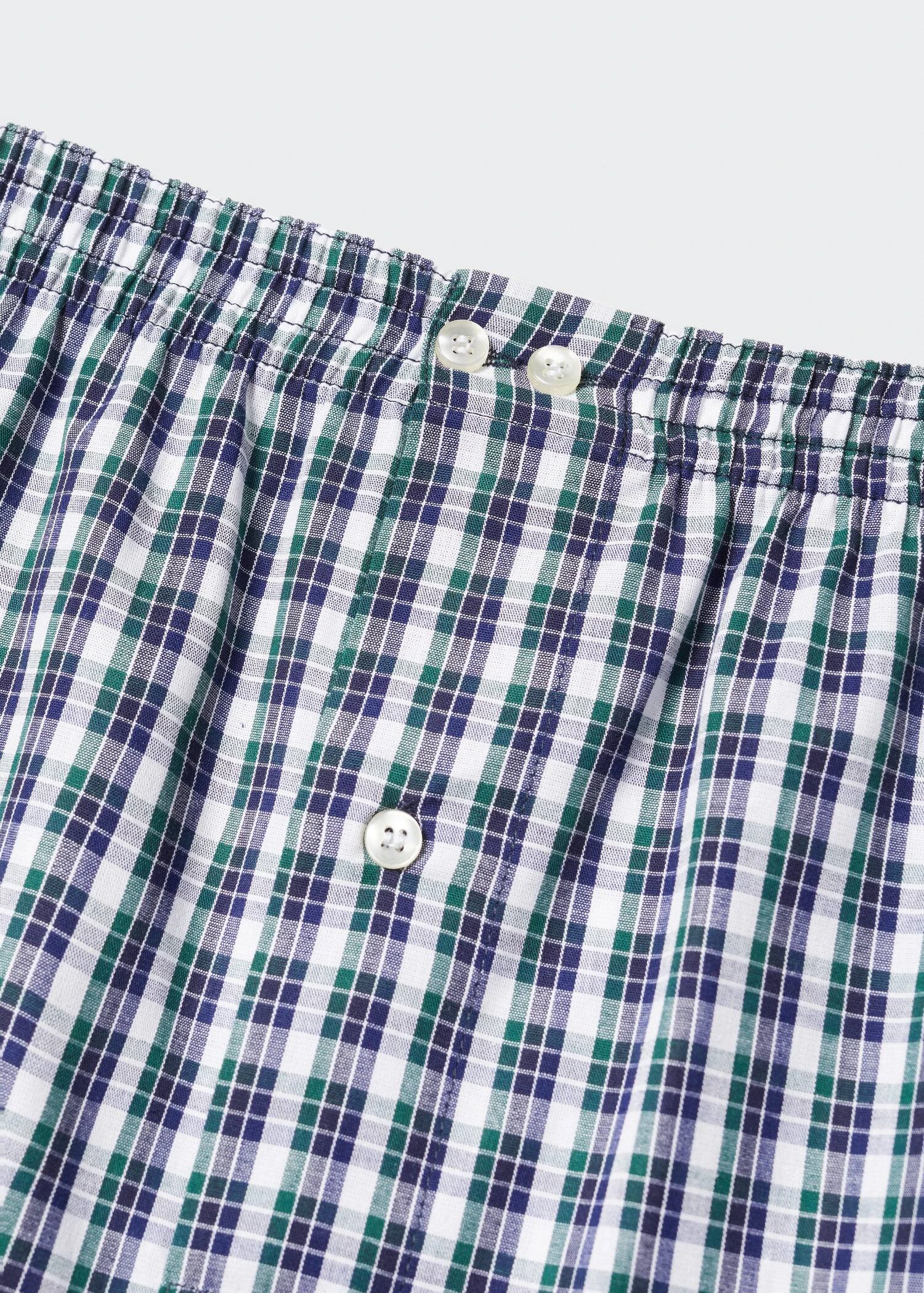 tissu 100 % coton, imprime mini-carreaux vichy, type boxer, taille elastiquee, fermeture a deux boutons, avec ce vetement en coton, vous soutenez notre investissement dans la mission de better cotton. ce tissu est un equilibre de masse qui remplace ou melange du coton better cotton avec du coton conventionnel, aussi il est possible qu’il ne contienne pas de better cotton. les agriculteurs partenaires beneficient d’un soutien et d’une formation continus.Composition: 100% coton