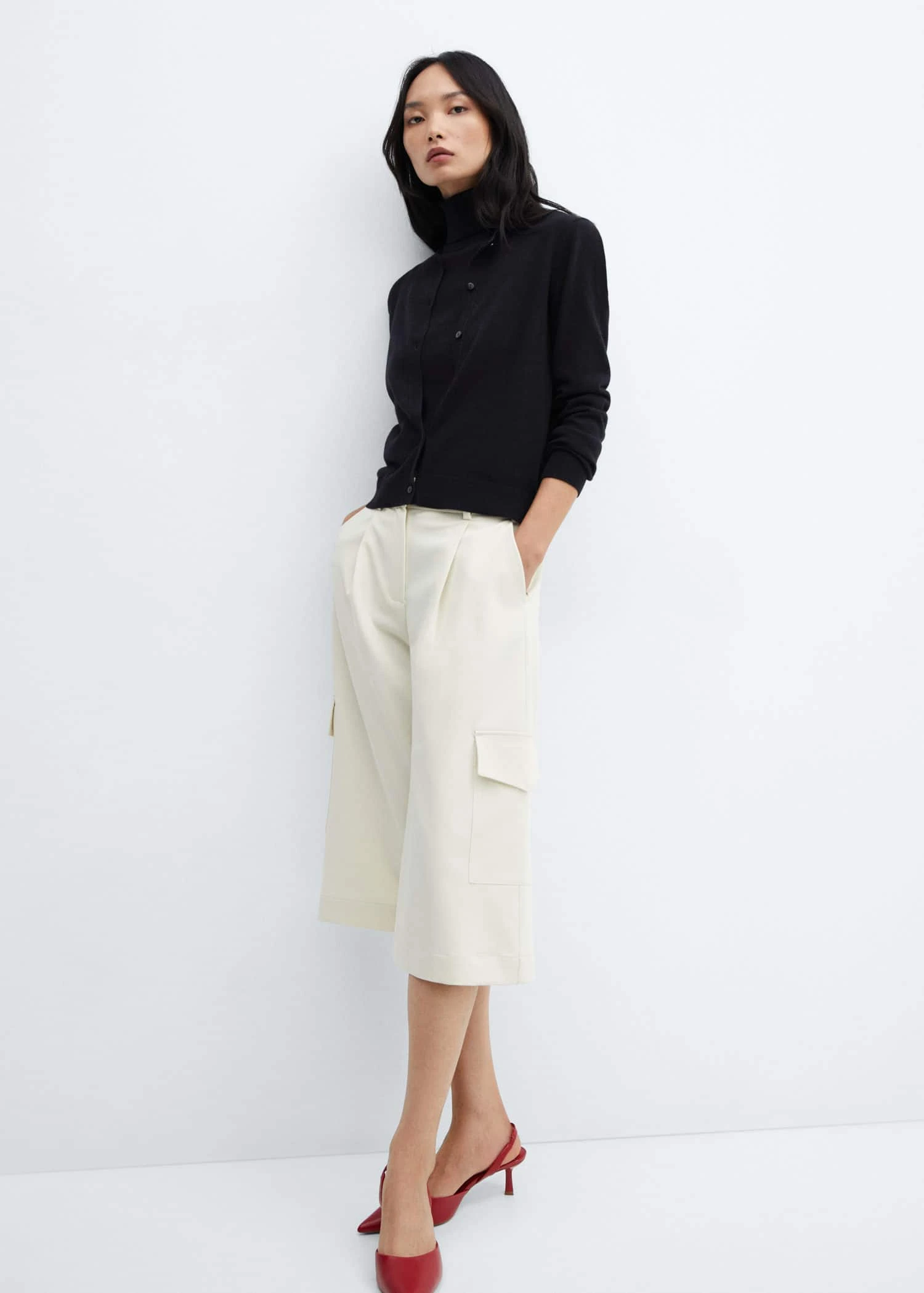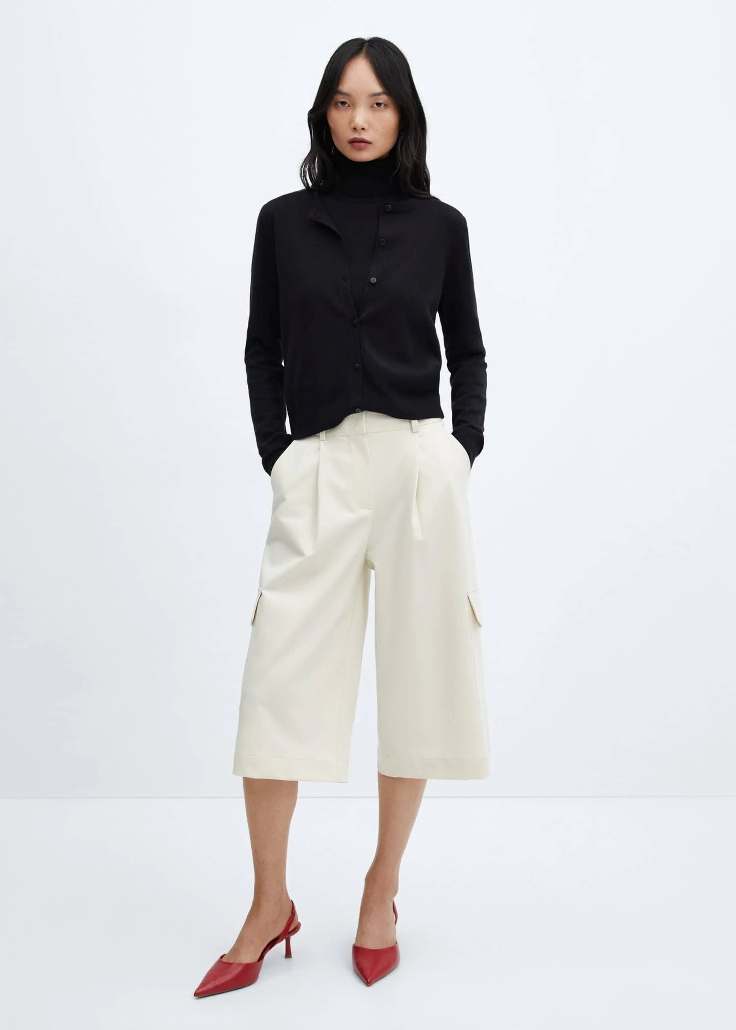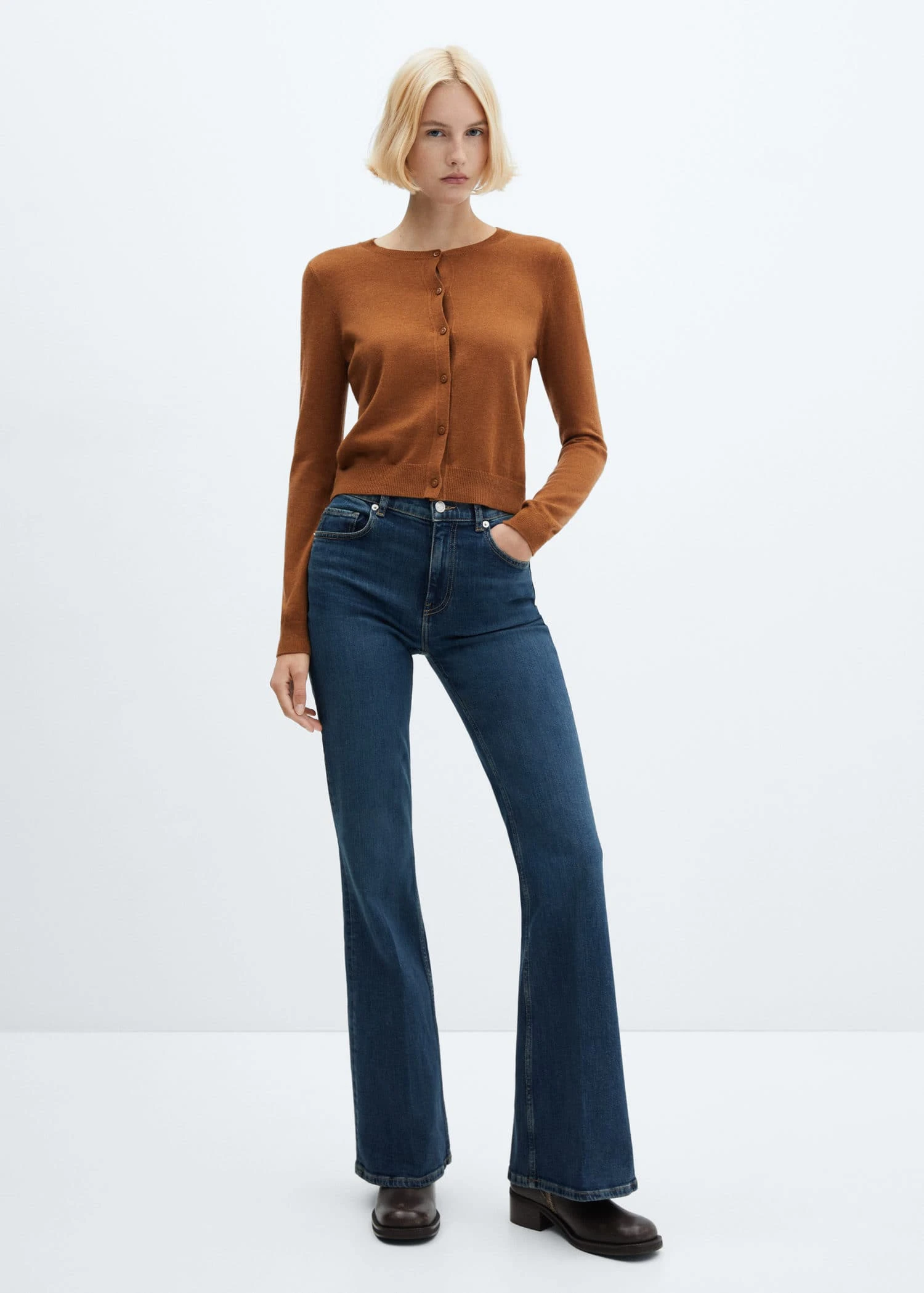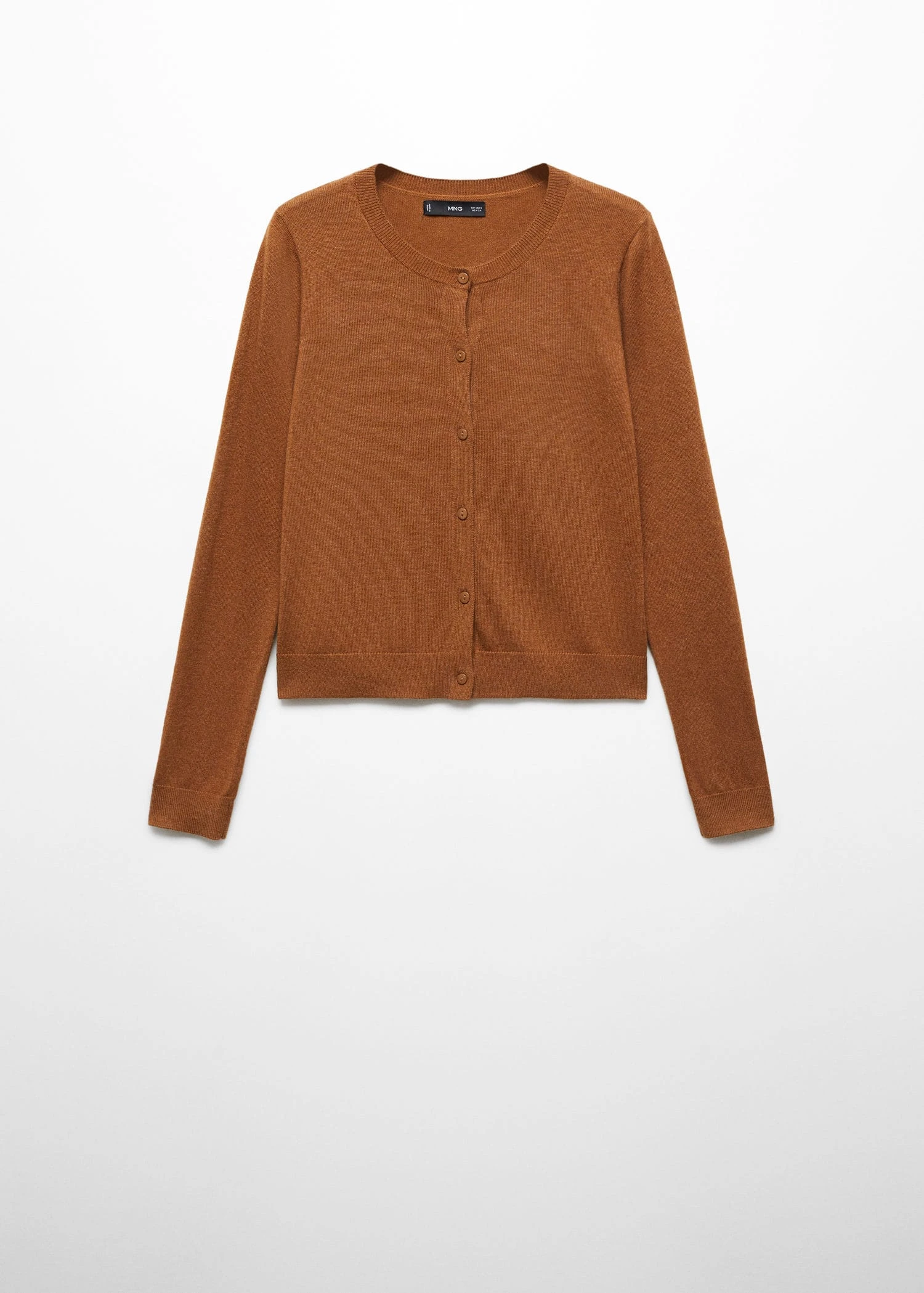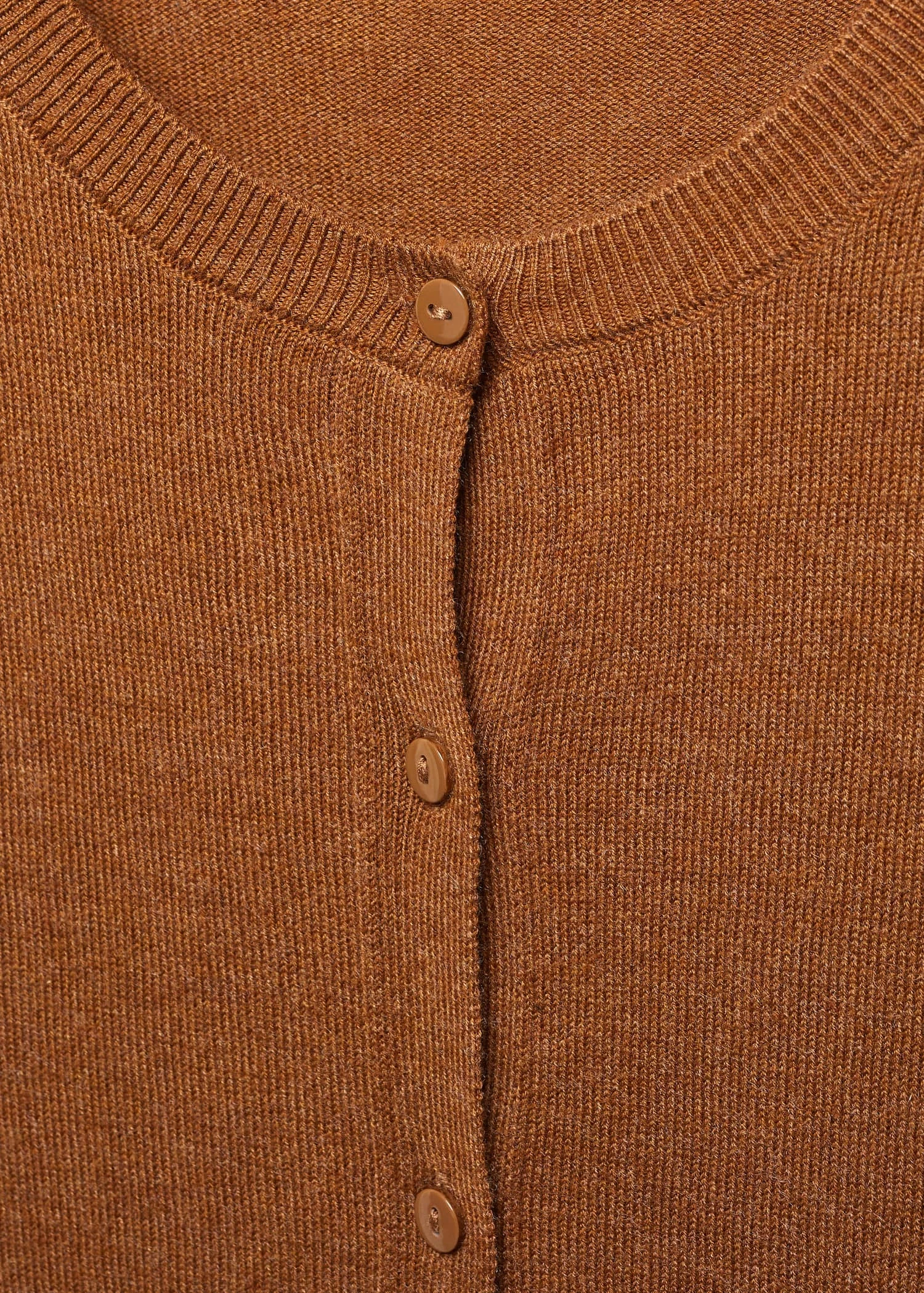 tissu en coton organique recycle melange, tissu de laine melange, tissu en maille fine, coupe courte, droit, col rond, manches longues, fermeture a boutons sur le devant, bords coteles au niveau du col, des manches et sur le bas, total lookComposition: 47% coton,25% polyamide,22% viscose,6% laine