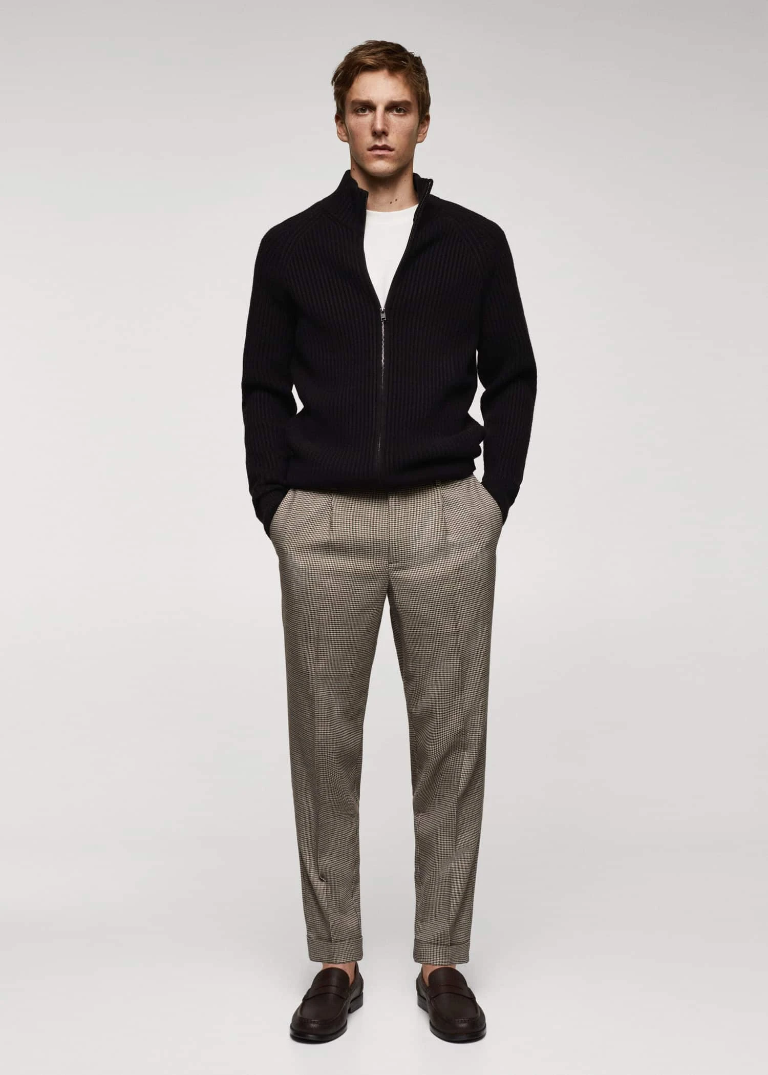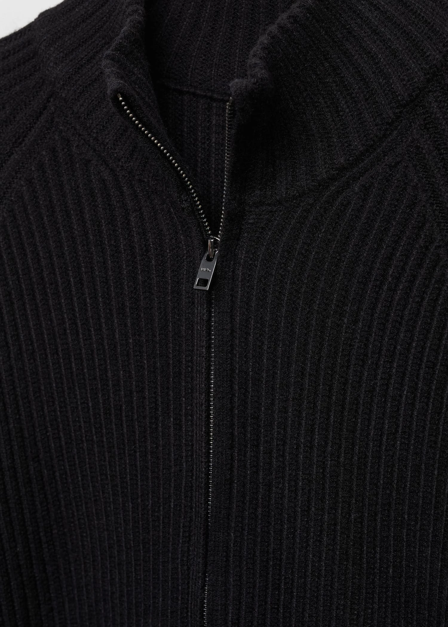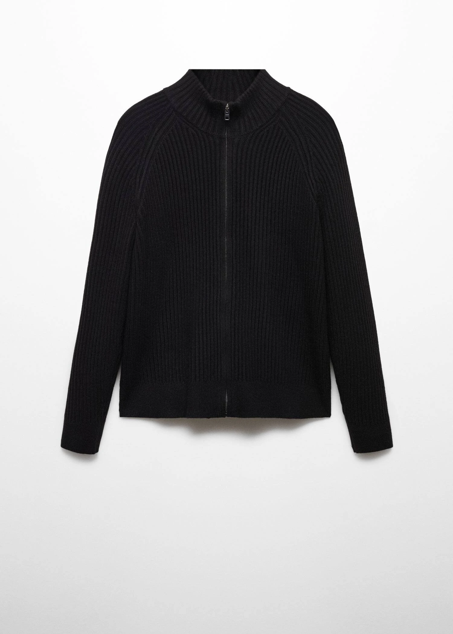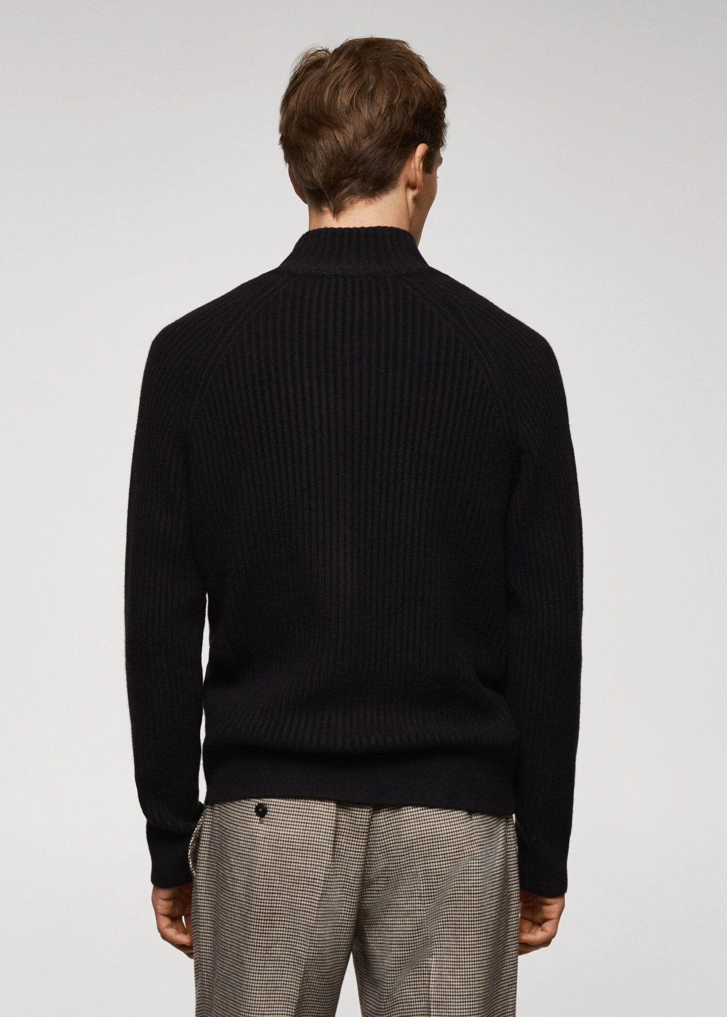 tissu de laine melange, maille moyenne, slim-fit, cotele, col montant, fermeture eclair a l’avant, manches longues, bas droit, le mannequin mesure 190 cm et porte une taille mComposition: 49% acrylique,23% polyester,18% polyamide,5% laine,5% viscose