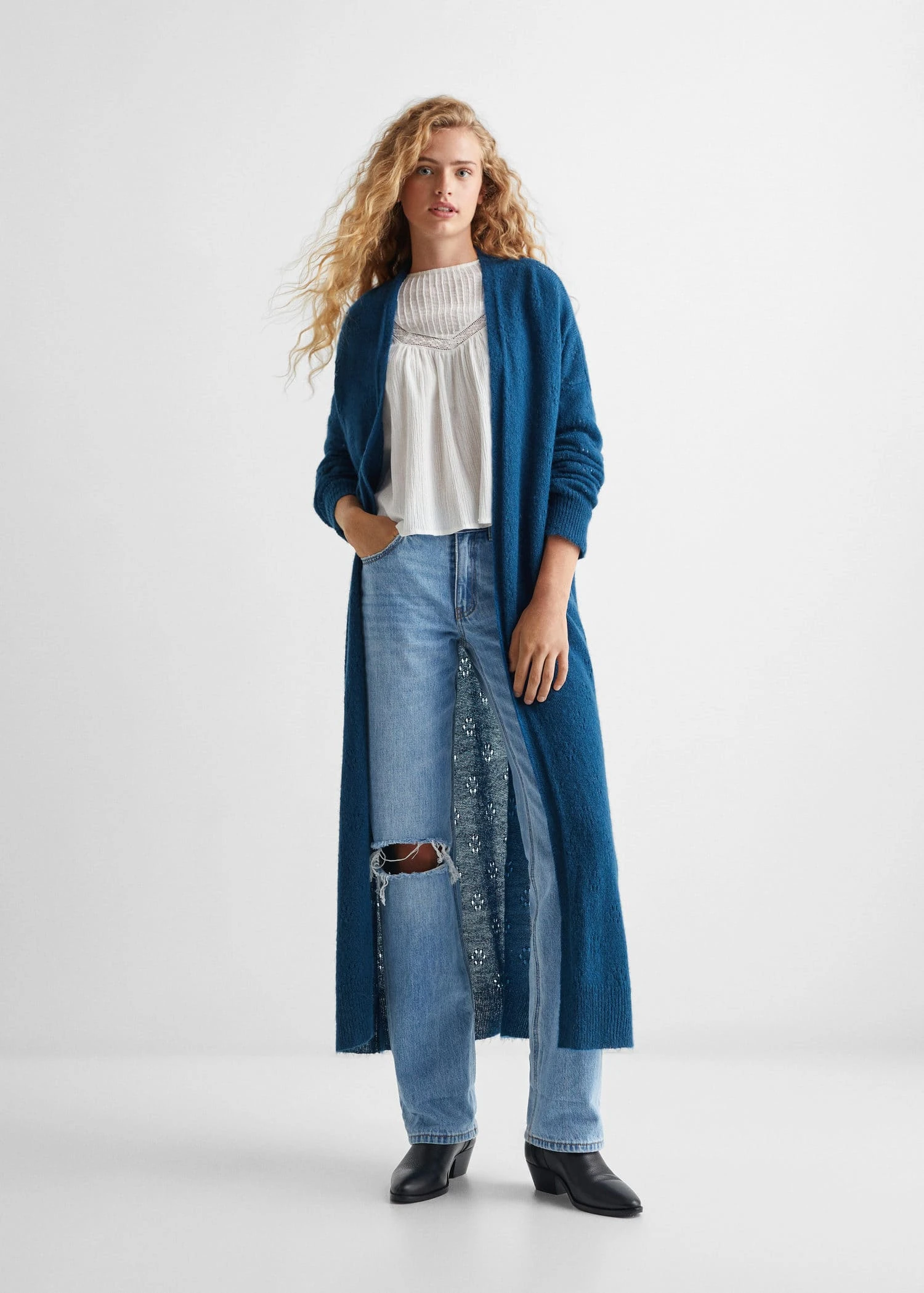 tissu en maille, coupe longue, coupe droite, manches longues, sans fermetureComposition: 60% acrylique,40% polyamide