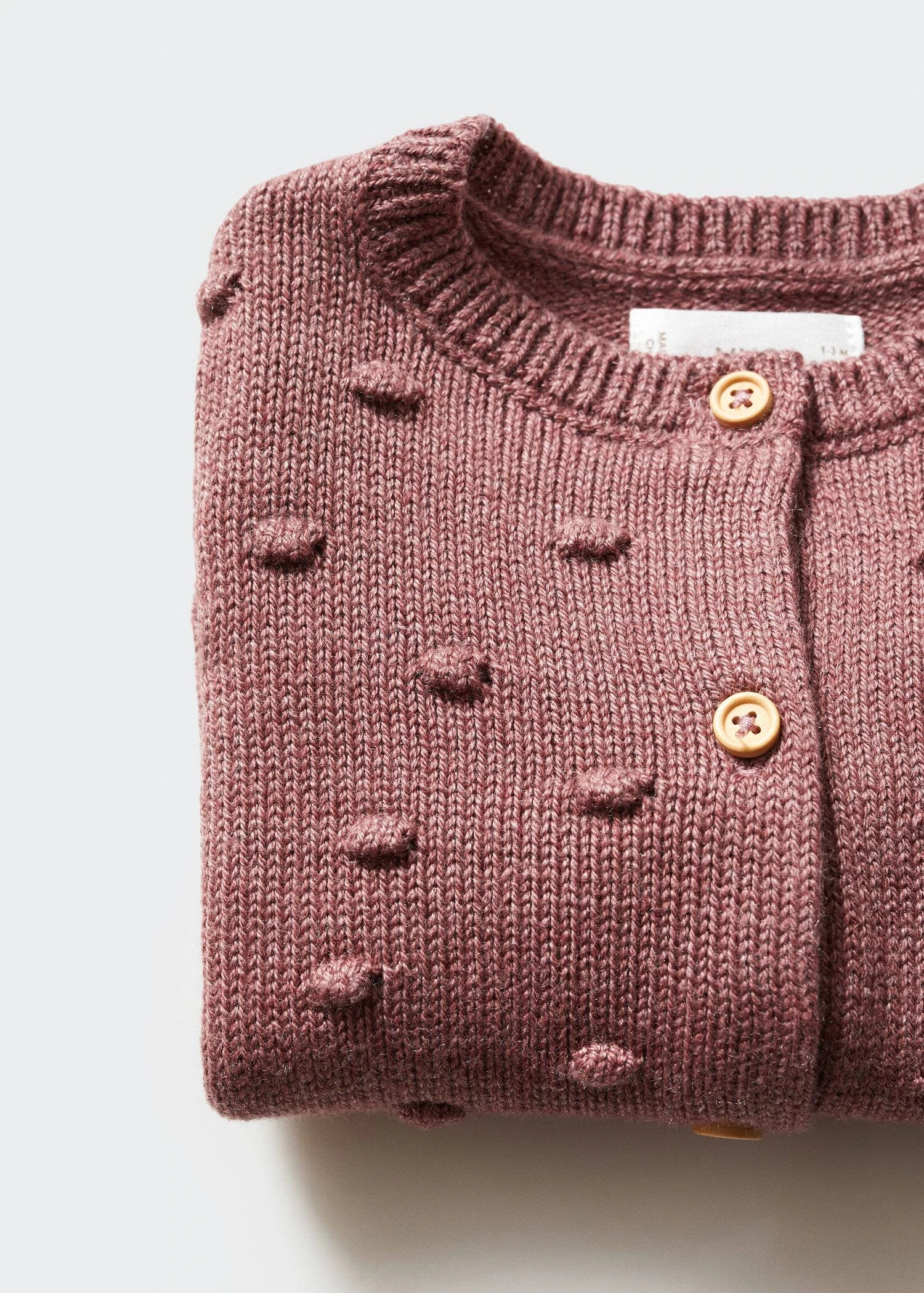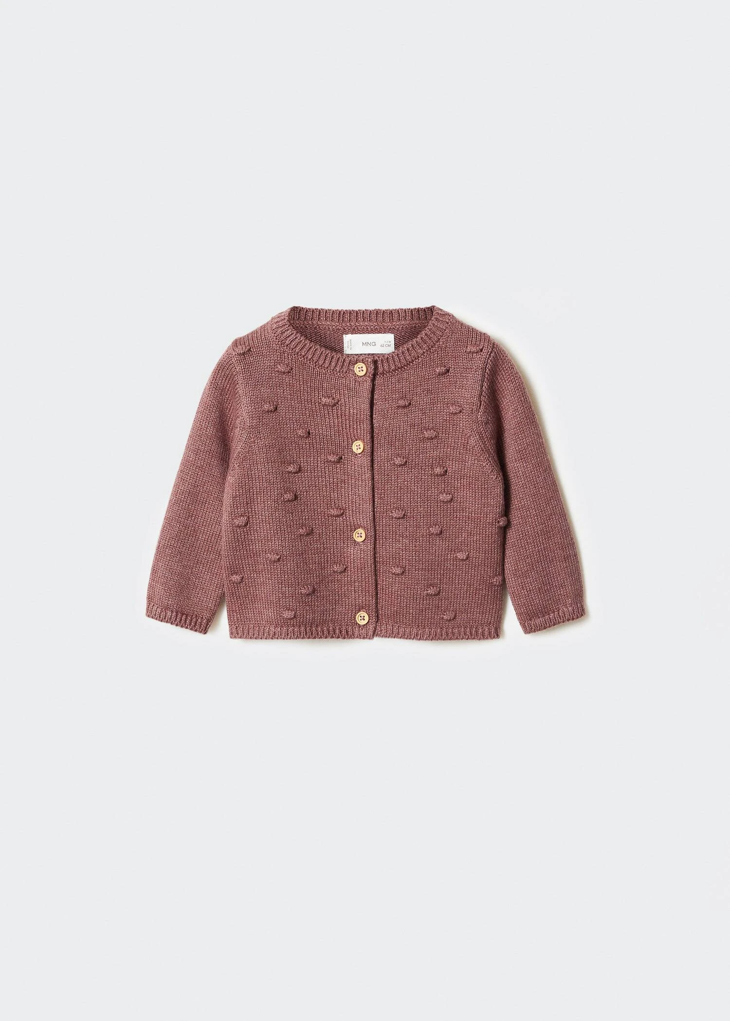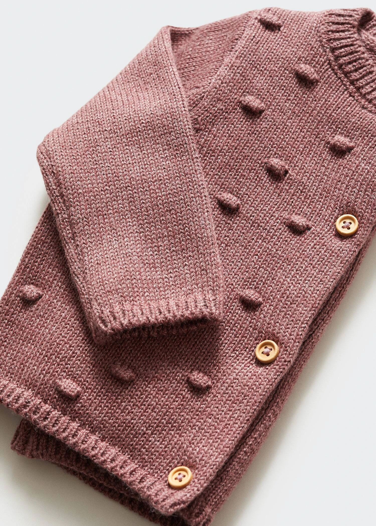 tissu en maille, detail brode, maille moyenne, manches longues, fermeture boutonneeComposition: 60% coton,40% acrylique
