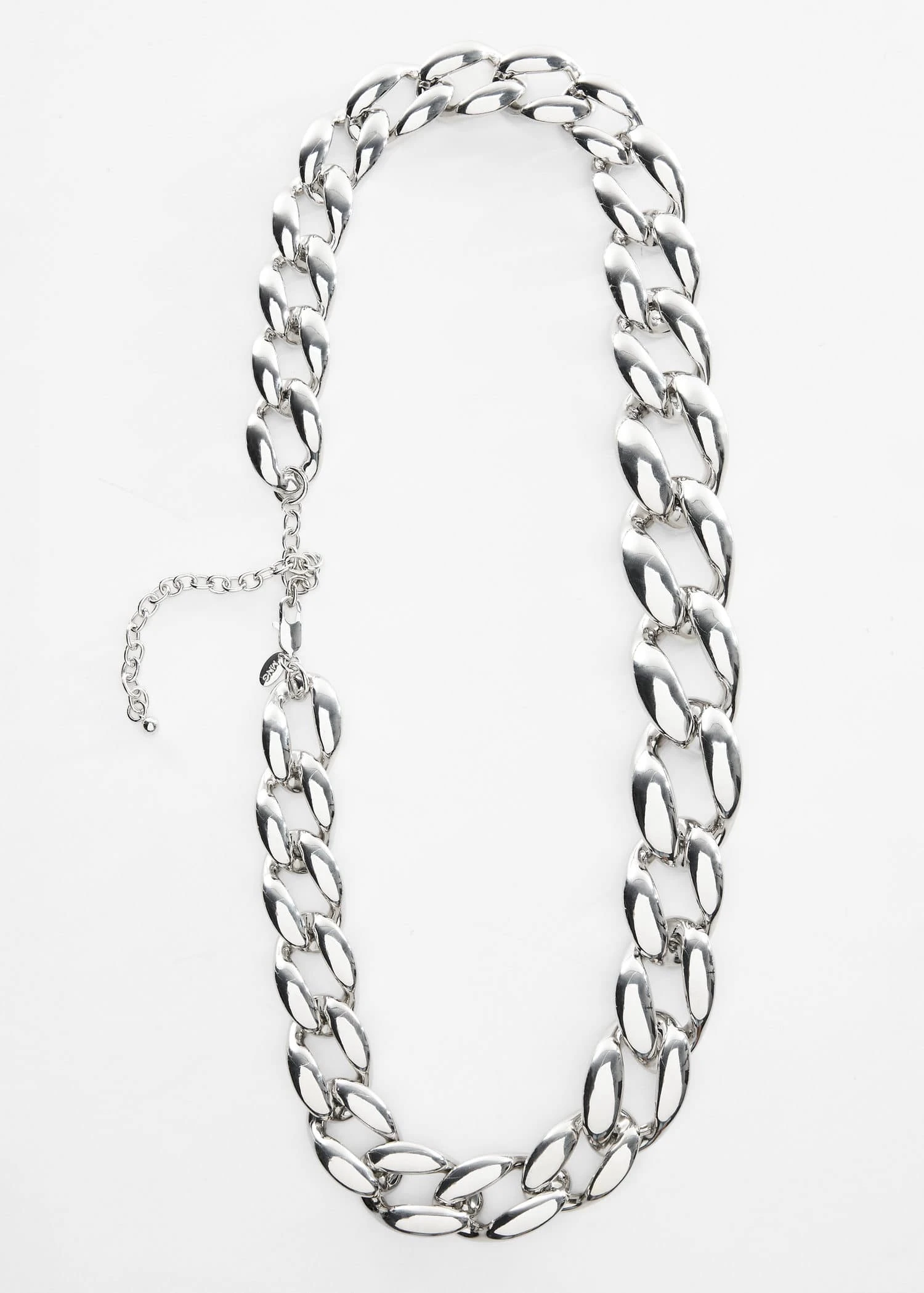 forme chaine, fermoir mousqueton, fermeture reglableComposition: 65% acrylique,27% zinc,5% acier inoxydable,3% laiton
