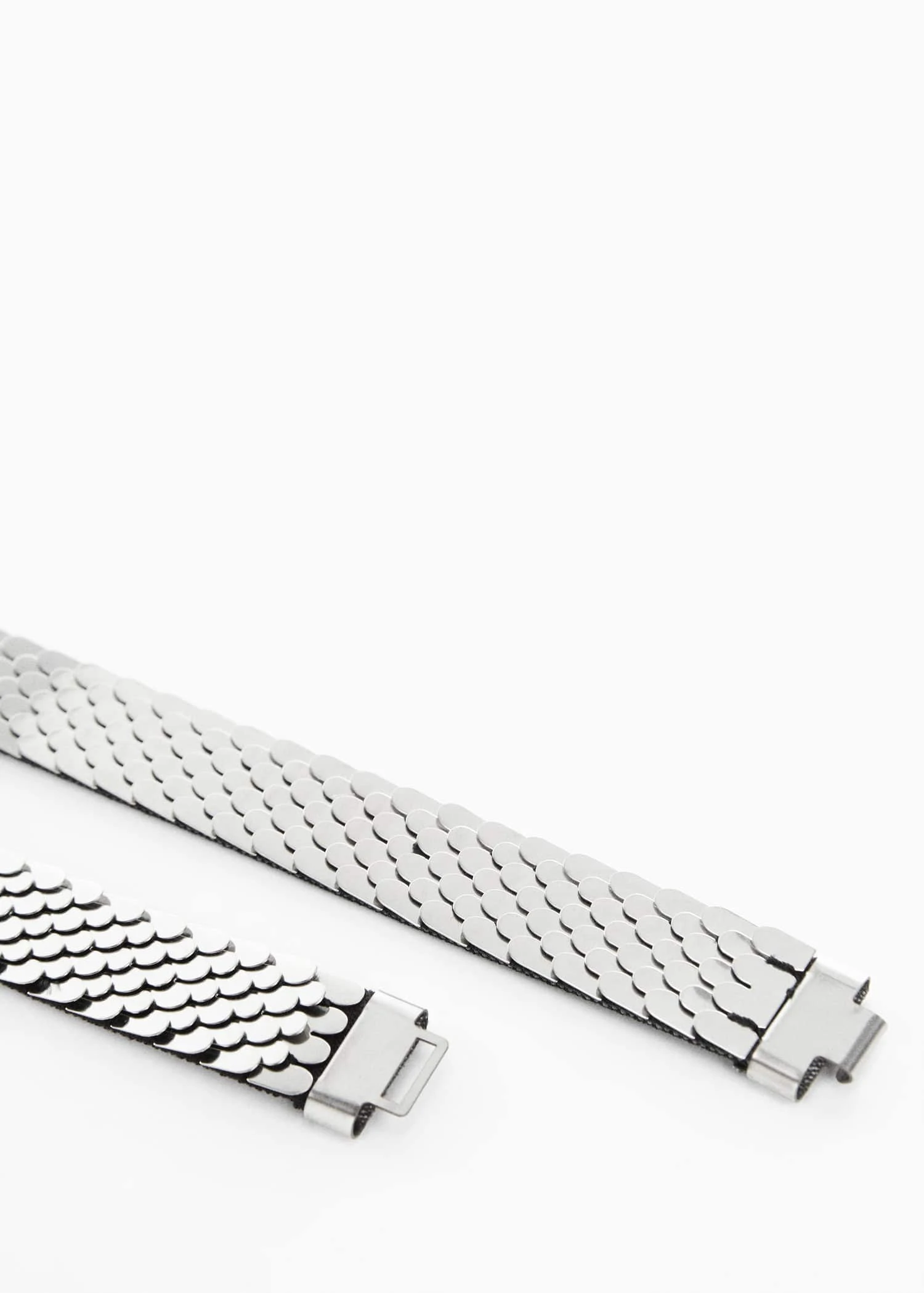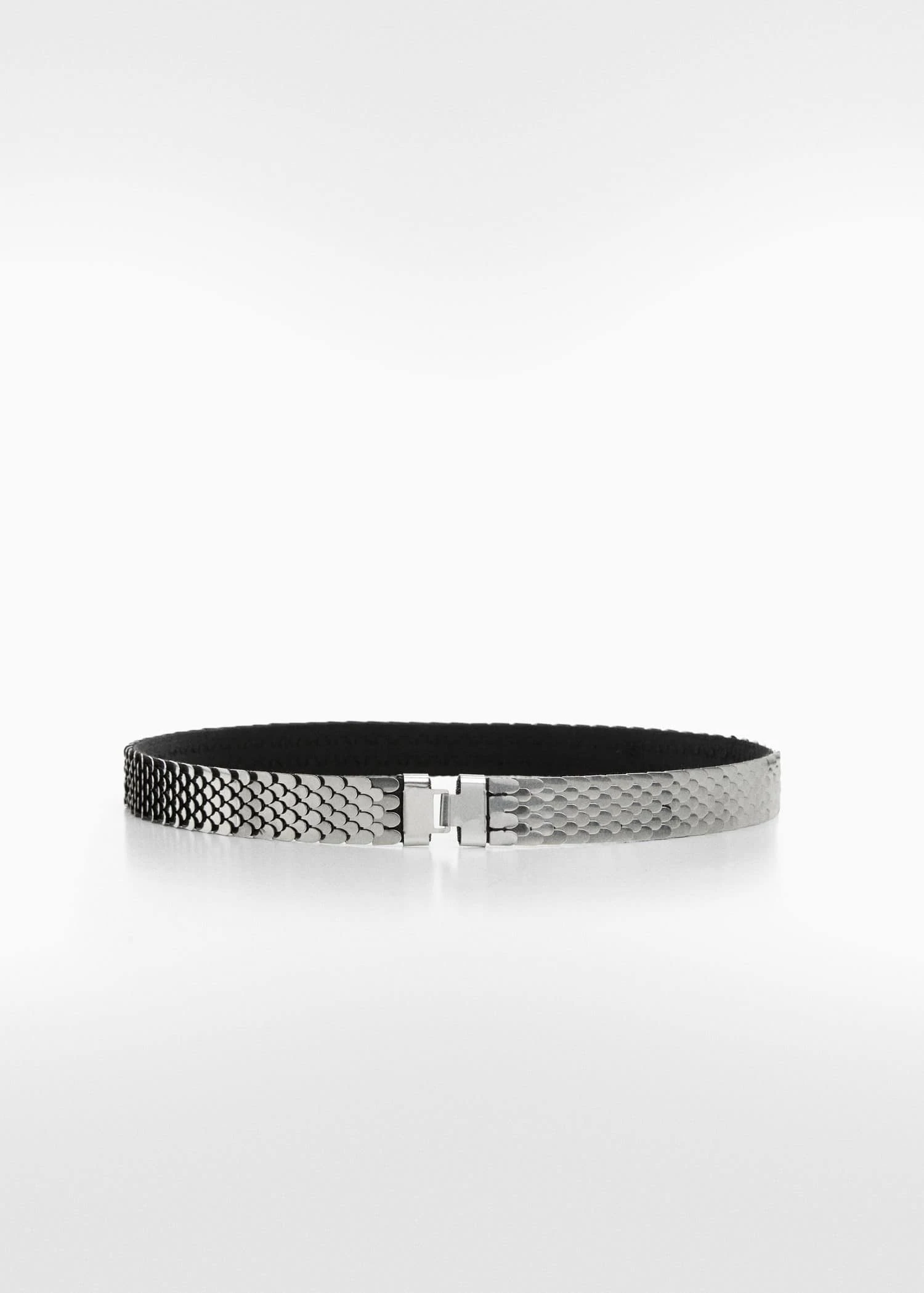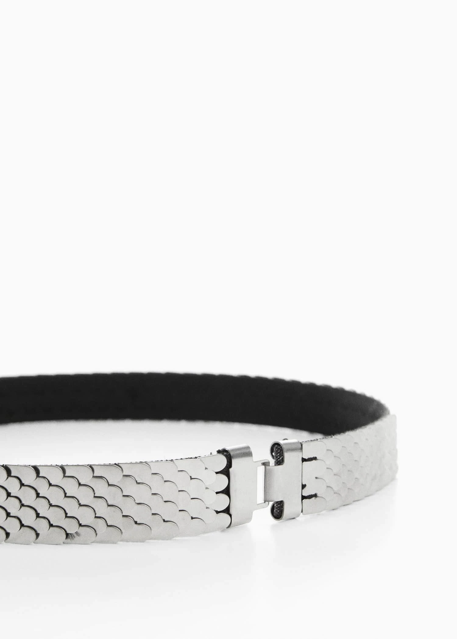 design metallique, fermoir clip metallique, detail ecailles, doublure, collection fetes et ceremonies.Composition: 100% acier inoxydable. Doublure: 65% polyester,35% elastodiène