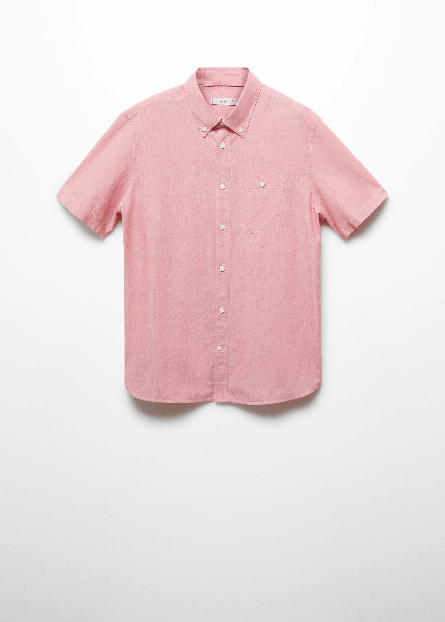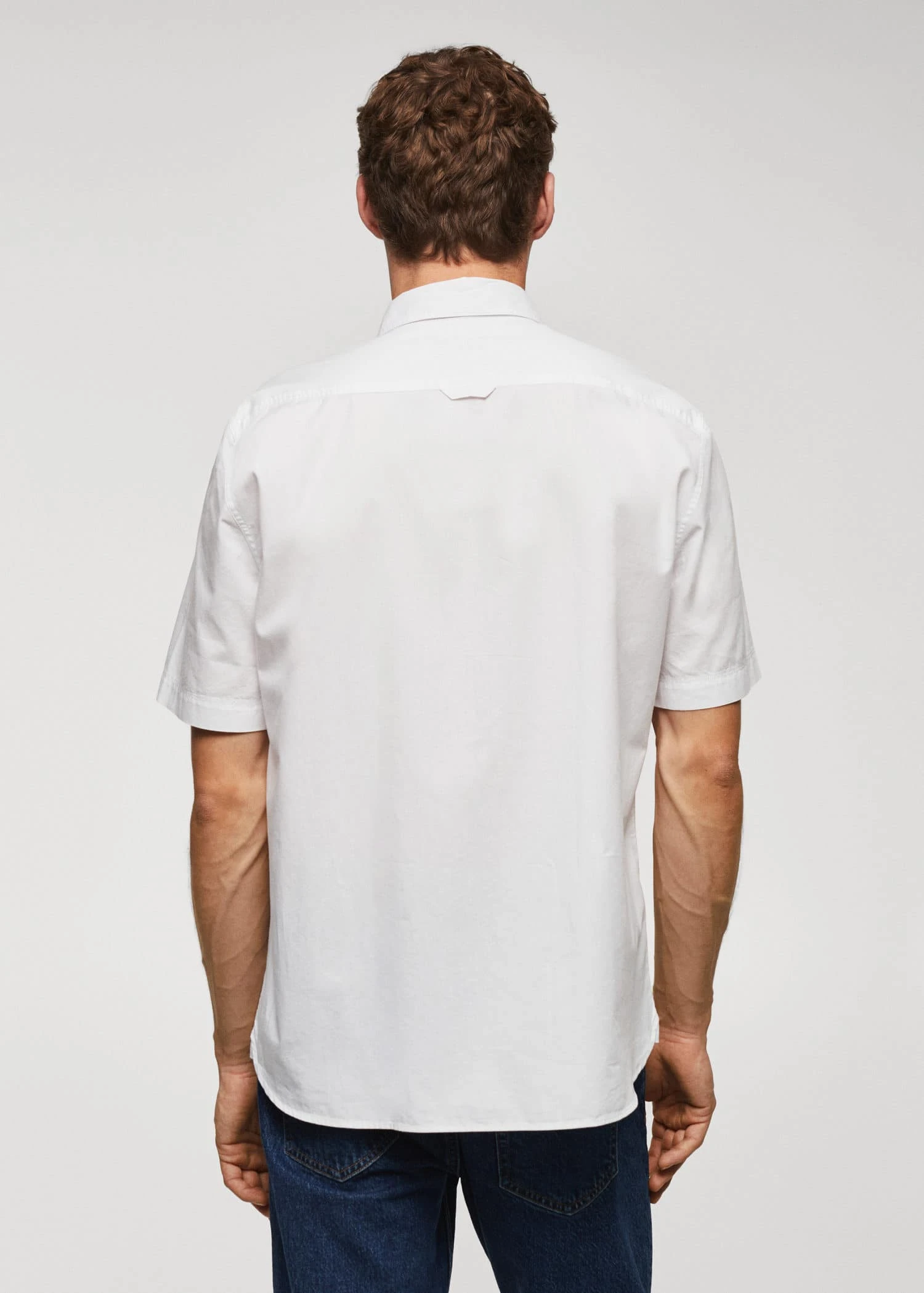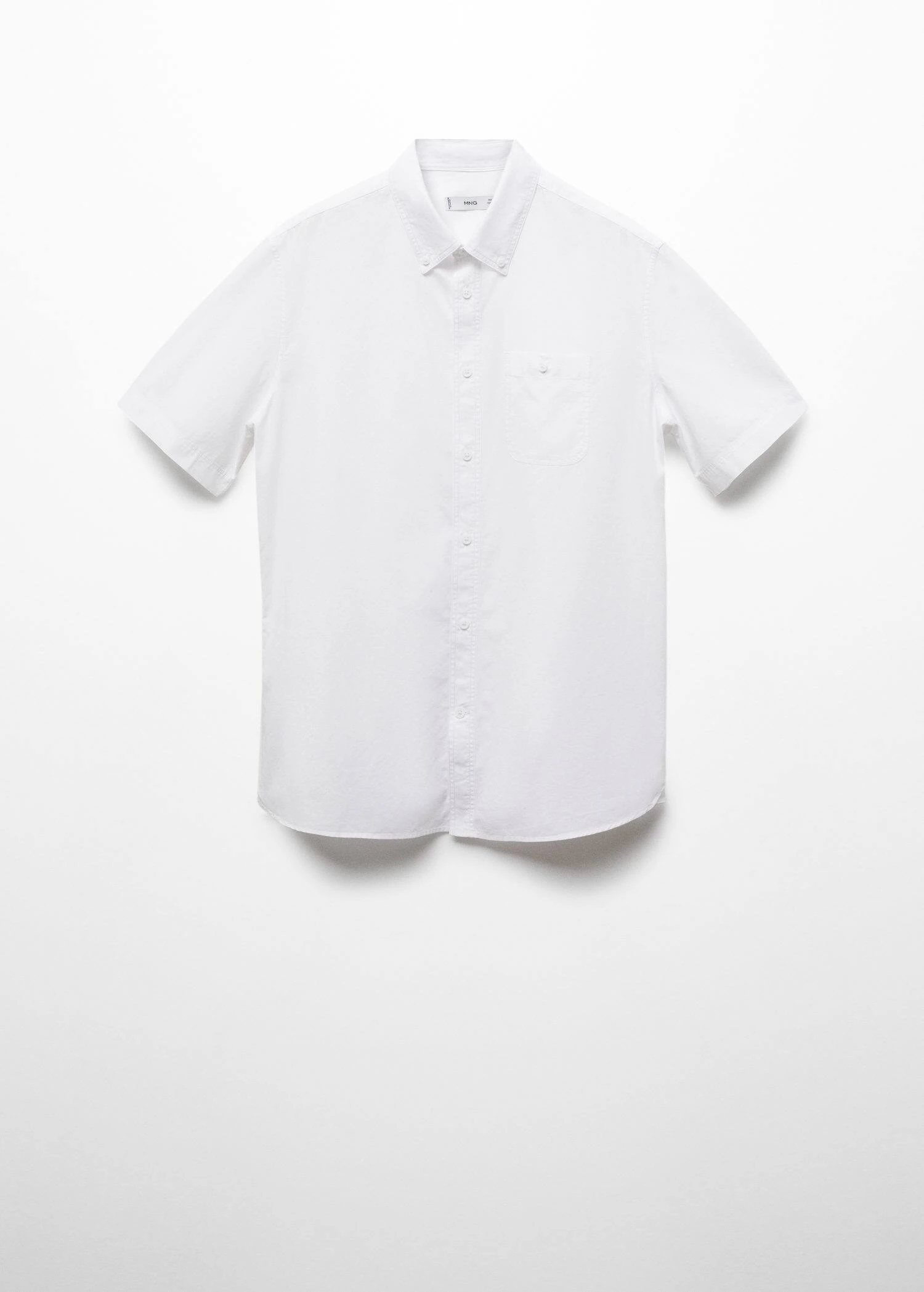 100 % coton, tissu leger, regular-fit, col americain boutonne, fermeture a boutons sur le devant, poche plaquee a bouton sur la poitrine, manches courtes, bas arrondi, le mannequin mesure 190 cm et porte une taille mComposition: 100% coton