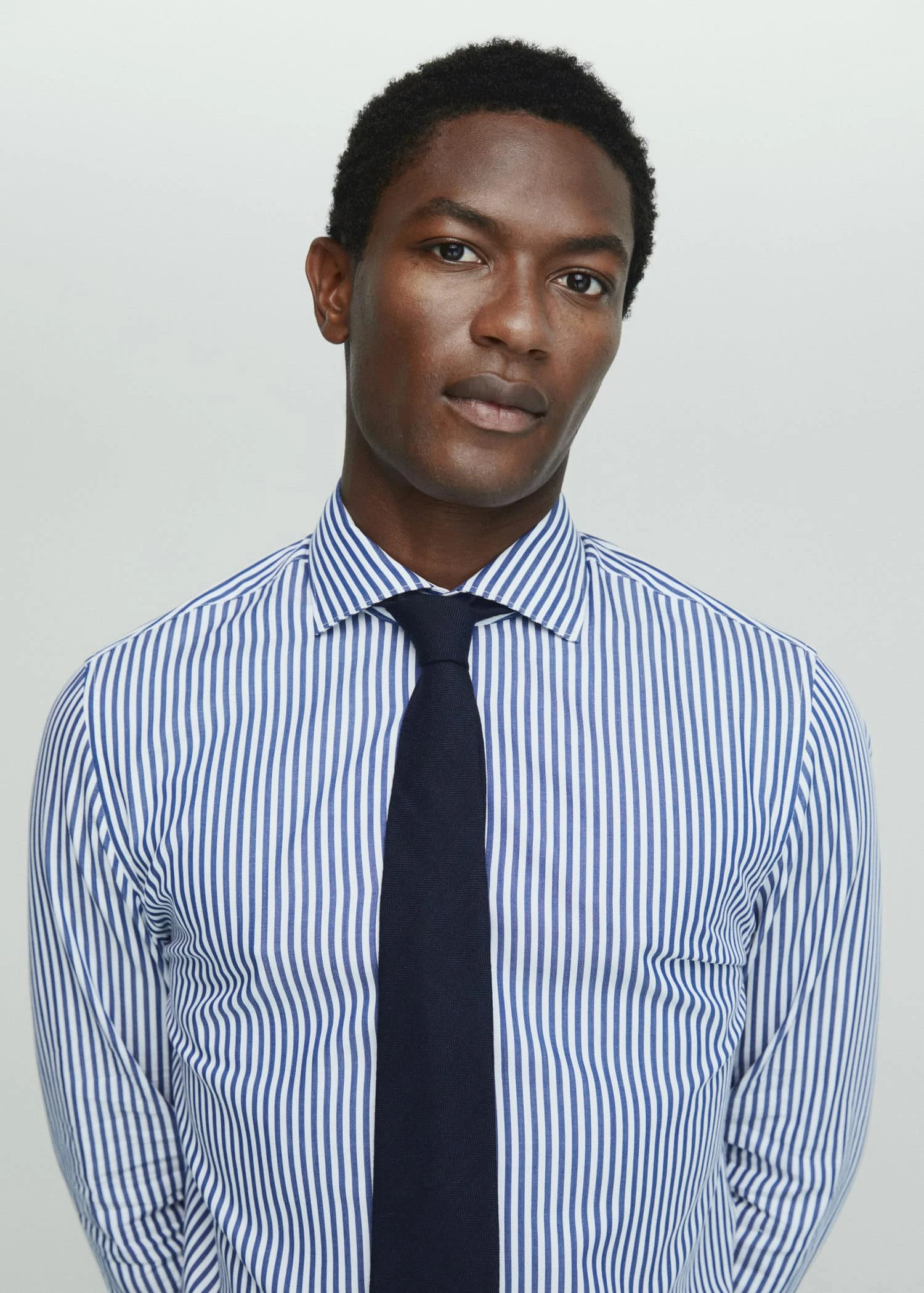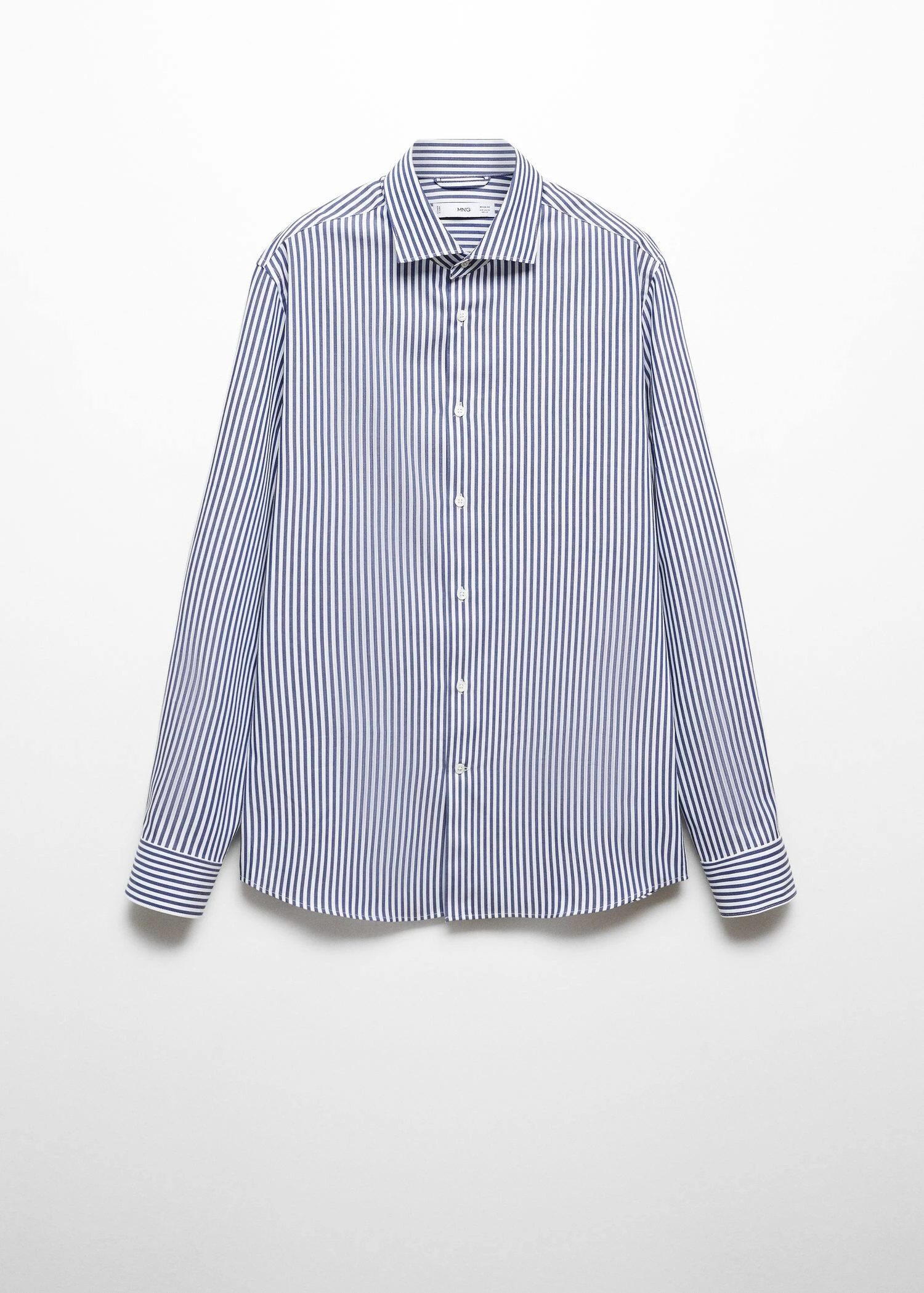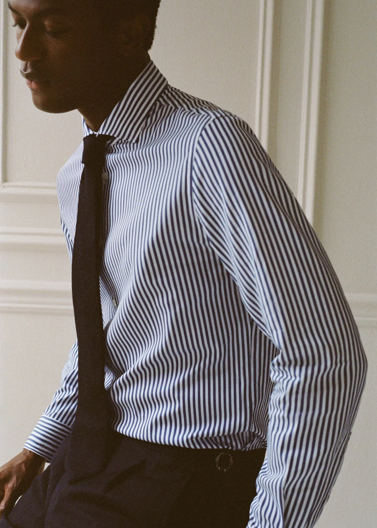 slim-fit, 100 % coton, imprime rayures, col italien, fermeture a boutons sur le devant, manches longues avec poignets boutonnes, bas arrondi, le mannequin mesure 190 cm et porte une taille mComposition: 100% coton