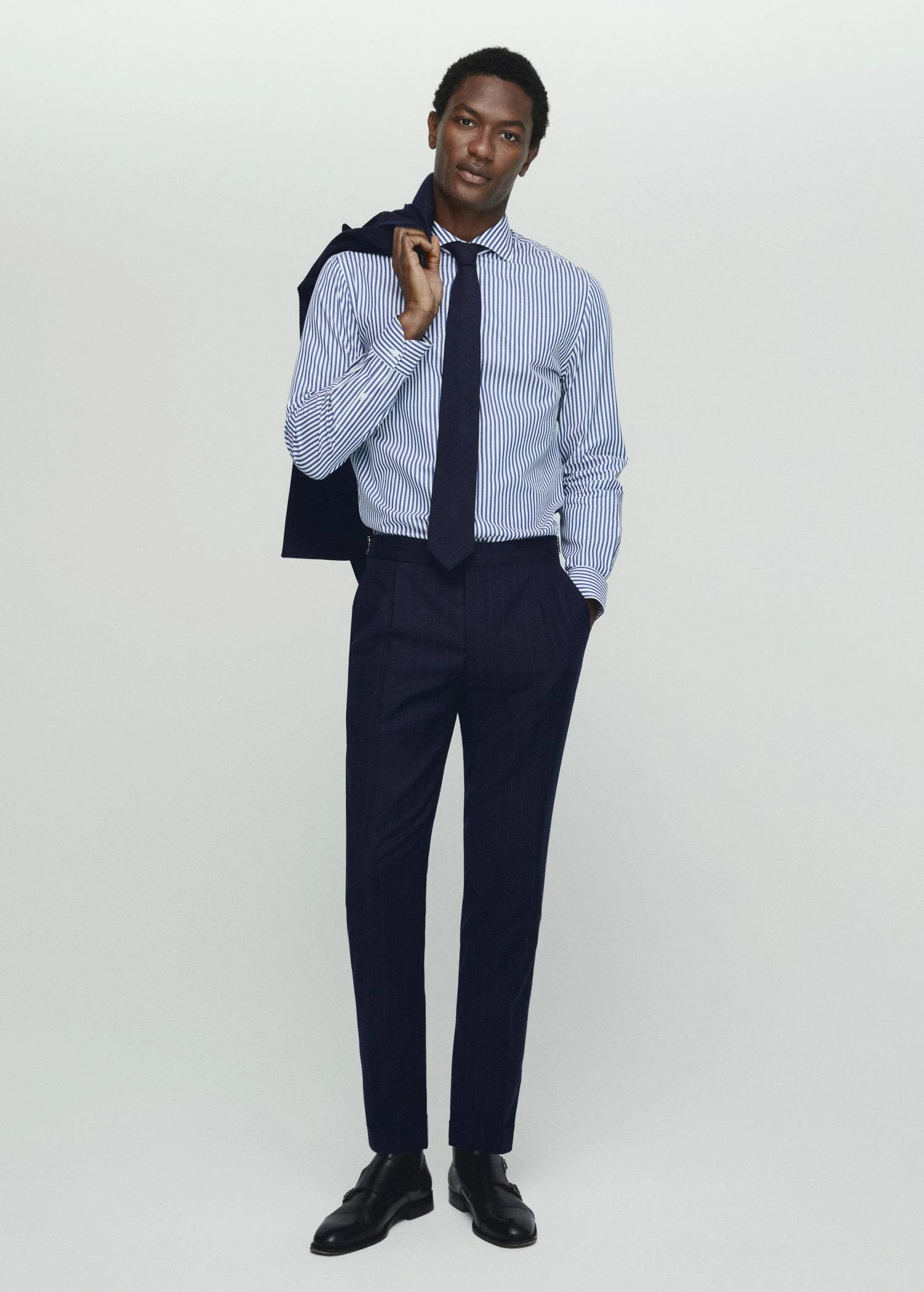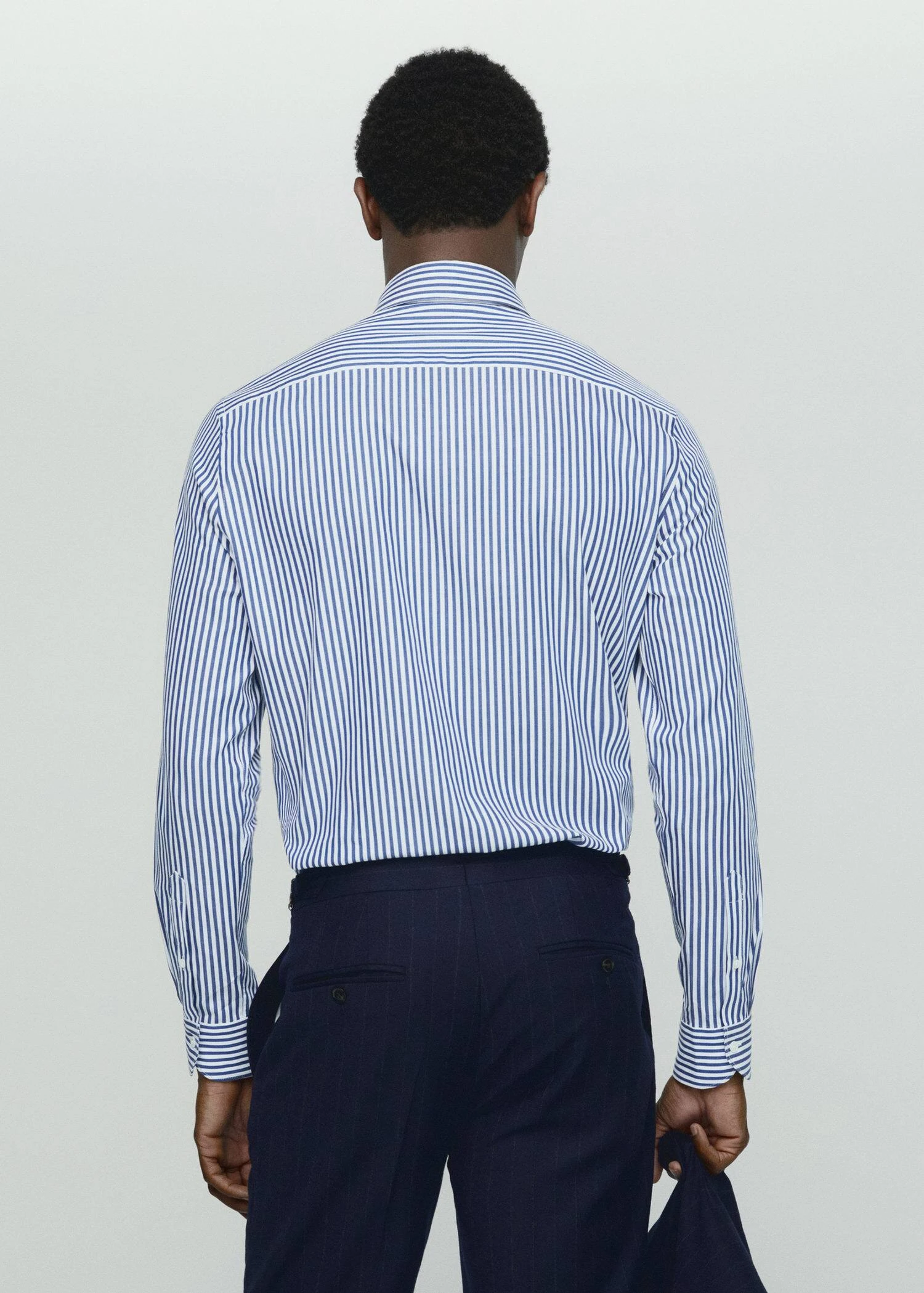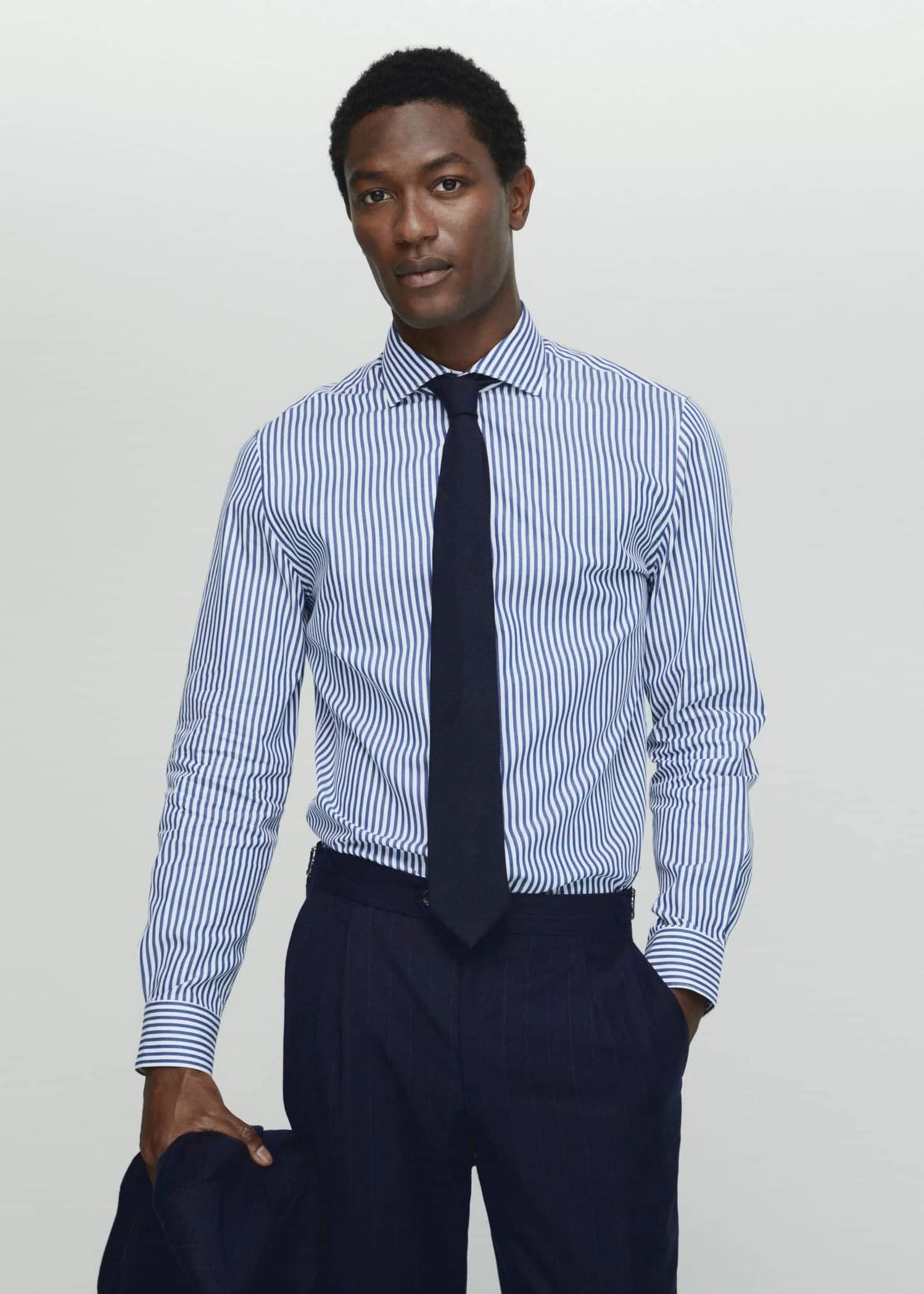 slim-fit, 100 % coton, imprime rayures, col italien, fermeture a boutons sur le devant, manches longues avec poignets boutonnes, bas arrondi, le mannequin mesure 190 cm et porte une taille mComposition: 100% coton