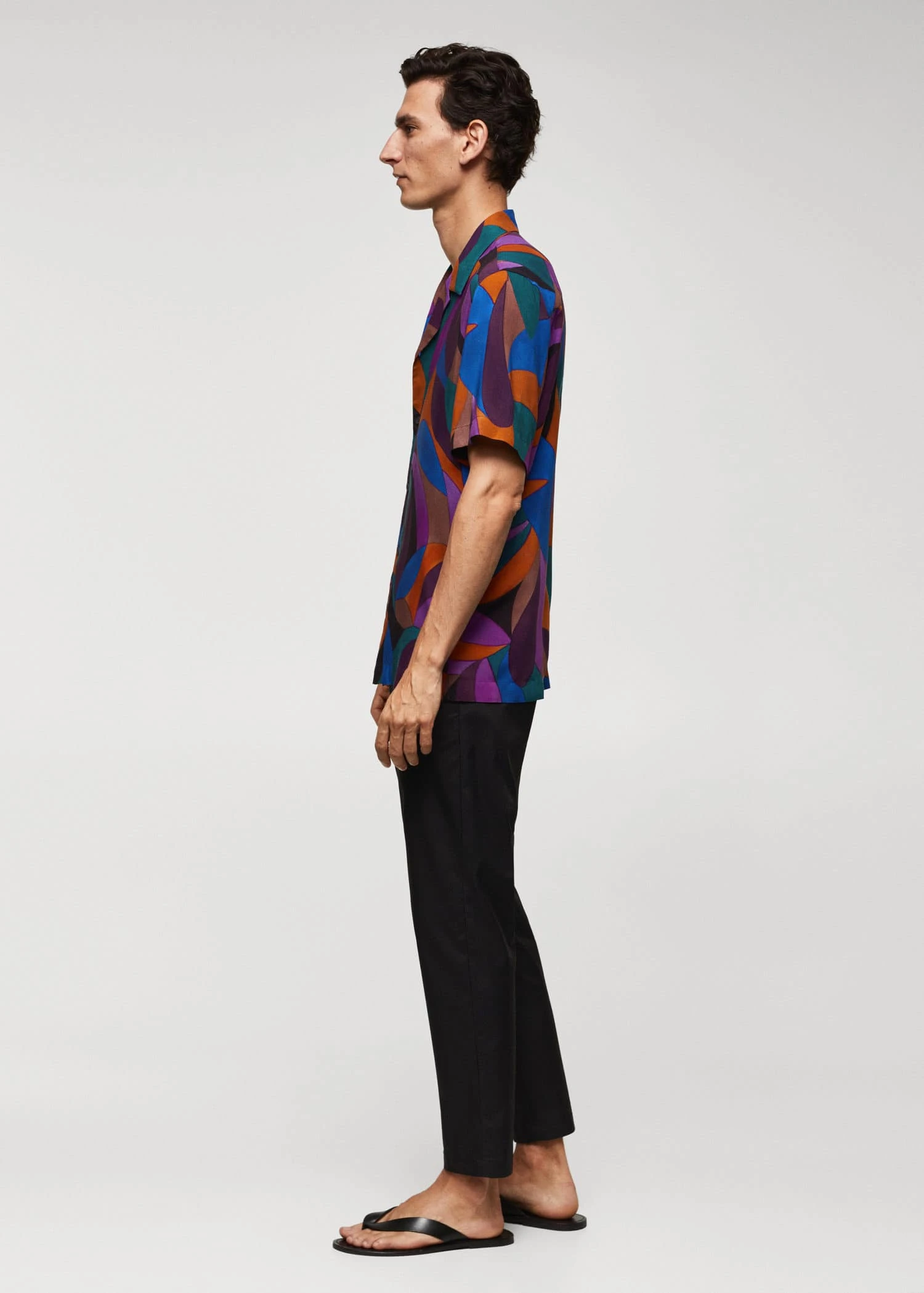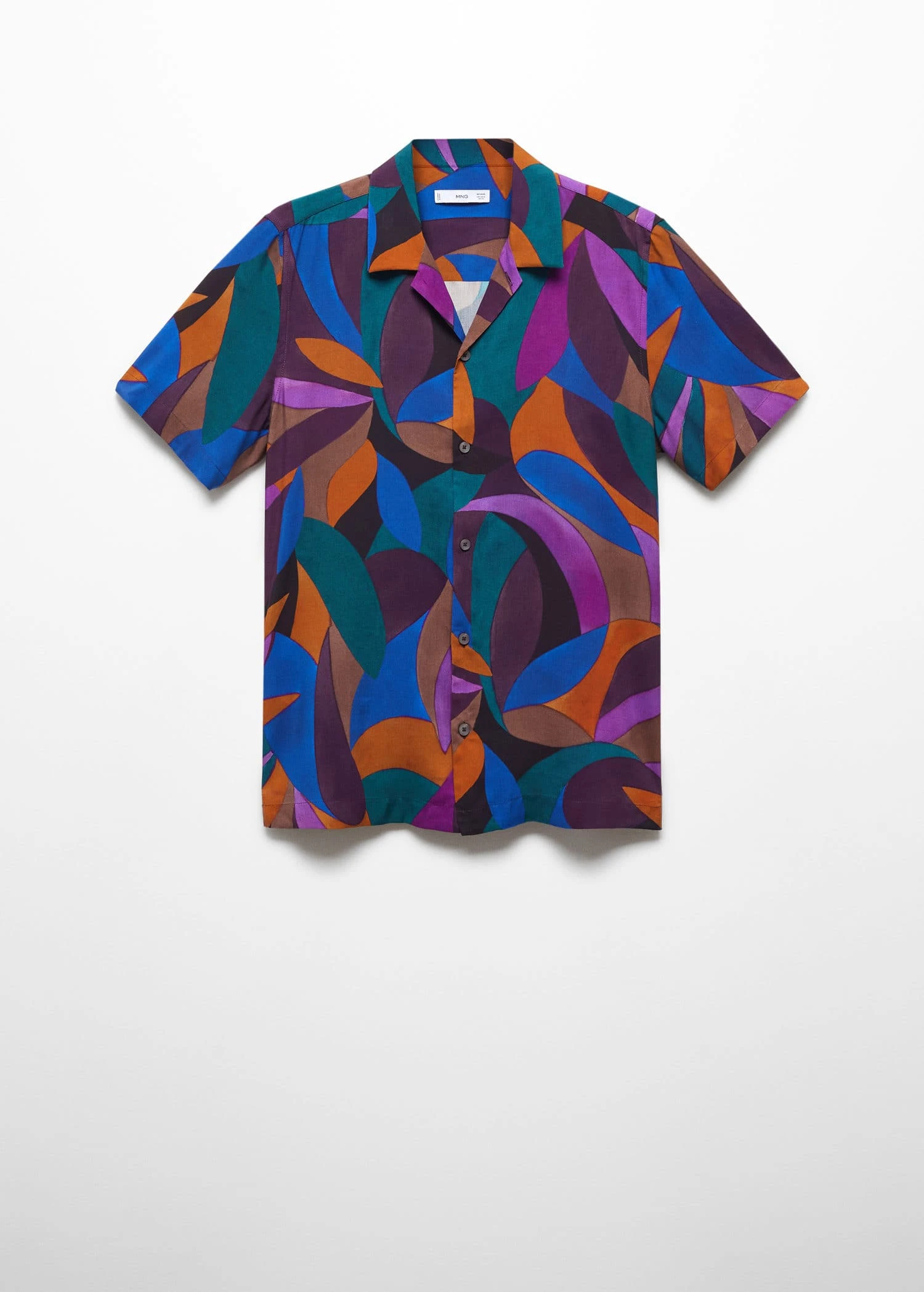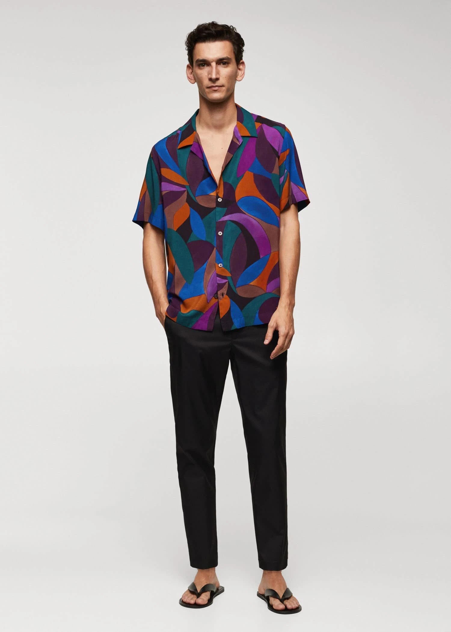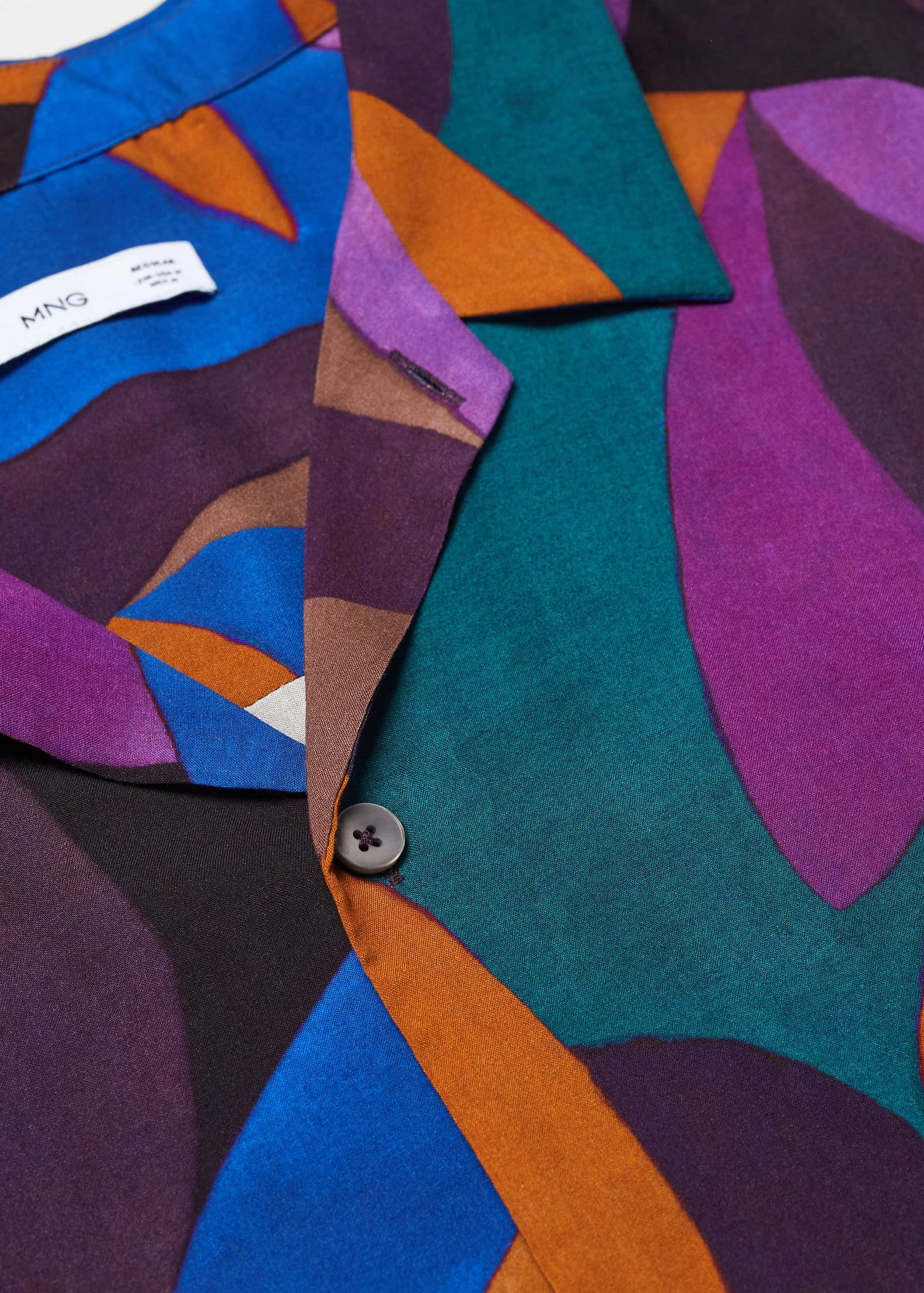 regular-fit, tissu fluide, imprime geometrique colore, col bowling boutonne, fermeture a boutons sur le devant, manches courtes, bas droit, le mannequin mesure 190 cm et porte une taille 42, il est recommande de laver a froidComposition: 100% viscose