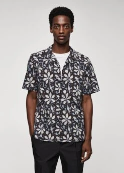 100 % coton, tissu leger, regular-fit, imprime fleurs, col bowling, fermeture a boutons sur le devant, manches courtes, bas droit, fentes laterales, le mannequin mesure 190 cm et porte une taille mComposition: 100% coton