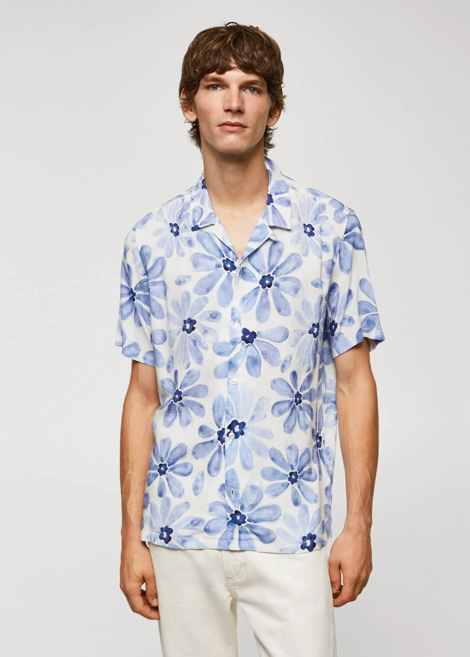 regular-fit, tissu leger, imprime floral, col bowling, fermeture a boutons sur le devant, manches courtes, bas droit fendu sur les cotes., le mannequin mesure 190 cm et porte une taille mComposition: 100% viscose