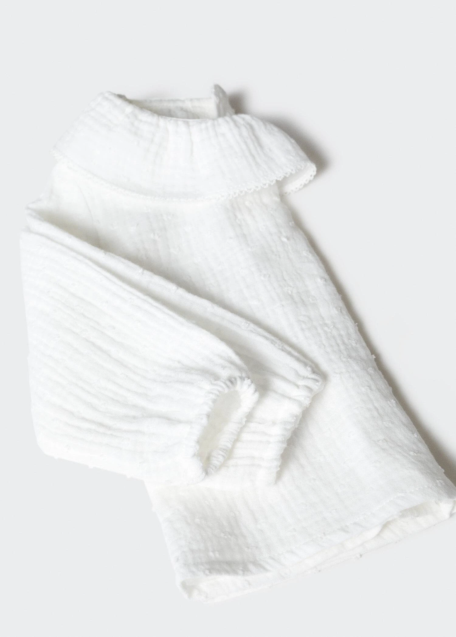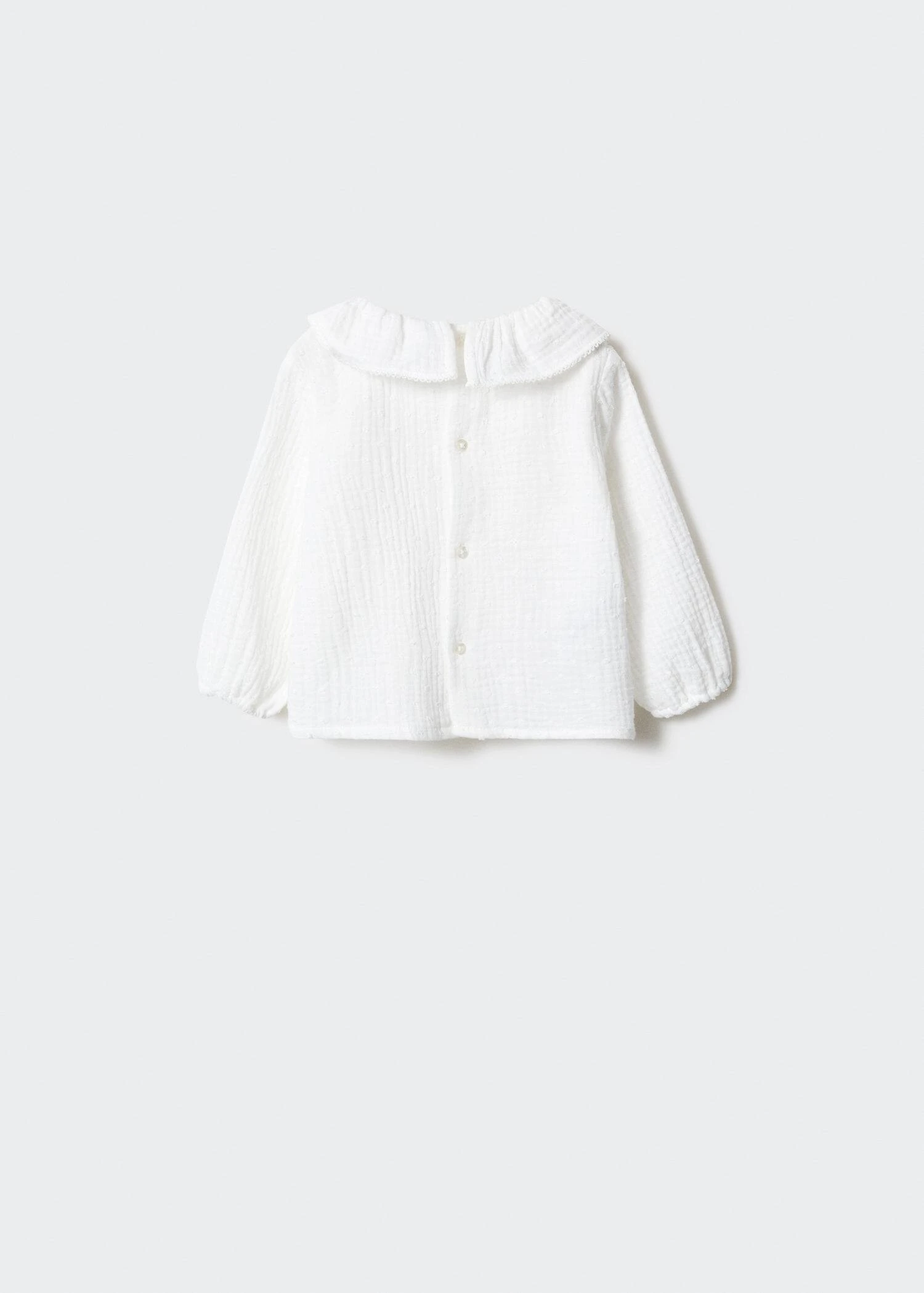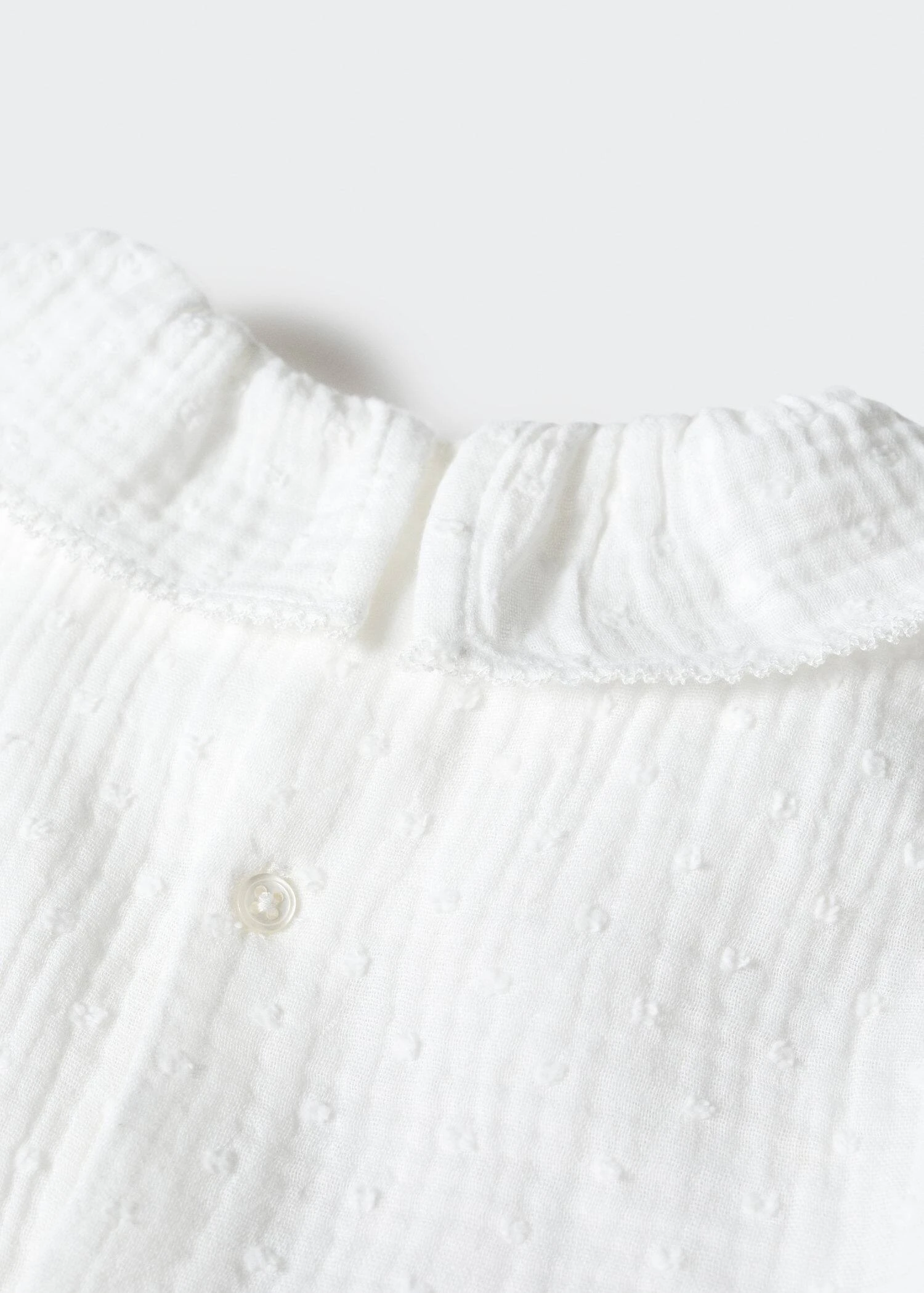 100 % coton, details brodes, col claudine, manches longues, fermeture boutonnee, fermeture boutonnee a l’arriereComposition: 100% coton