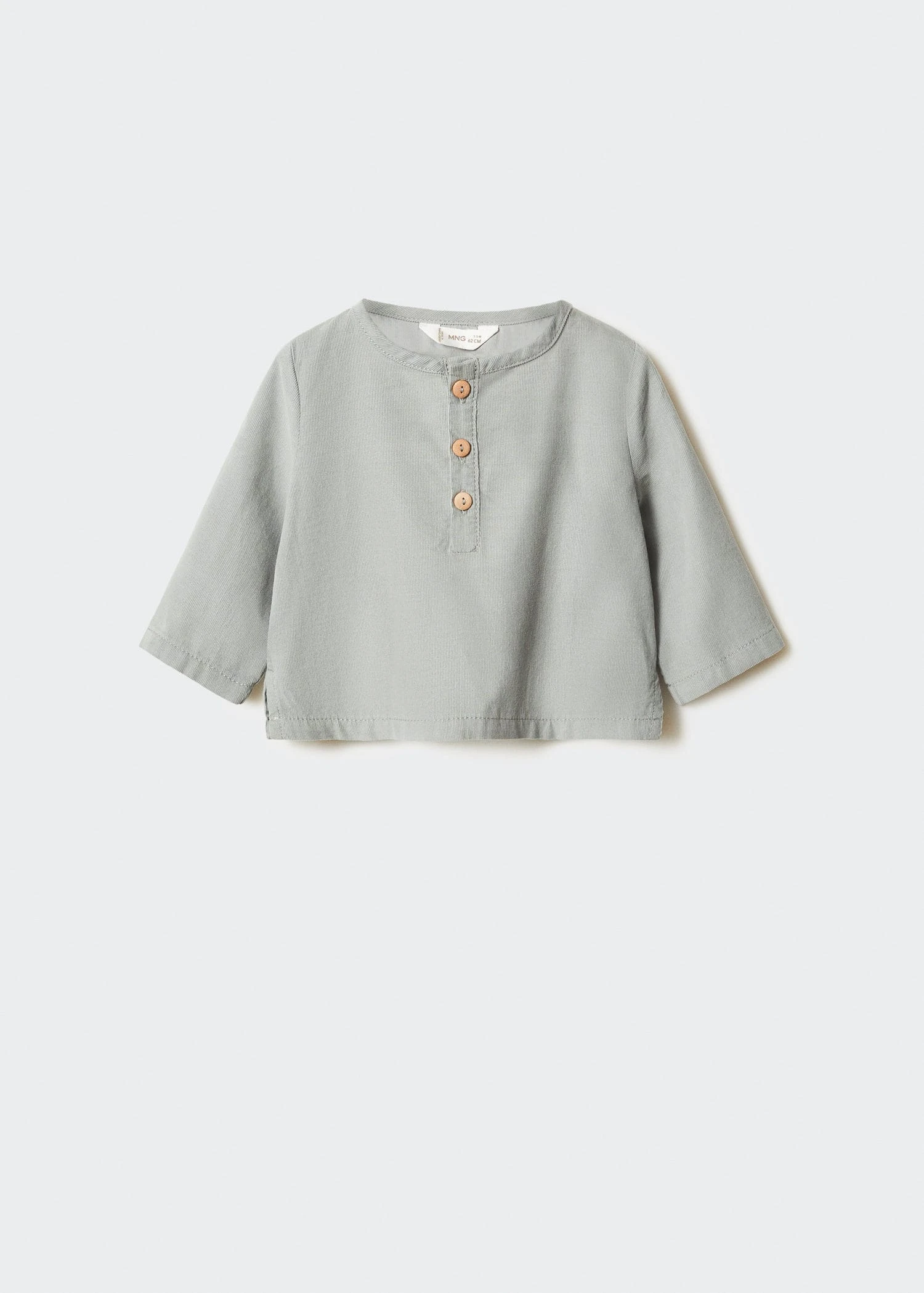 100 % coton, coupe droite, col rond, manches longues, fermeture frontale, fermeture boutonneeComposition: 100% coton. Doublure: 100% coton