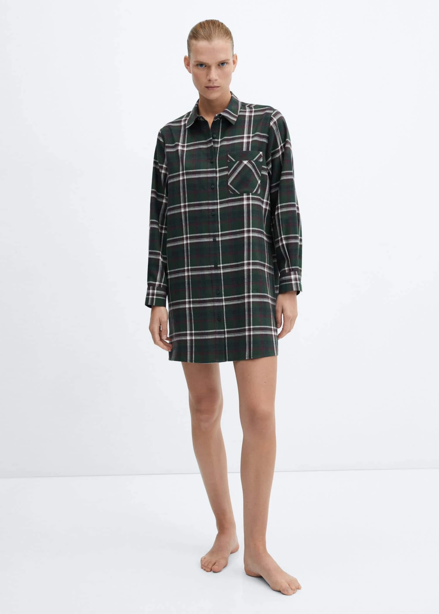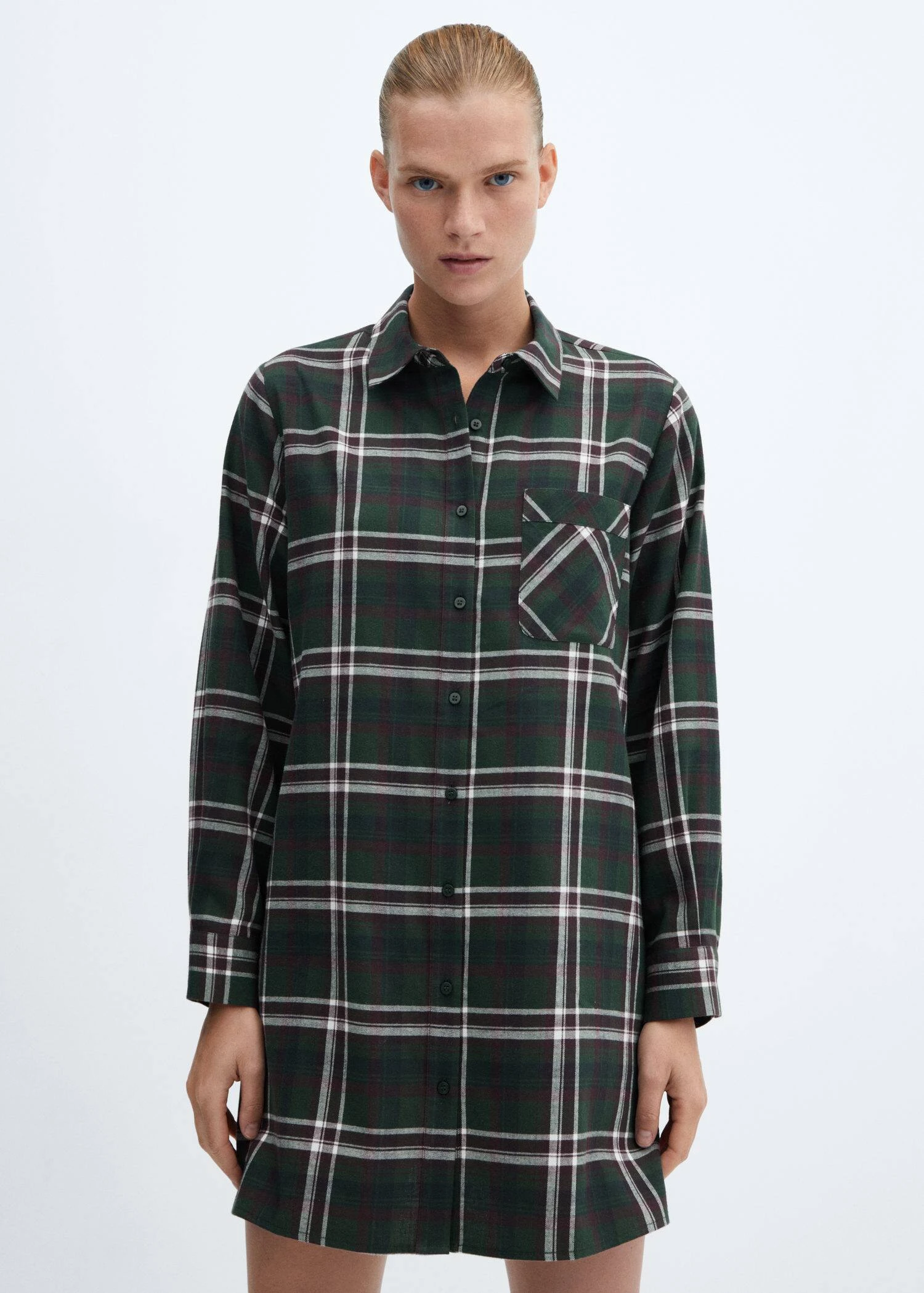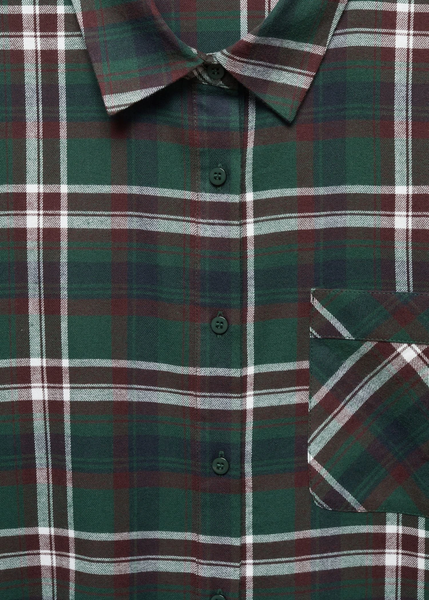 100 % coton, tissu en flanelle, droit, imprime carreaux ecossais, col chemise, manches longues avec poignets boutonnes, poche plaquee sur la poitrine, fermeture a boutons sur le devant.Composition: 100% coton