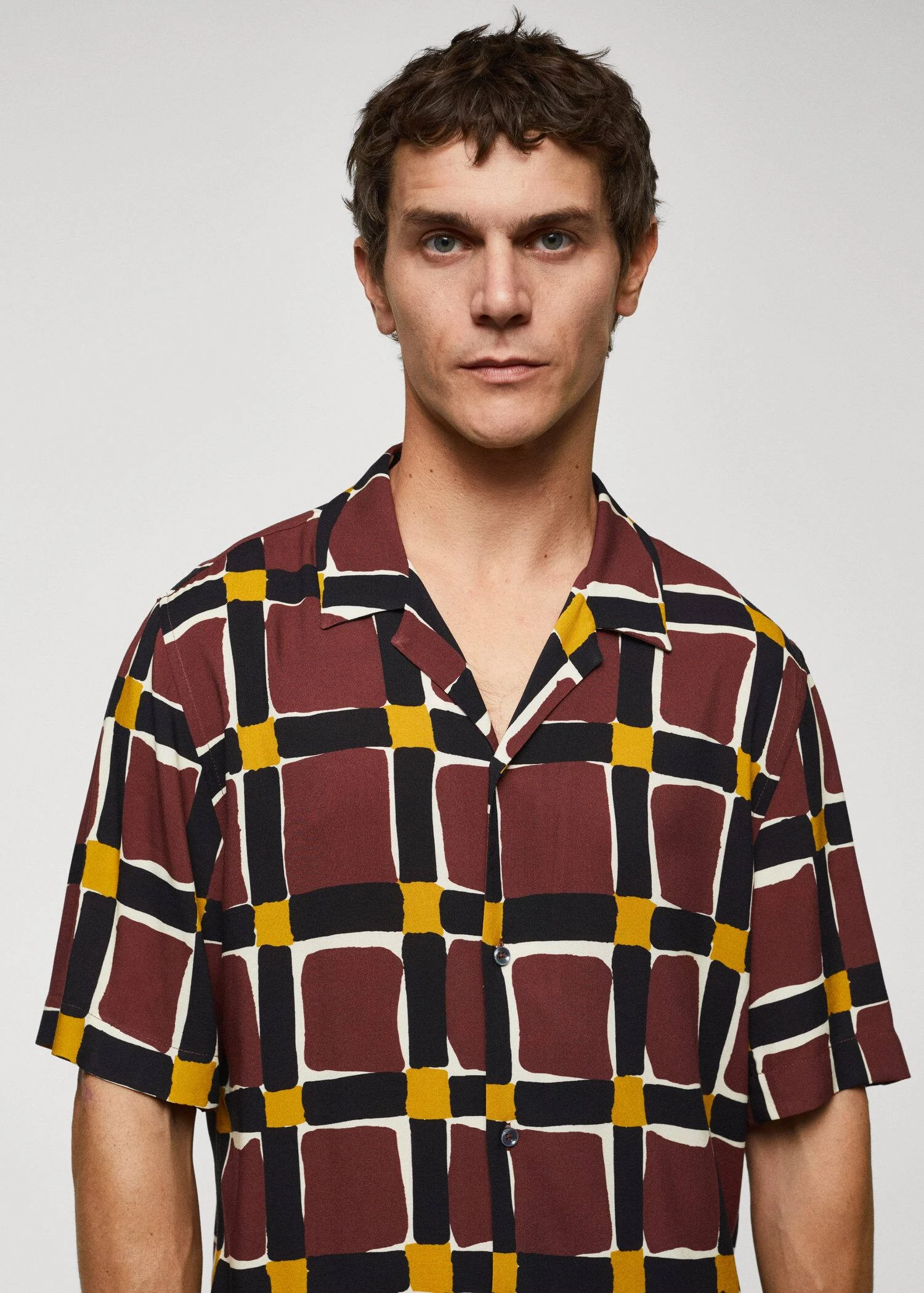 regular-fit, imprime geometrique colore, col bowling, manches courtes, fermeture a boutons sur le devant, bas droit, il est recommande de laver a froid, le mannequin mesure 190 cm et porte une taille mComposition: 100% viscose