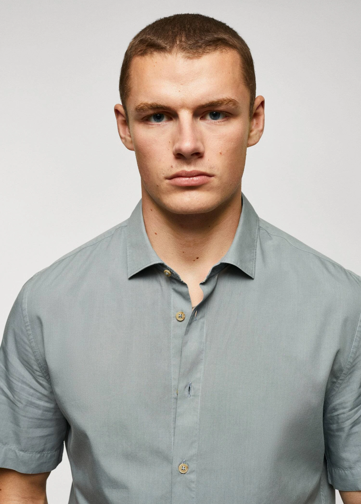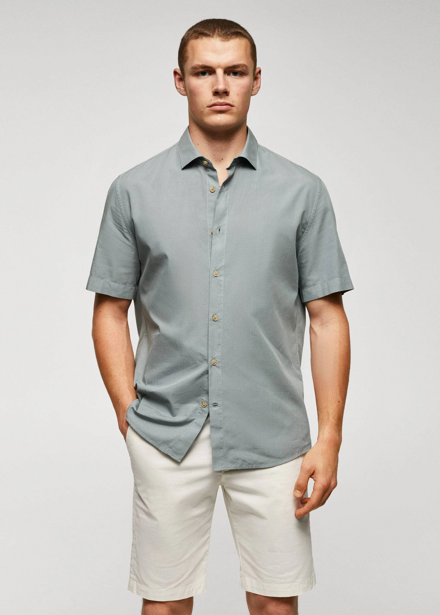 regular-fit, tissu en voile de coton, tissu fin, col chemise, manches courtes, fermeture a boutons sur le devant, coupe standard, bas arrondiComposition: 50% coton,50% lyocell
