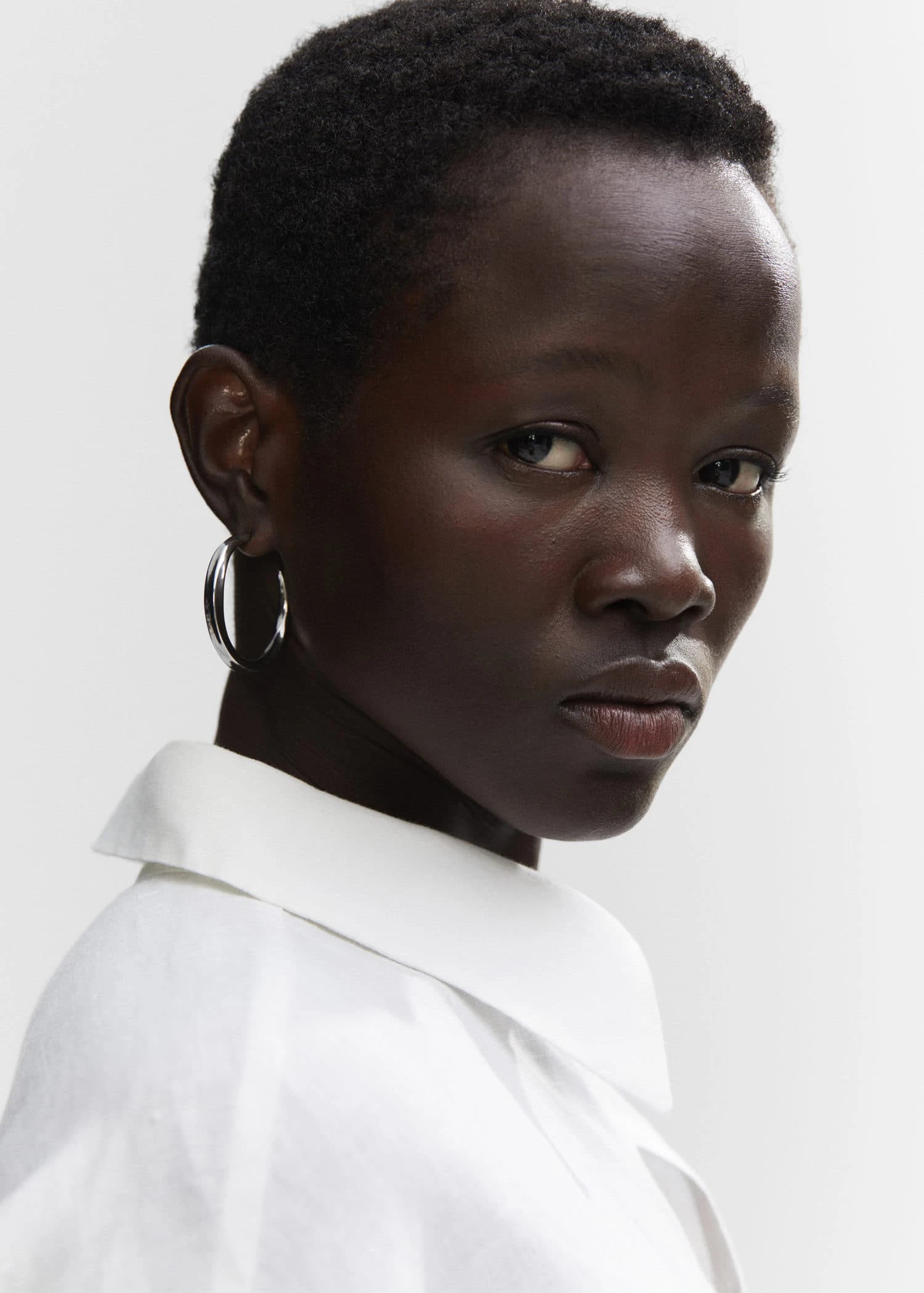 tissu 100 % lin, style oversize, col chemise, manches courtes retournees, poche plaquee, fermeture boutonnee sur le devant, bas arrondi, disponible plusComposition: 100% lin
