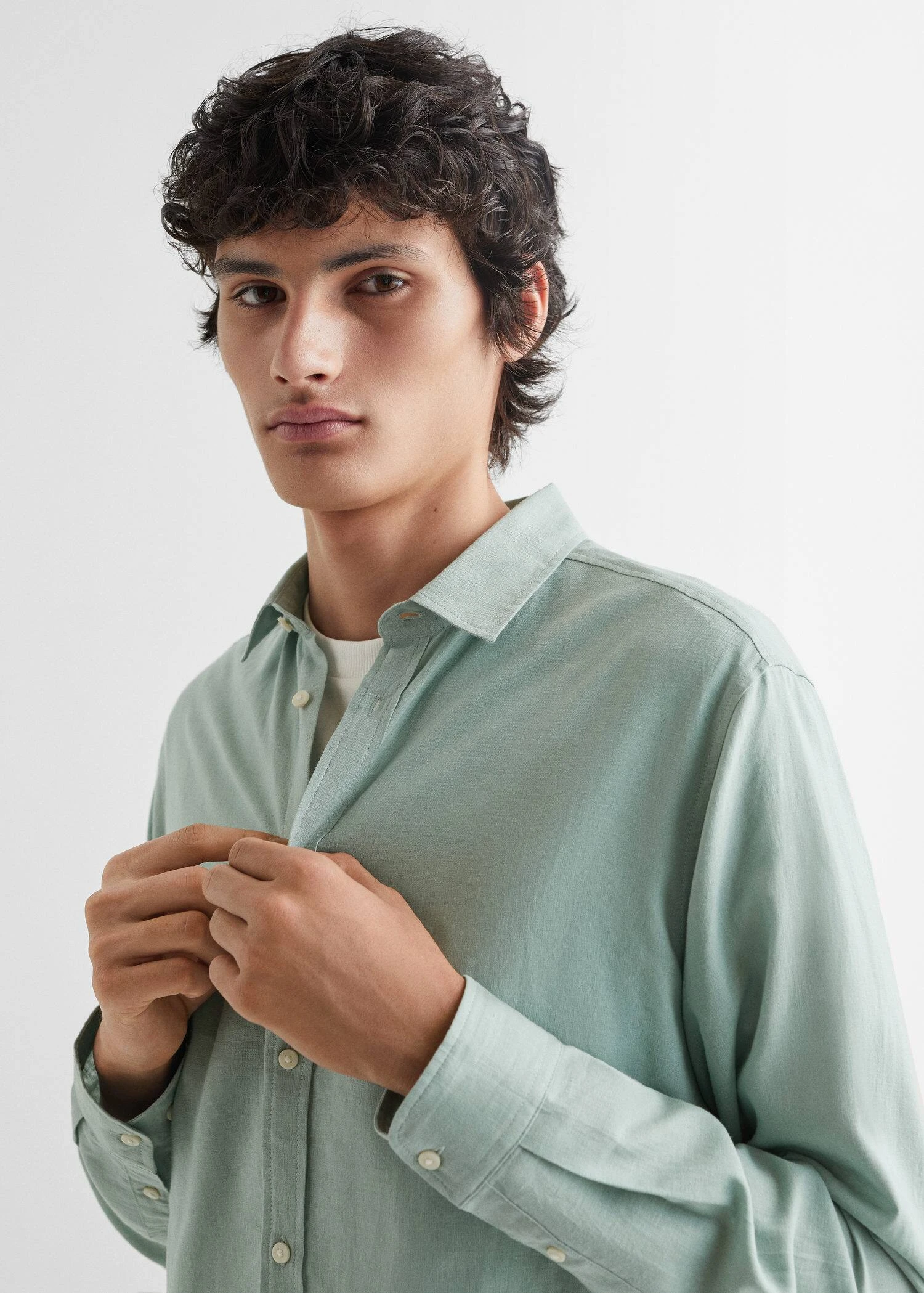tissu de coton et lin melange, col chemise, fermeture frontale, manches longues, manches longues boutonnees, fermeture boutonnee, avec ce vetement en coton, vous soutenez notre investissement dans la mission de better cotton. ce tissu est un equilibre de masse qui remplace ou melange du coton better cotton avec du coton conventionnel, aussi il est possible qu’il ne contienne pas de better cotton. les agriculteurs partenaires beneficient d’un soutien et d’une formation continus.COMPOSITION:55% LIN,45% COTON