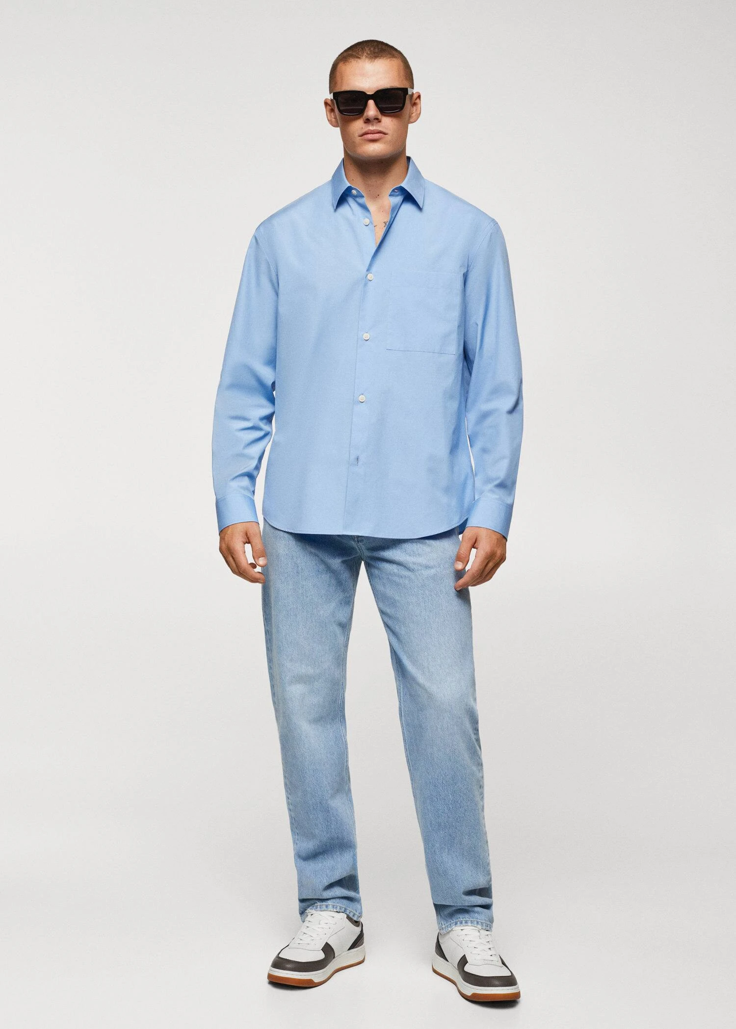 tissu de popeline 100 % coton, regular-fit, col chemise, fermeture a boutons sur le devant, poche plaquee sur la poitrine, manches longues avec poignets boutonnes, bas arrondi, le mannequin mesure 190 cm et porte une taille mComposition: 100% coton