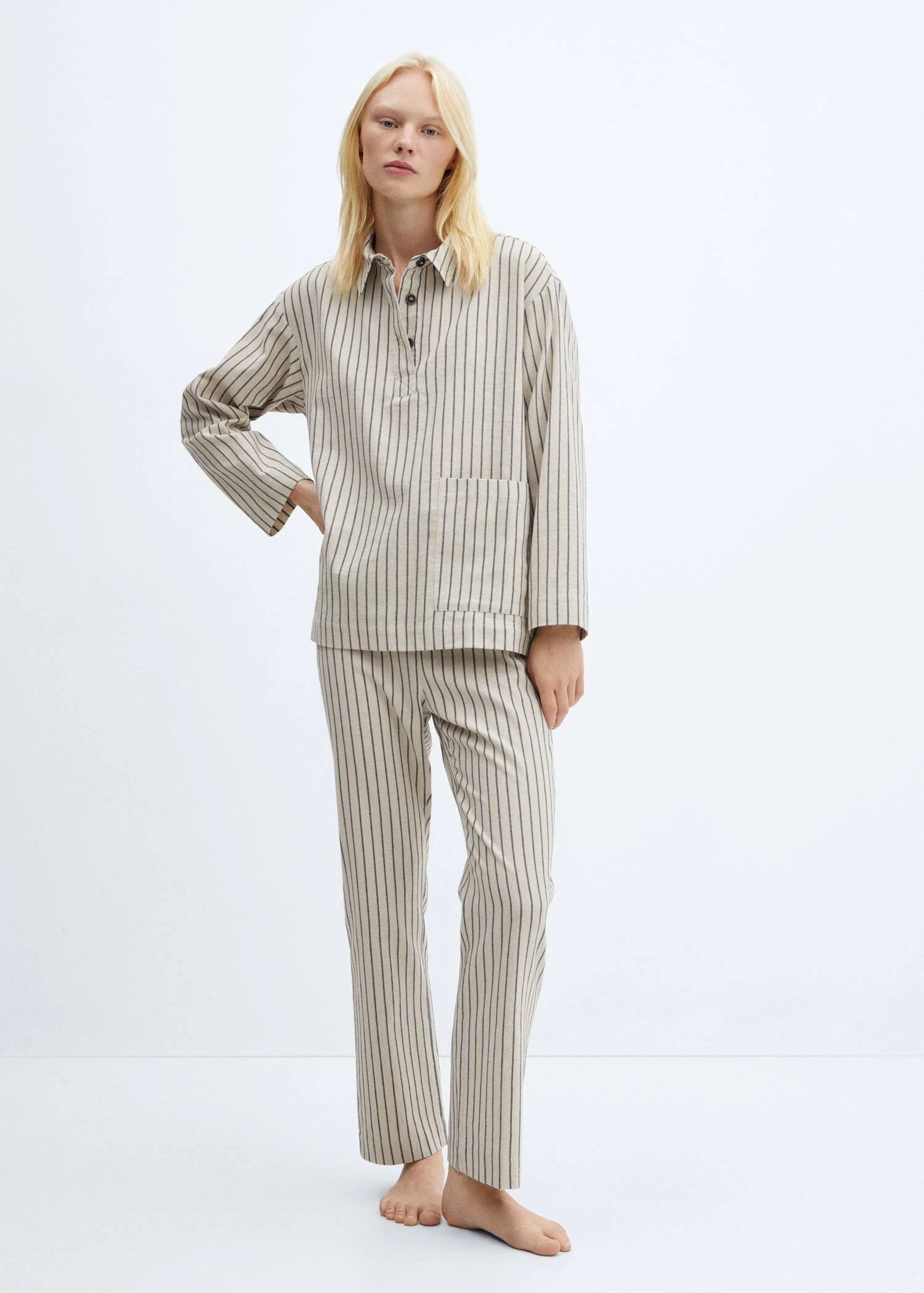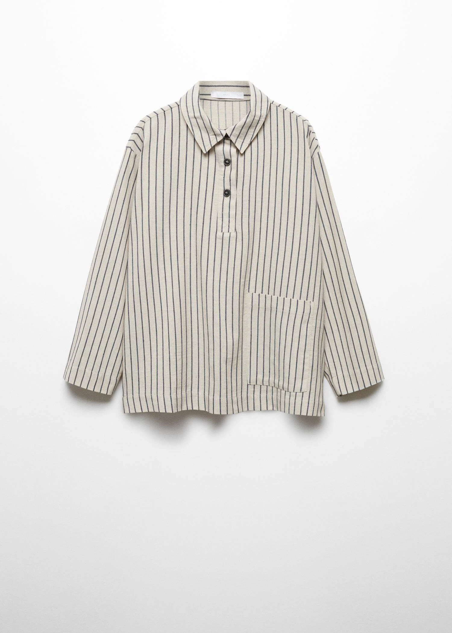 tissu de coton melange, coupe longue, droit, imprime rayures, col polo boutonne, manches longues, poche plaquee sur le devant, total lookComposition: 66% coton,27% polyester,4% viscose,3% autres fibres
