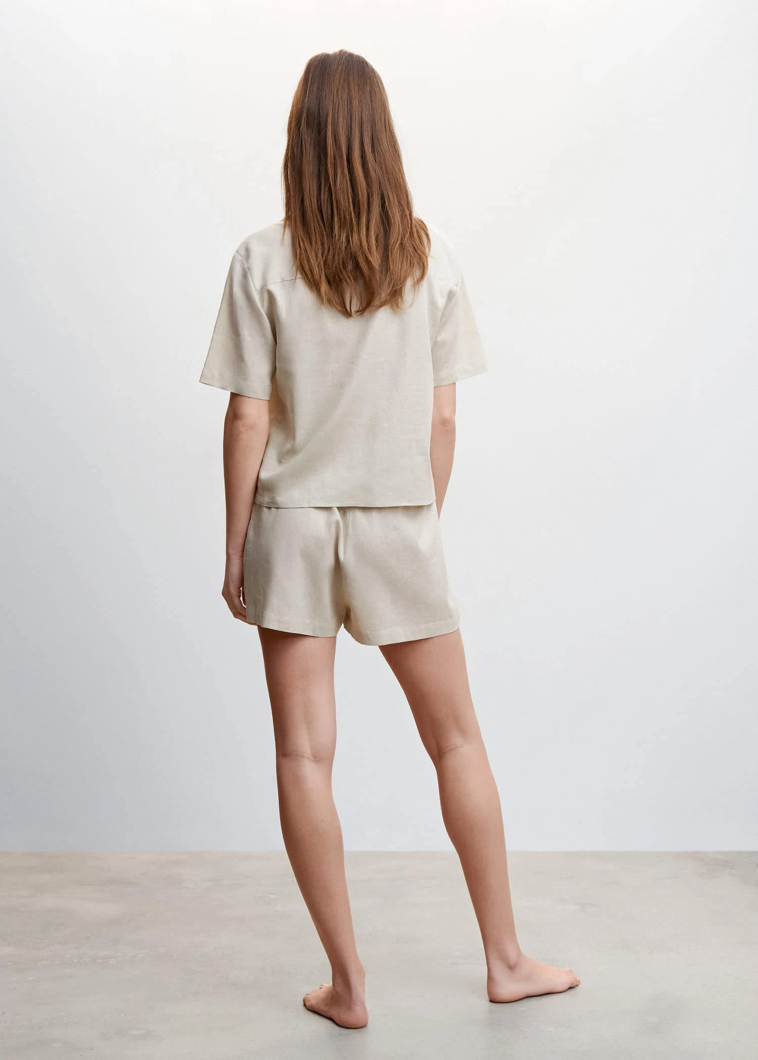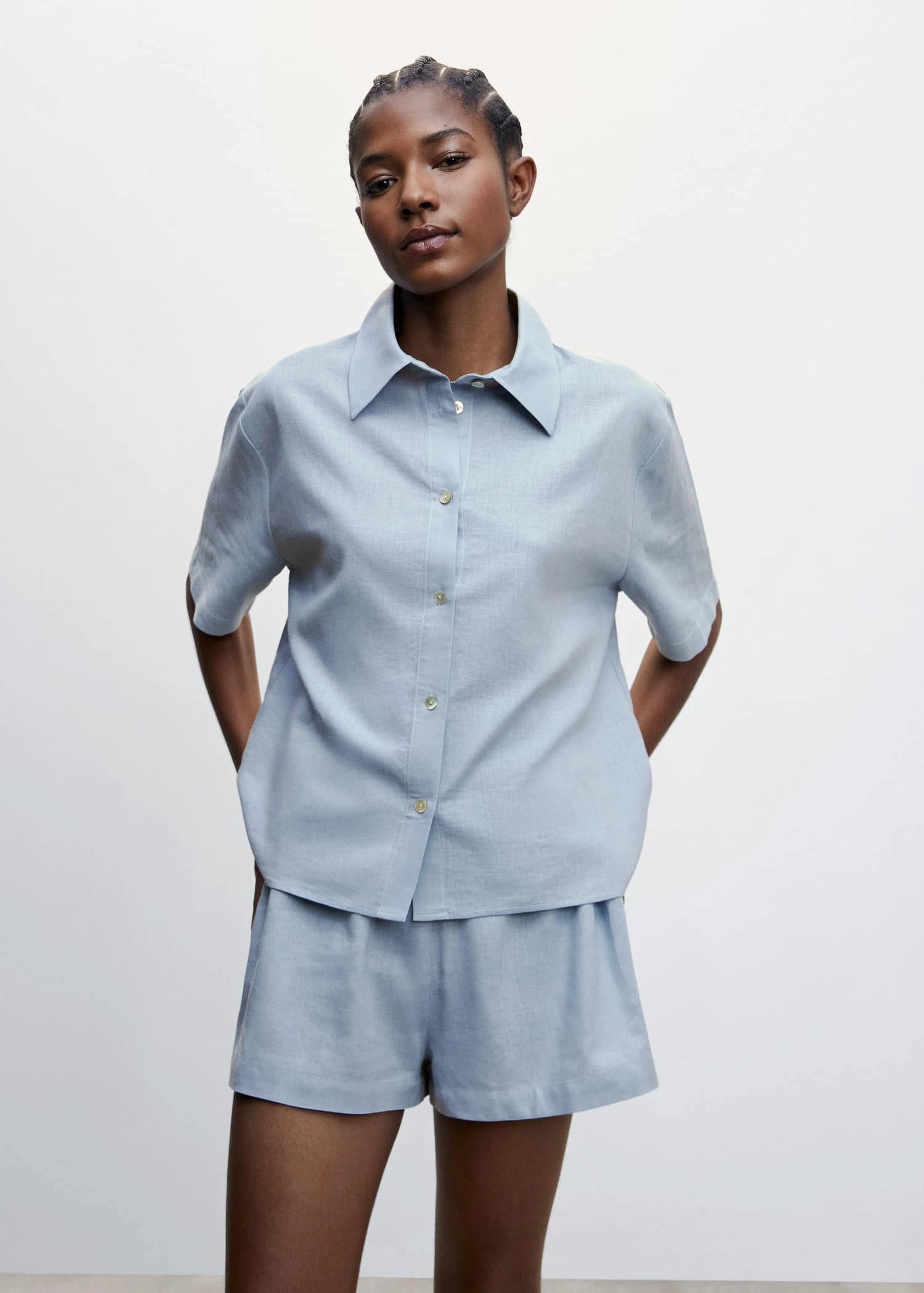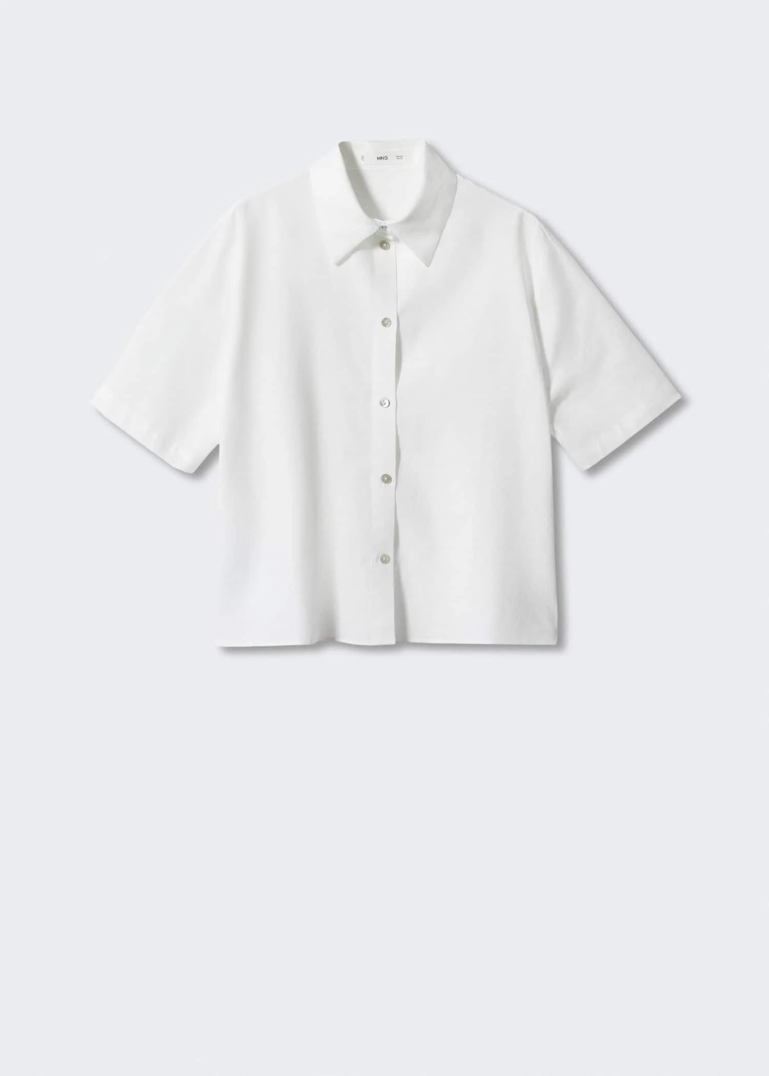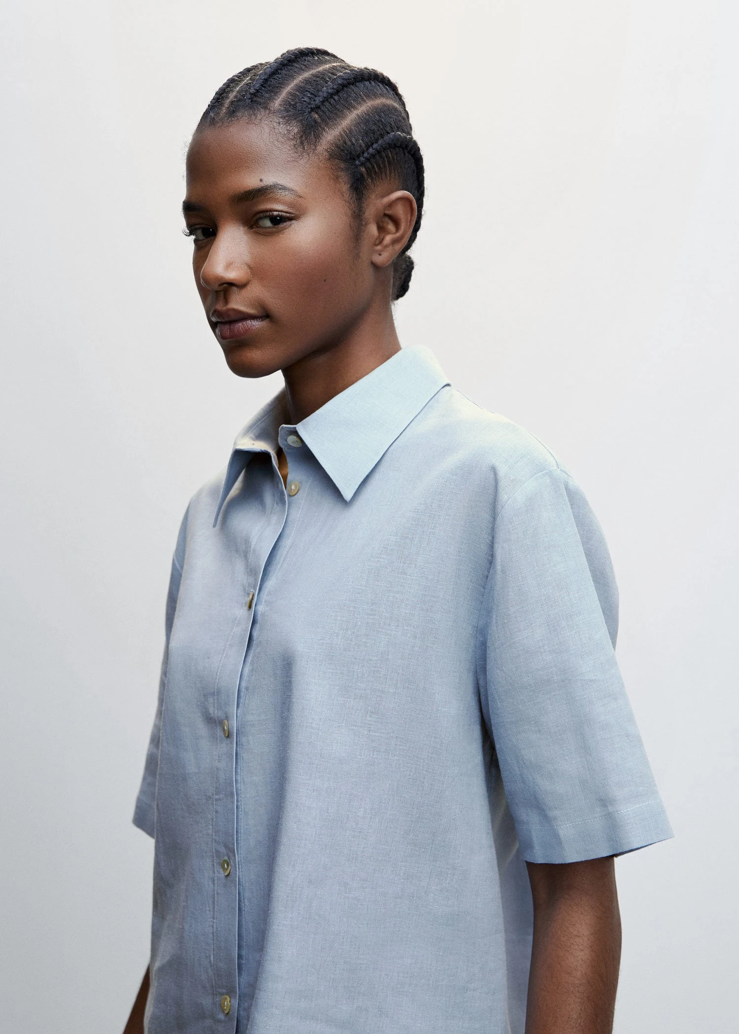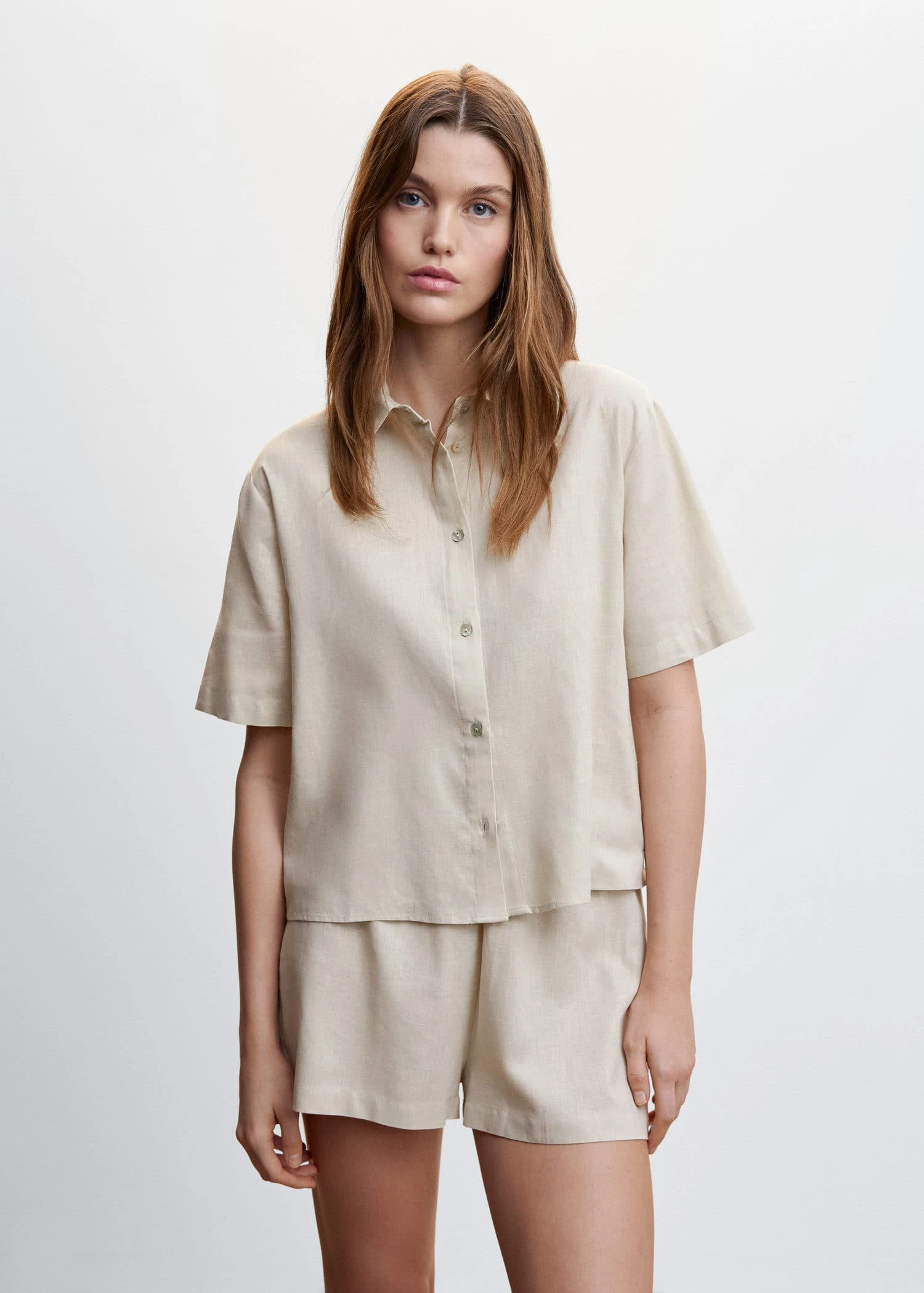 tissu en lin melange, style chemisier, coupe droite, col chemise, manches courtes, fermeture boutonnee sur le devantCOMPOSITION:55% LIN,45% VISCOSE