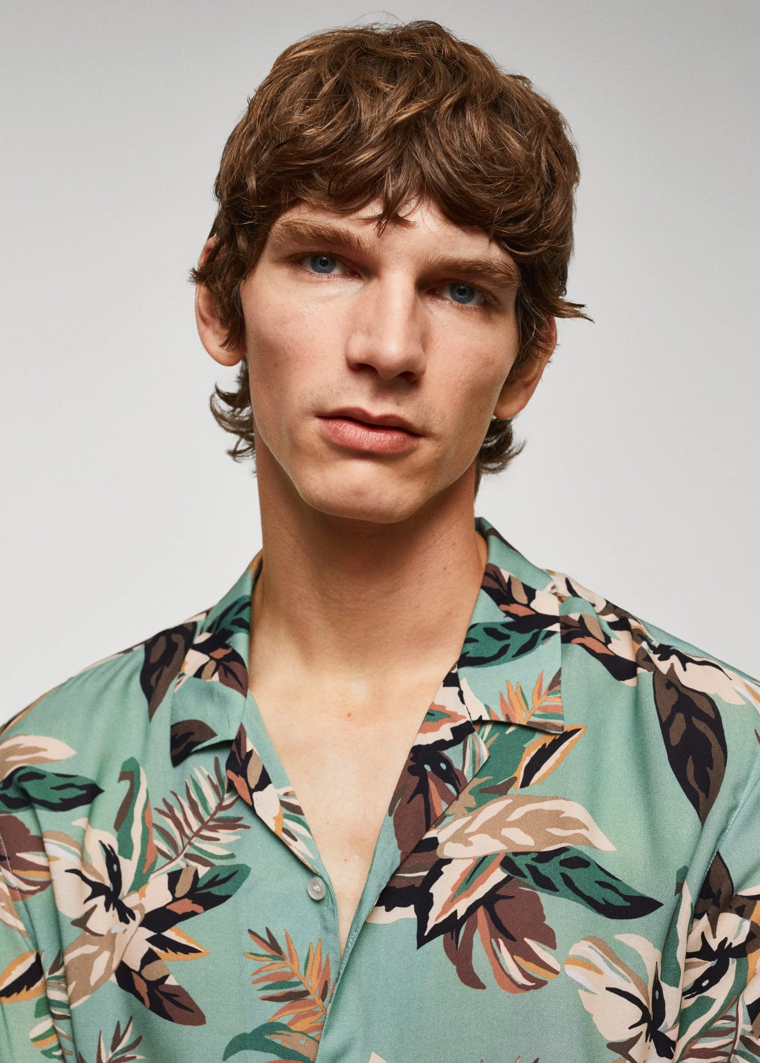 regular-fit, tissu fluide, imprime hawaien, col bowling, fermeture a boutons sur le devant, manches courtes, bas droit, le mannequin mesure 190 cm et porte une taille mComposition: 100% viscose