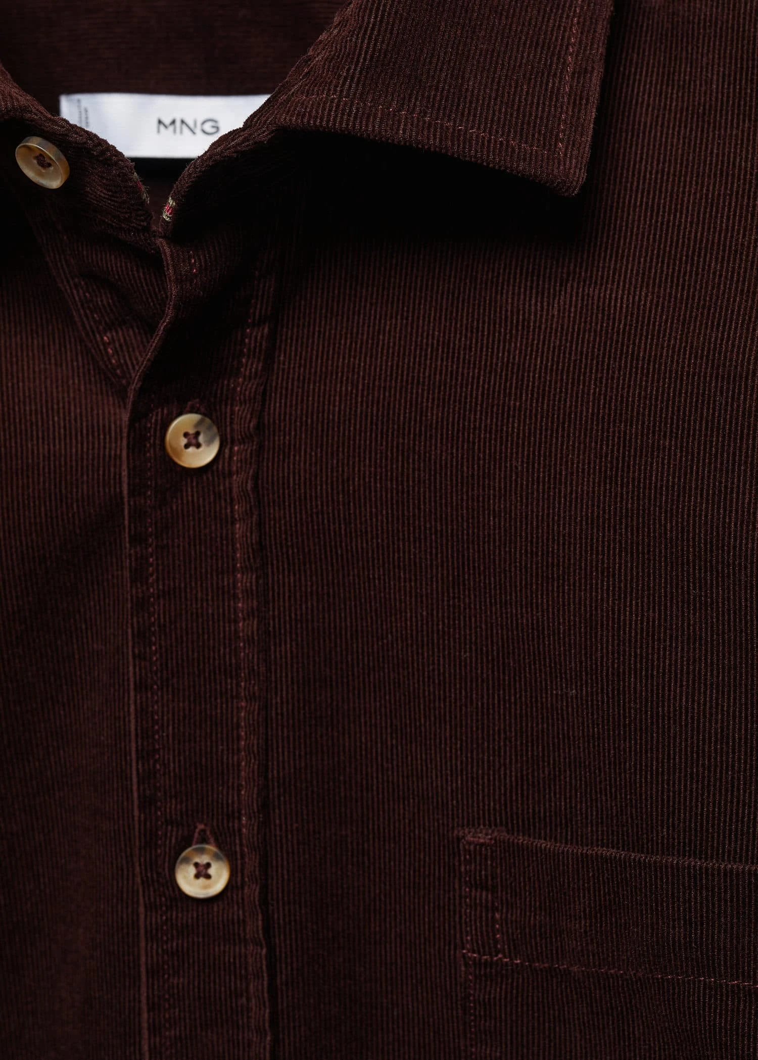 100 % coton, regular-fit, tissu en velours milleraies, col chemise, fermeture a boutons sur le devant, poche plaquee sur la poitrine, manches longues avec poignets boutonnes, bas arrondi, le mannequin mesure 190 cm et porte une taille m, la couleur marron est une exclusivite en ligneComposition: 100% coton