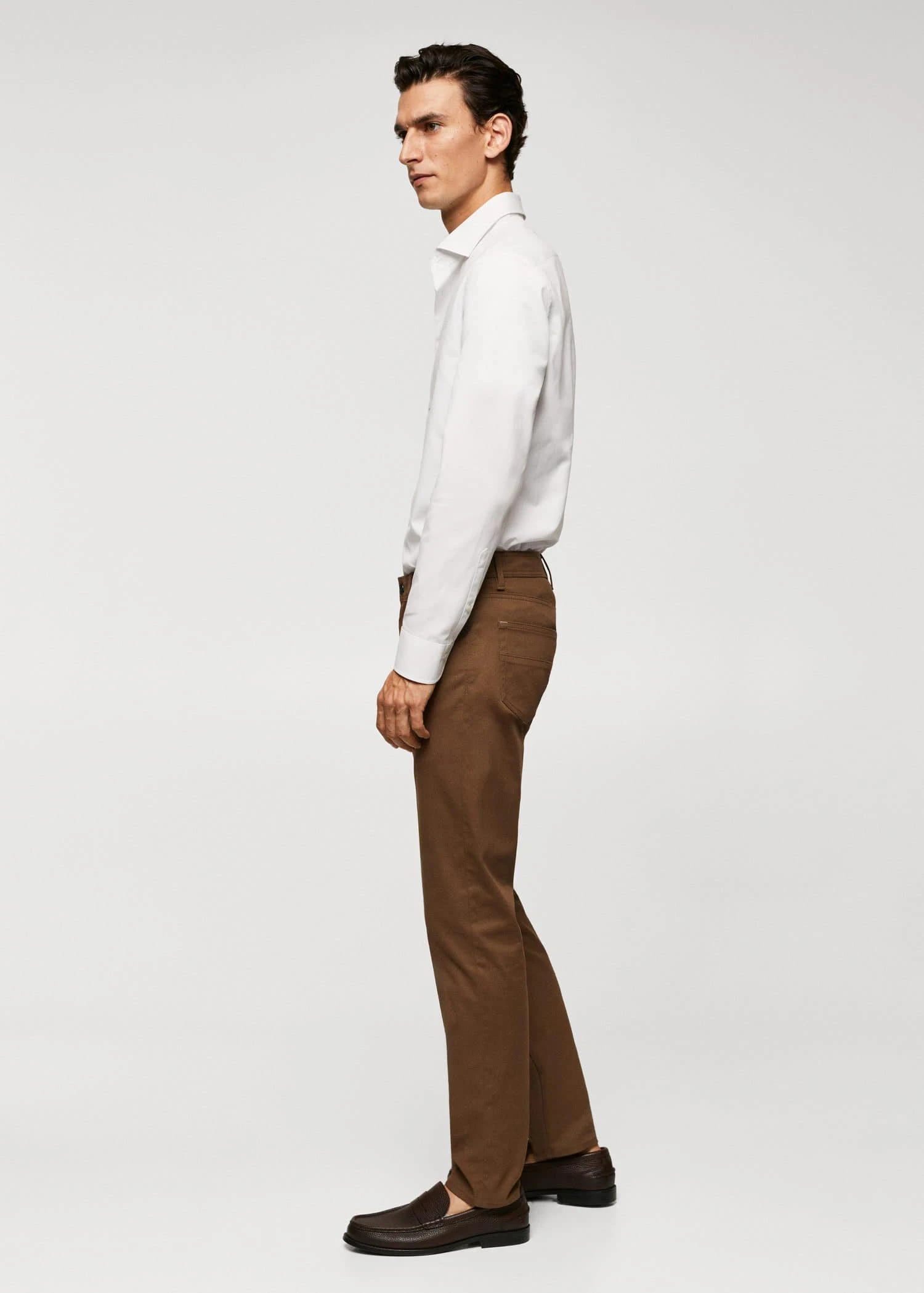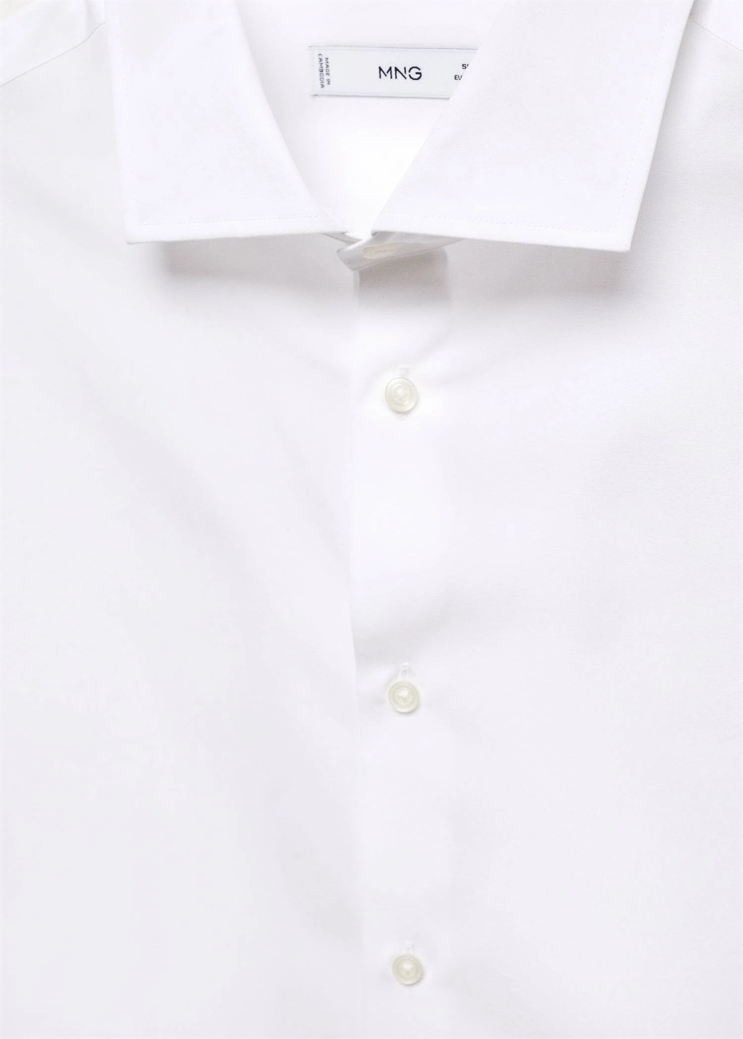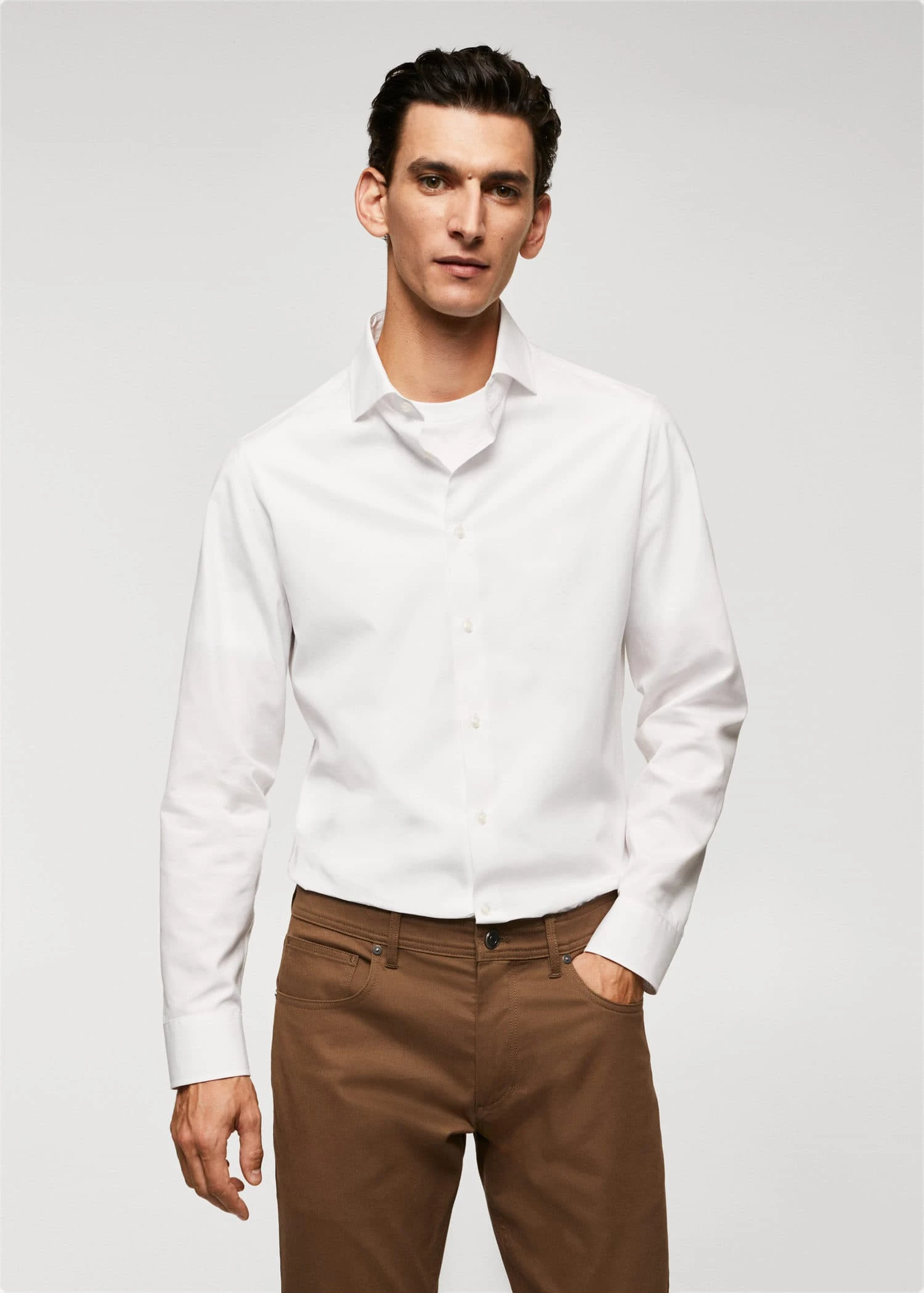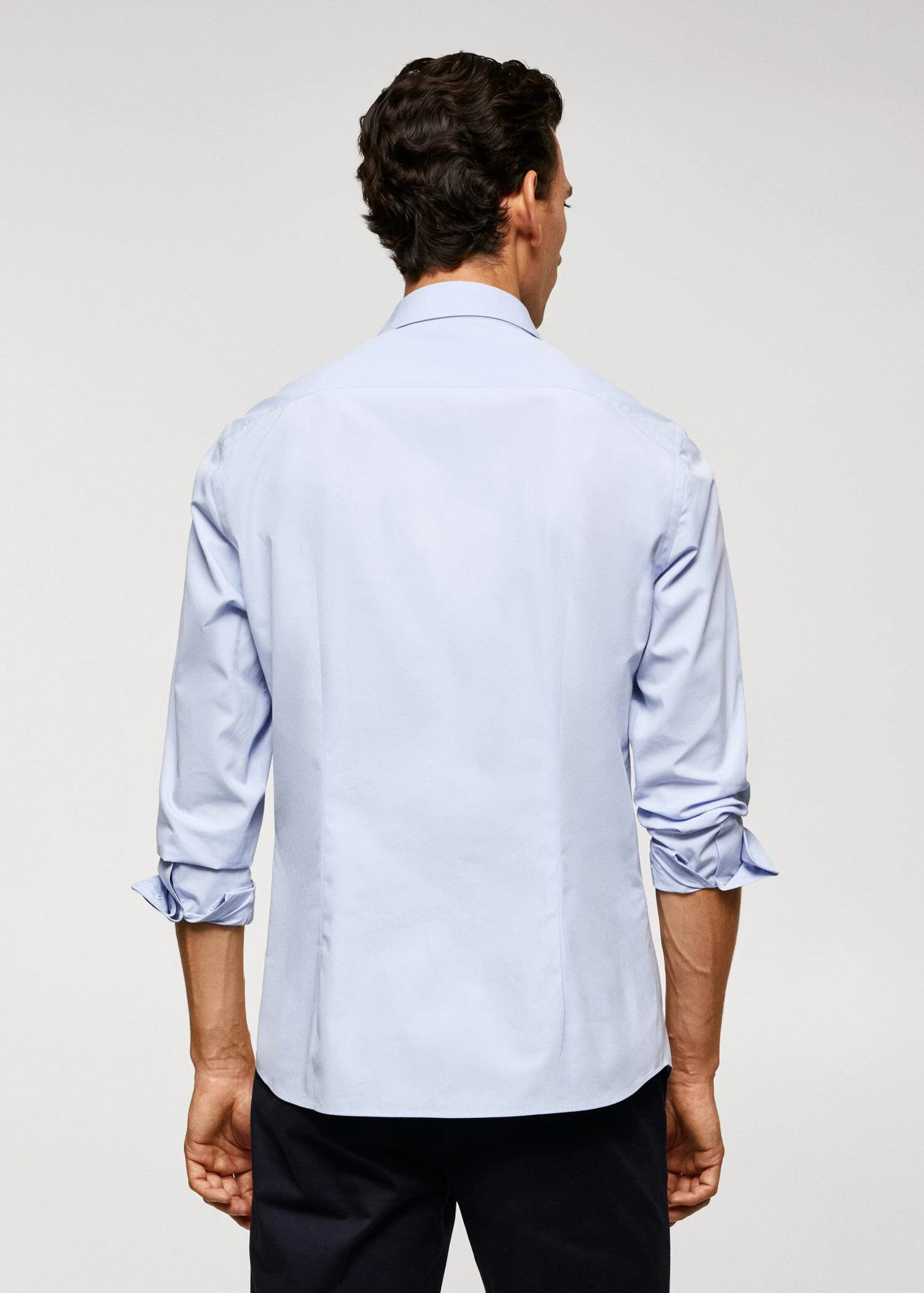 les essentiels : concus pour durer, tissu de popeline 100 % coton, slim-fit, col italien, fermeture a boutons sur le devant, manches longues boutonnees, bas arrondi, le mannequin mesure 190 cm et porte une taille mComposition: 100% coton