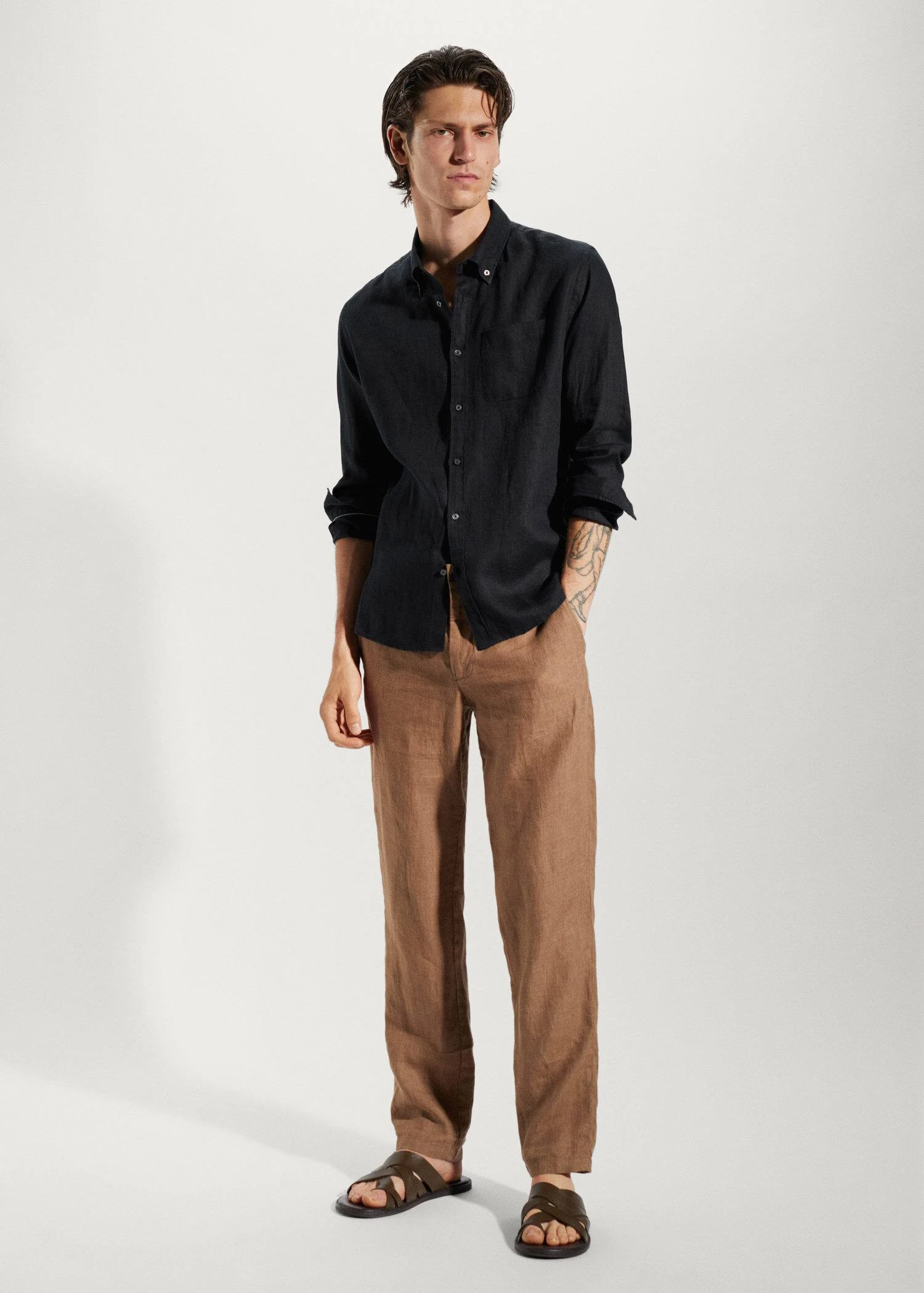 100 % lin, slim-fit, col classique, fermeture boutonnee sur le devant, tissu leger, manches longues, poche plaquee sur la poitrine, collection essentiels, la couleur bleu encre est une exclusivite en ligneComposition: 100% lin