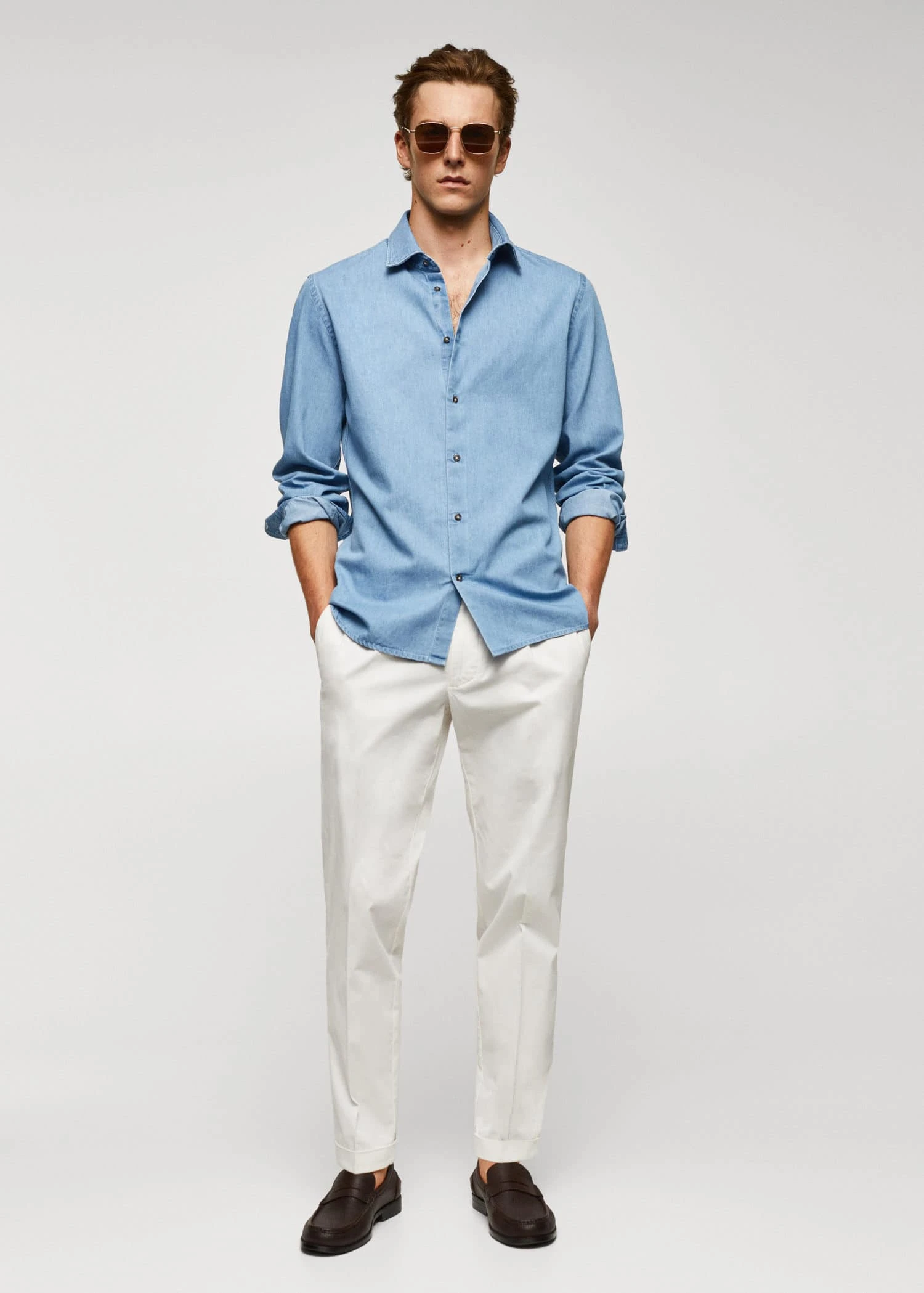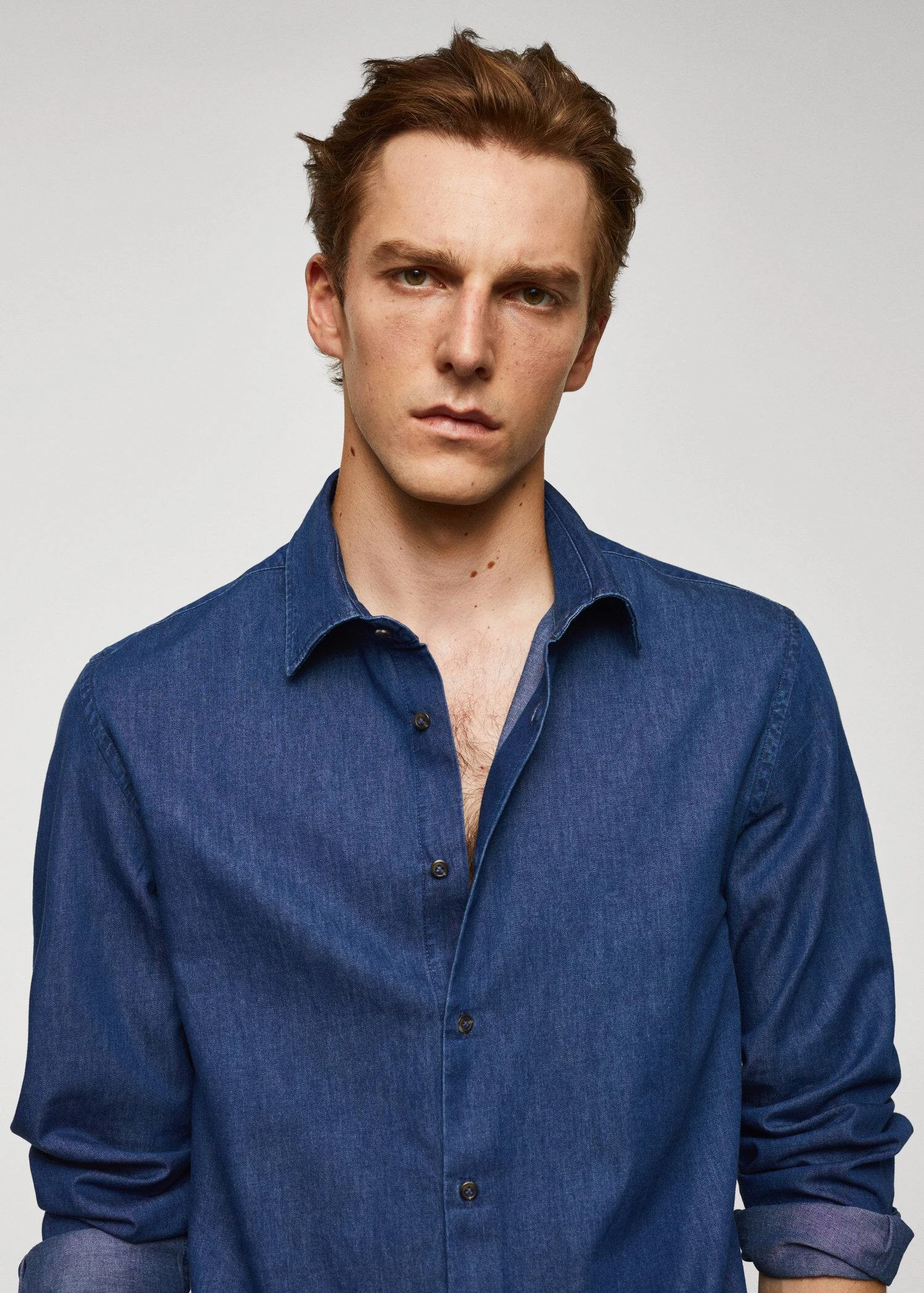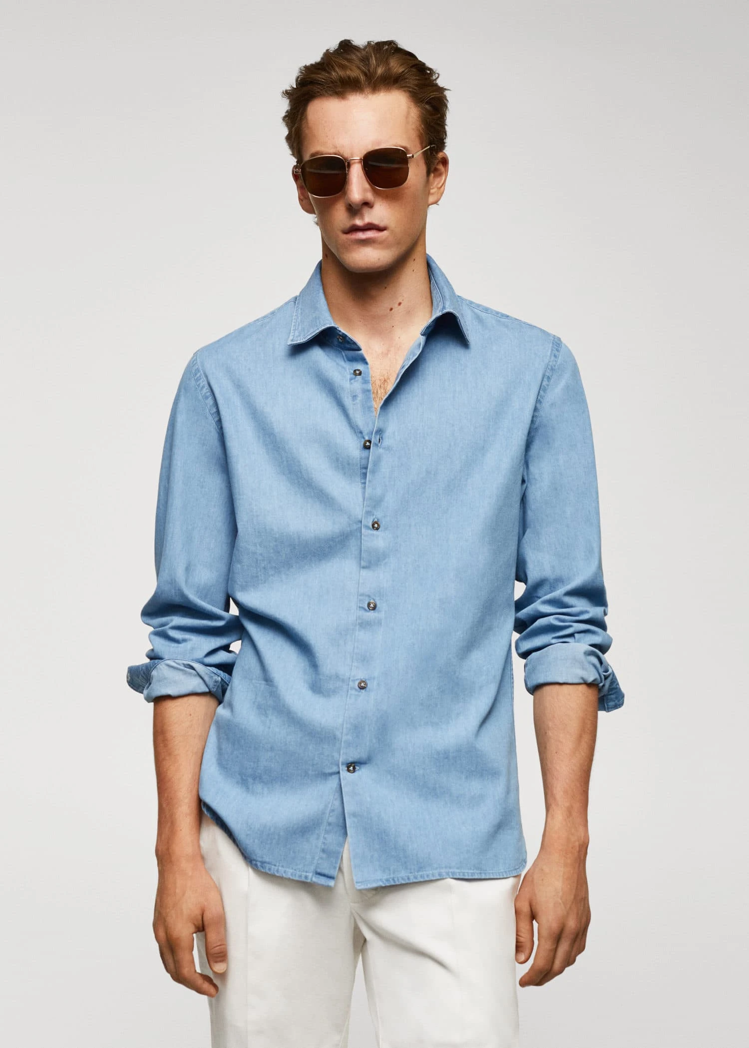 slim-fit, coton chambray, col chemise, fermeture a boutons sur le devant, manches longues avec poignets boutonnes, le mannequin mesure 190 cm et porte une taille m, avec ce vetement en coton, vous soutenez notre investissement dans la mission de better cotton. ce tissu est un equilibre de masse qui remplace ou melange du coton better cotton avec du coton conventionnel, aussi il est possible qu’il ne contienne pas de better cotton. les agriculteurs partenaires beneficient d’un soutien et d’une formation continus.Composition: 100% coton