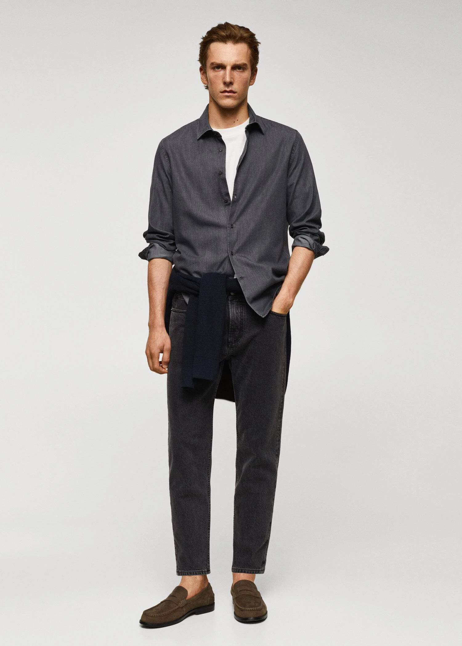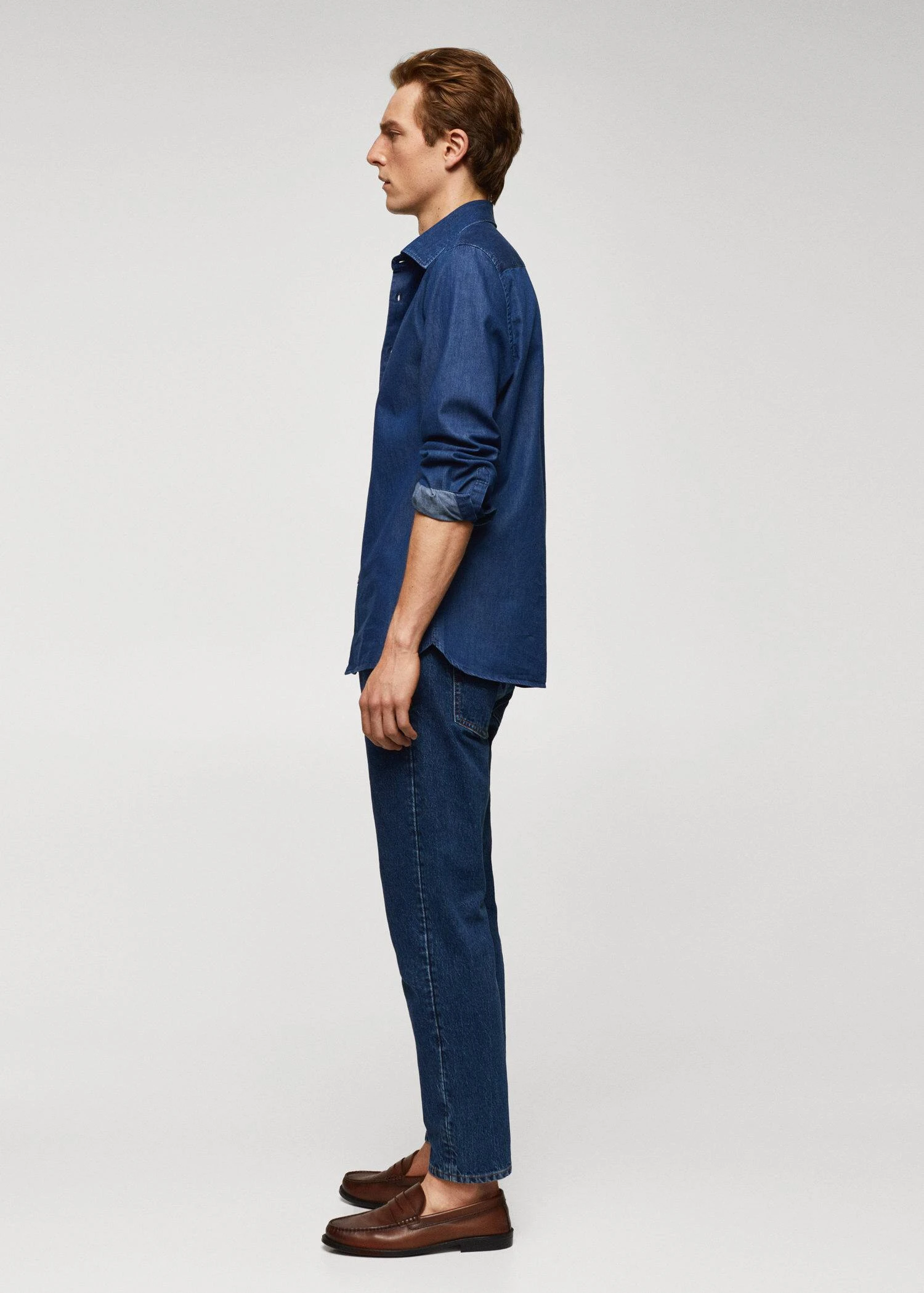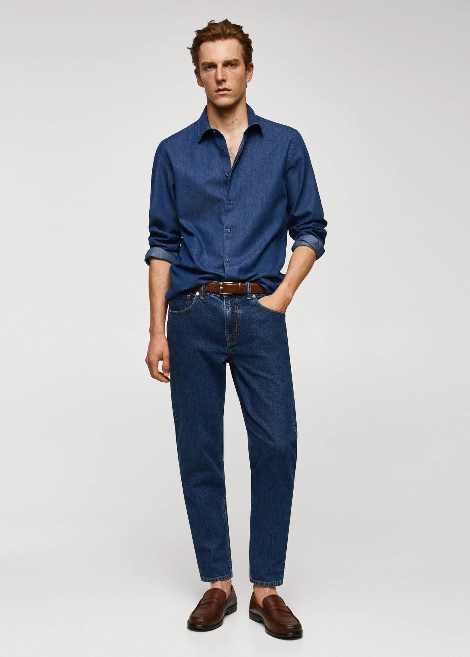 slim-fit, coton chambray, col chemise, fermeture a boutons sur le devant, manches longues avec poignets boutonnes, le mannequin mesure 190 cm et porte une taille m, avec ce vetement en coton, vous soutenez notre investissement dans la mission de better cotton. ce tissu est un equilibre de masse qui remplace ou melange du coton better cotton avec du coton conventionnel, aussi il est possible qu’il ne contienne pas de better cotton. les agriculteurs partenaires beneficient d’un soutien et d’une formation continus.Composition: 100% coton