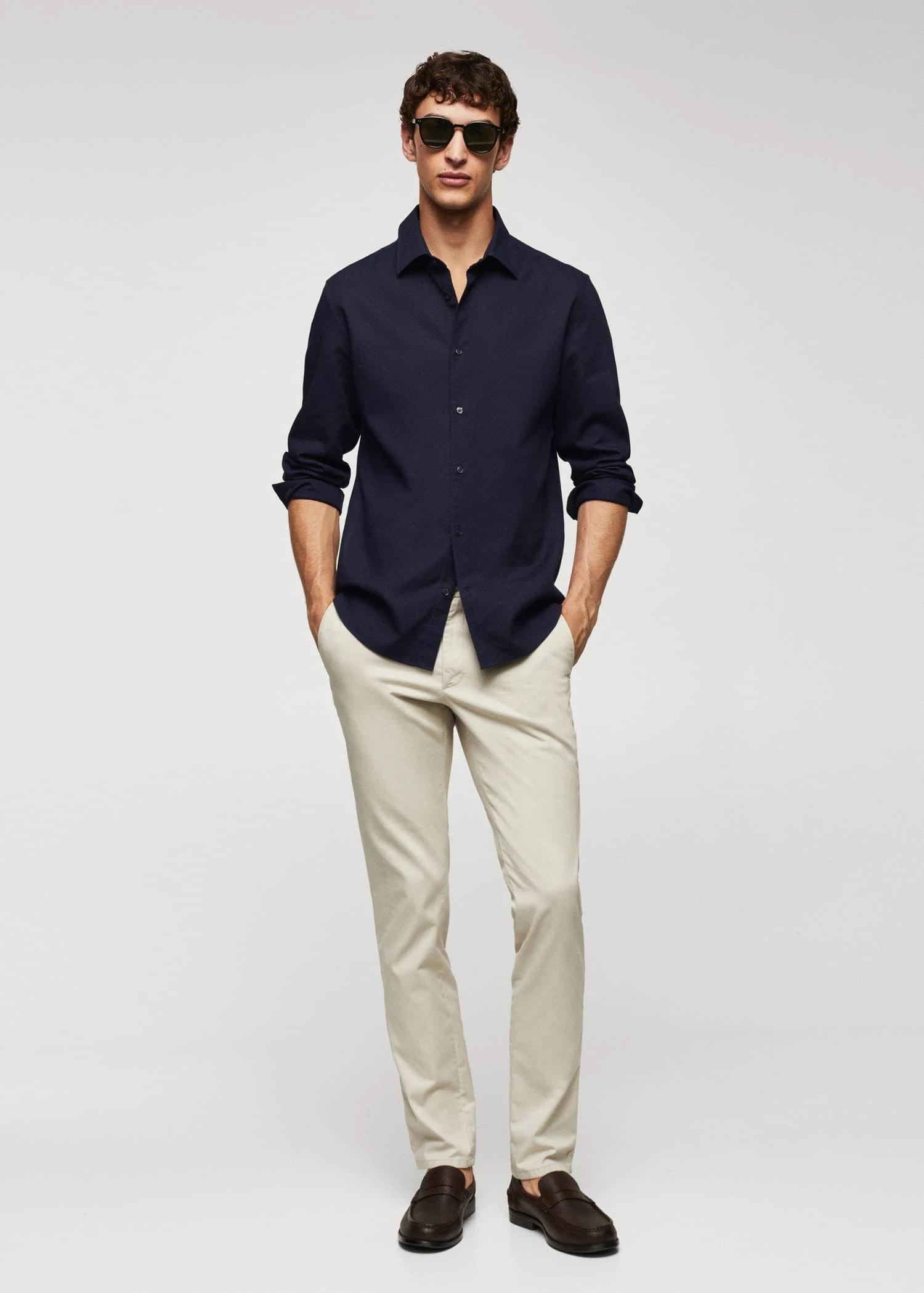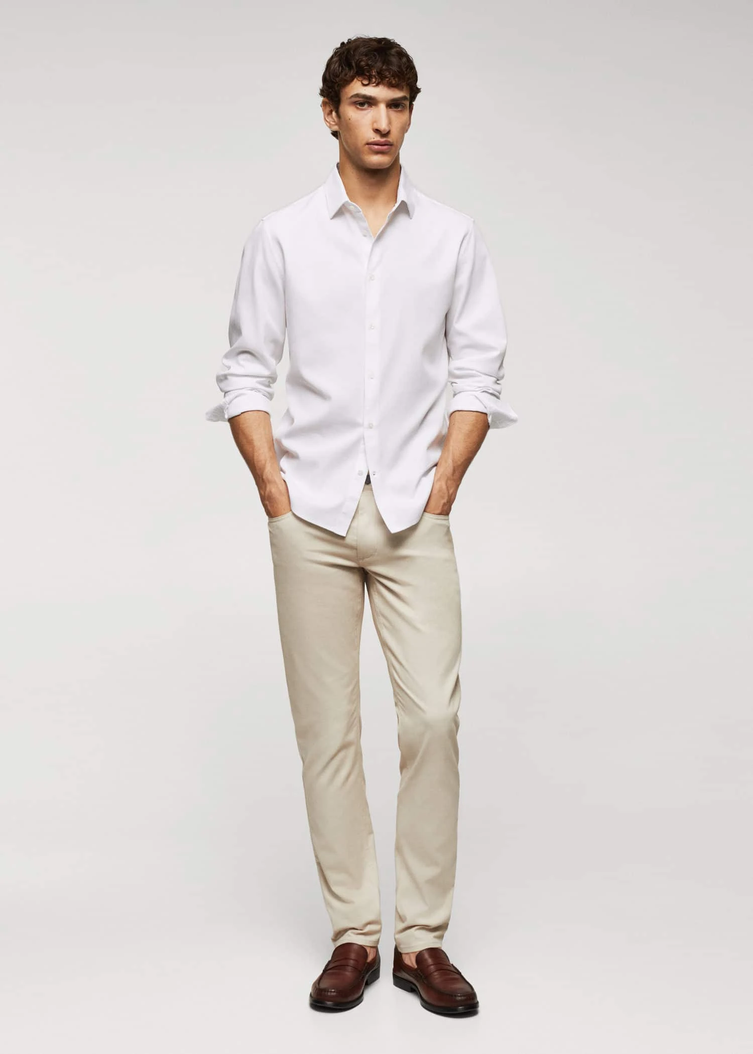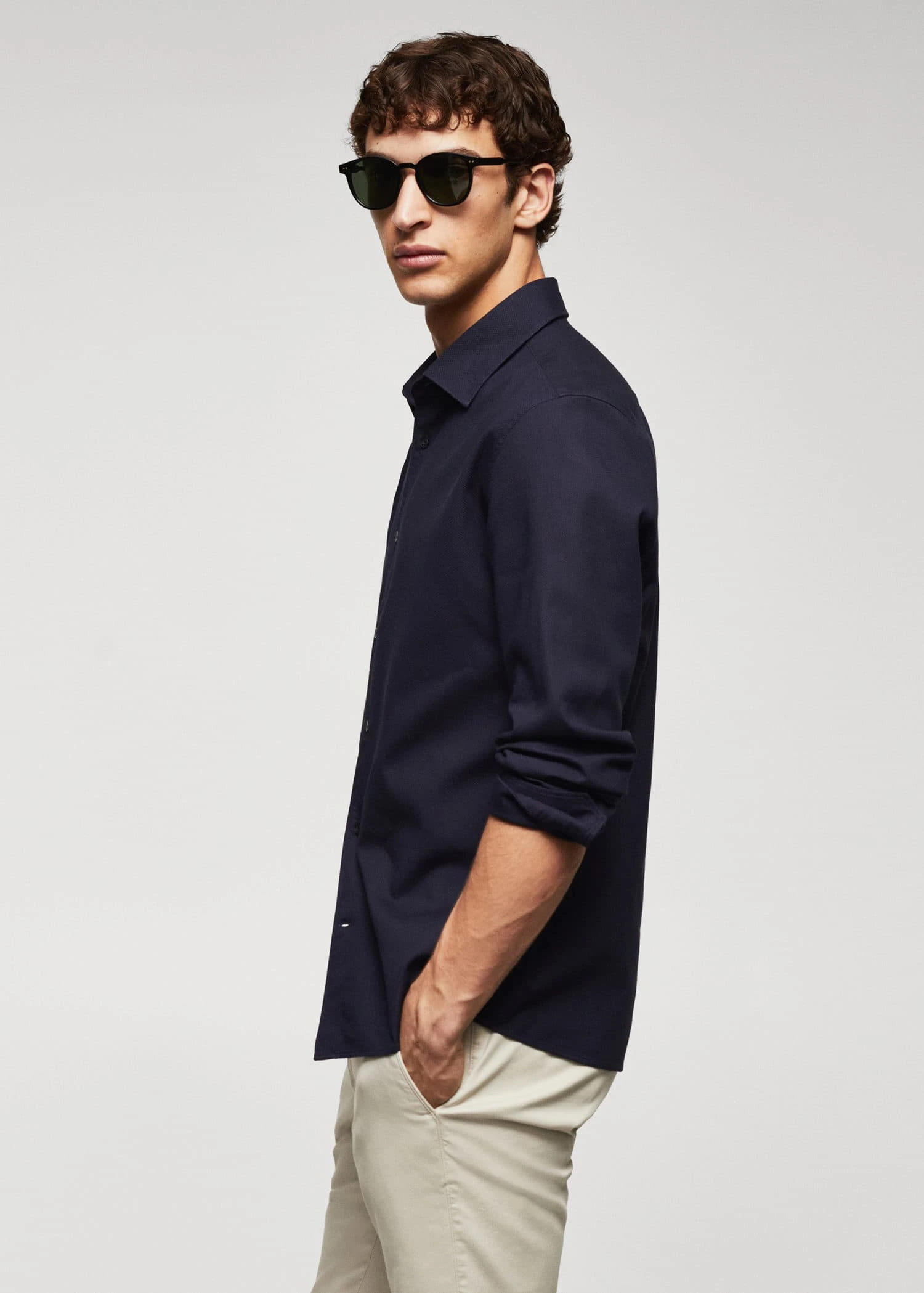 collection essentiels, tissu 100 % coton, tissu structure, slim-fit, col classique, fermeture a bouton sur le devant, manches longues avec poignets boutonnes, bas arrondi, le mannequin mesure 190 cm et porte une taille m, avec ce vetement en coton, vous soutenez notre investissement dans la mission de better cotton. ce tissu est un equilibre de masse qui remplace ou melange du coton better cotton avec du coton conventionnel, aussi il est possible qu’il ne contienne pas de better cotton. les agriculteurs partenaires beneficient d’un soutien et d’une formation continus.Composition: 100% coton