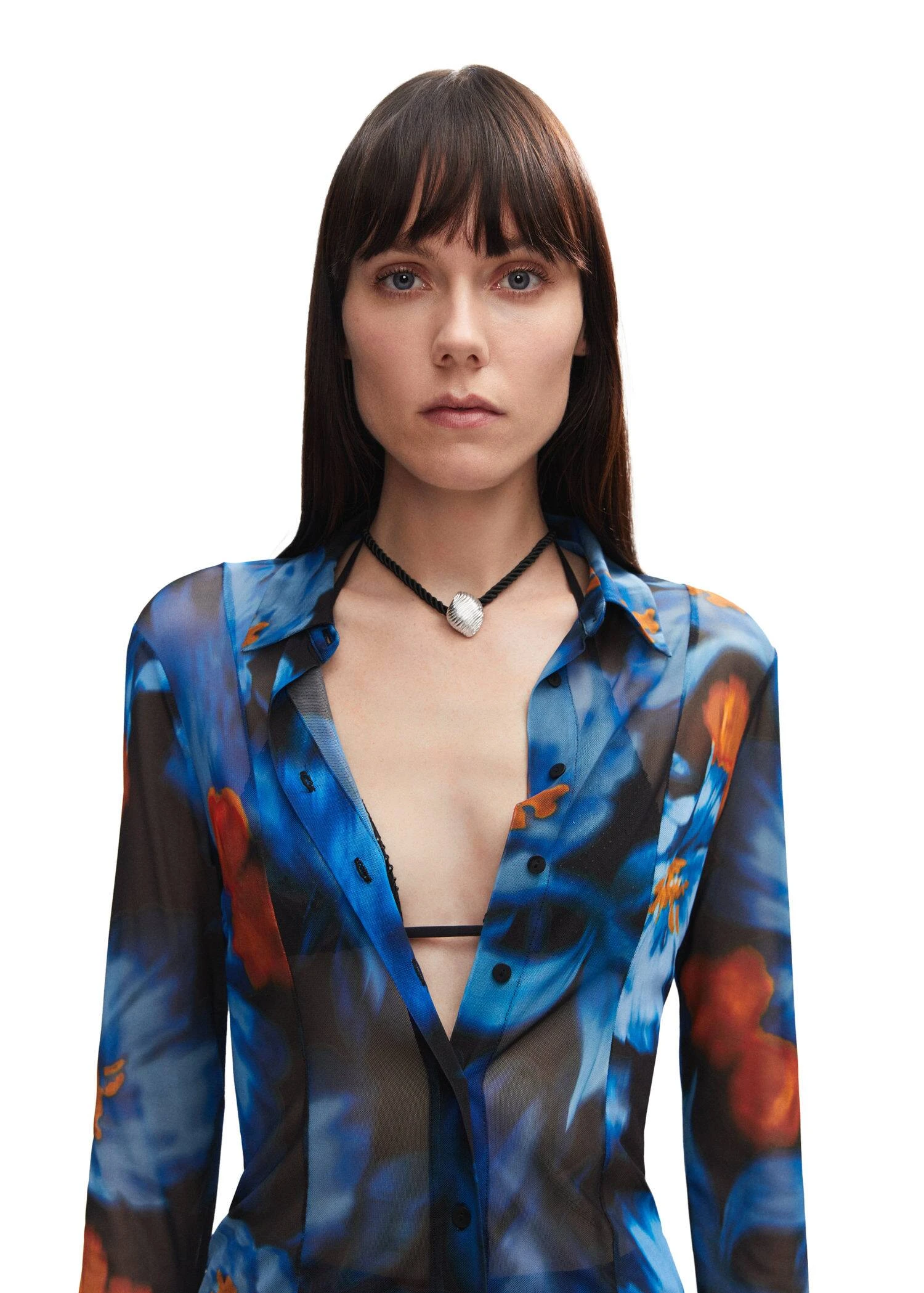 tissu de coton melange, detail coquillage, fermoir a chainette et mousquetonComposition: 80% coton,20% zinc