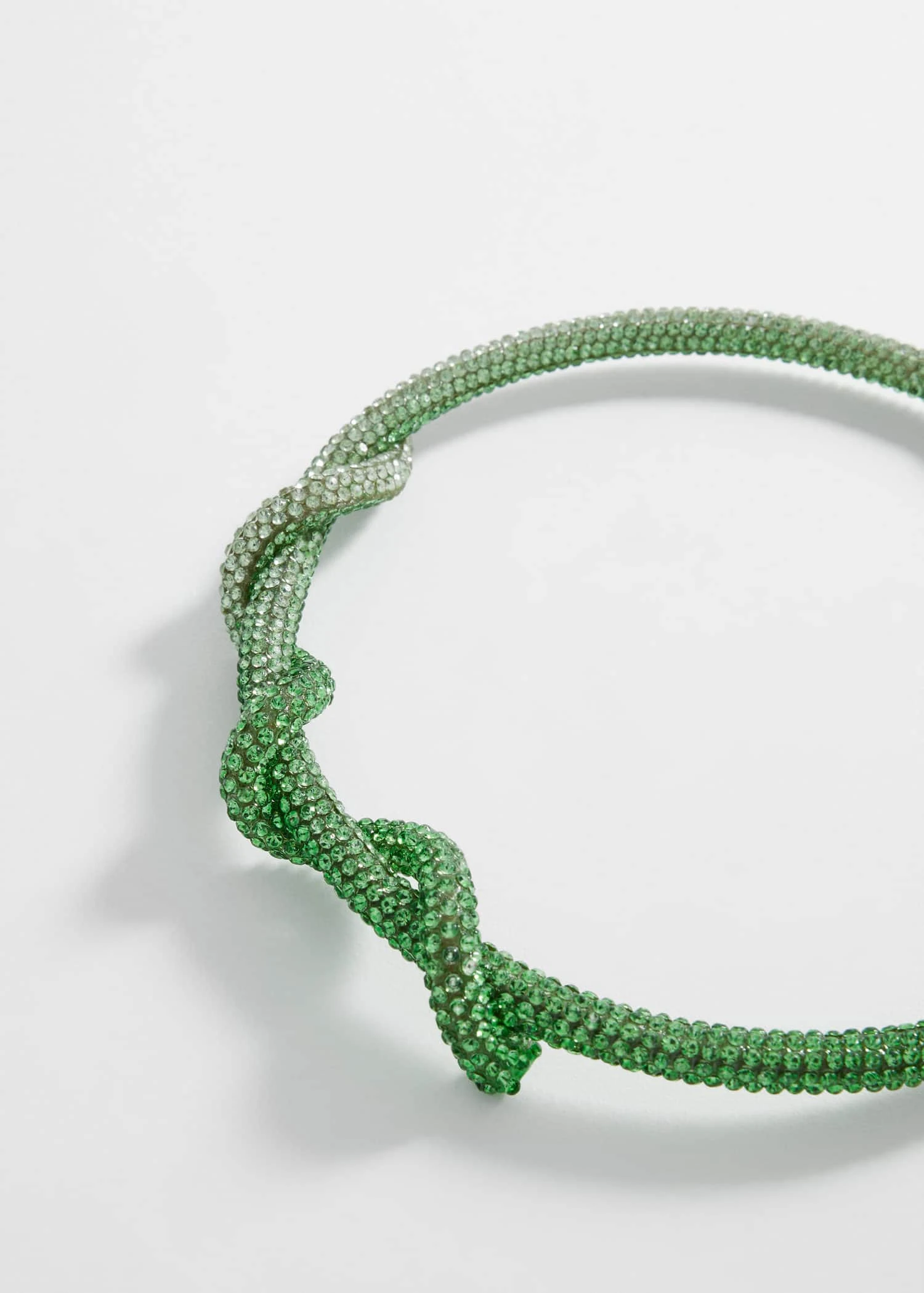 design rigide, effet degrade, detail en strass, fermoir a chainette et mousqueton, details tressesComposition: 70% verre,20% plastique,10% laiton