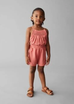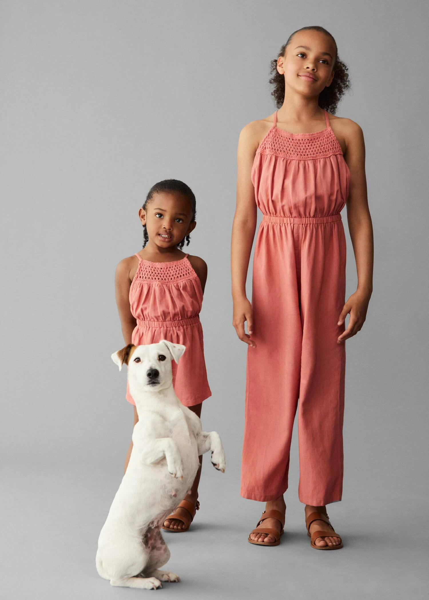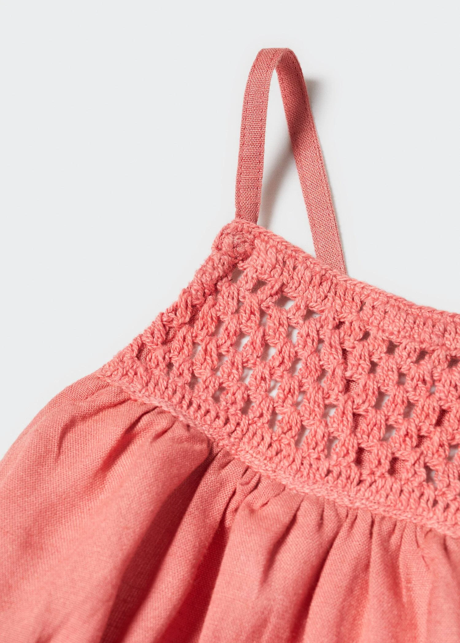tissu de coton et viscose melanges, coupe courte, bretelles fines, detail en crochet, bretelles croisees dans le dos, elastique pour cheveux, col rond, sans manches, sans fermeture, ce vetement est egalement disponible dans la collection femme., ce vetement est egalement disponible dans la collection kids girl. Composition: 59% viscose,29% coton,12% lin. Broderie: 100% coton