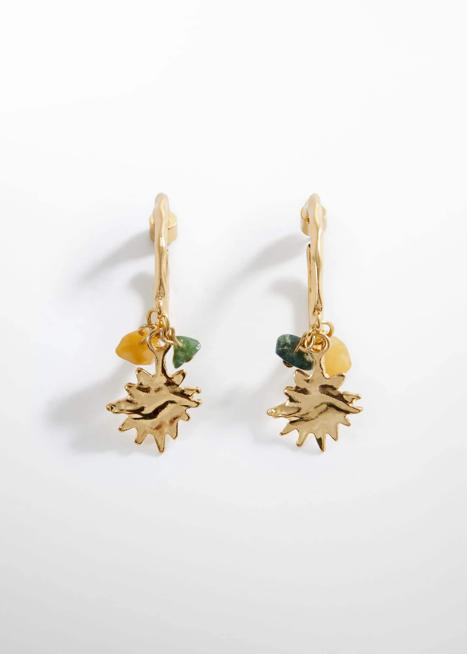 forme creole, forme irreguliere, pendentifs combines, fermoir metallique a pressionComposition: 65% zinc,30% pierre semi-précieuse,5% acier inoxydable