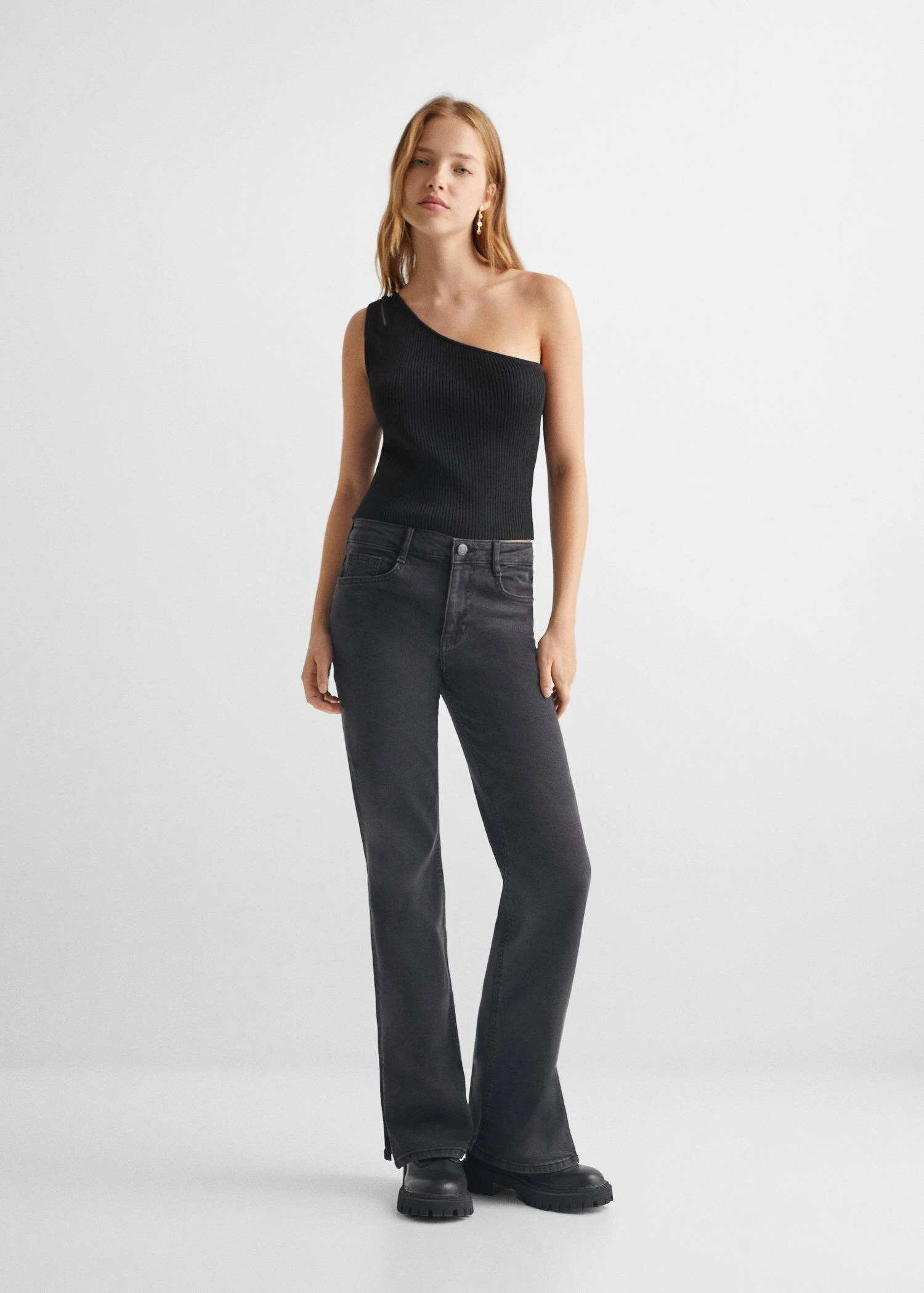 tissu en maille fine, coupe asymetrique, style crop, bretelles larges, col asymetrique, sans manchesComposition: 65% viscose,35% polyamide